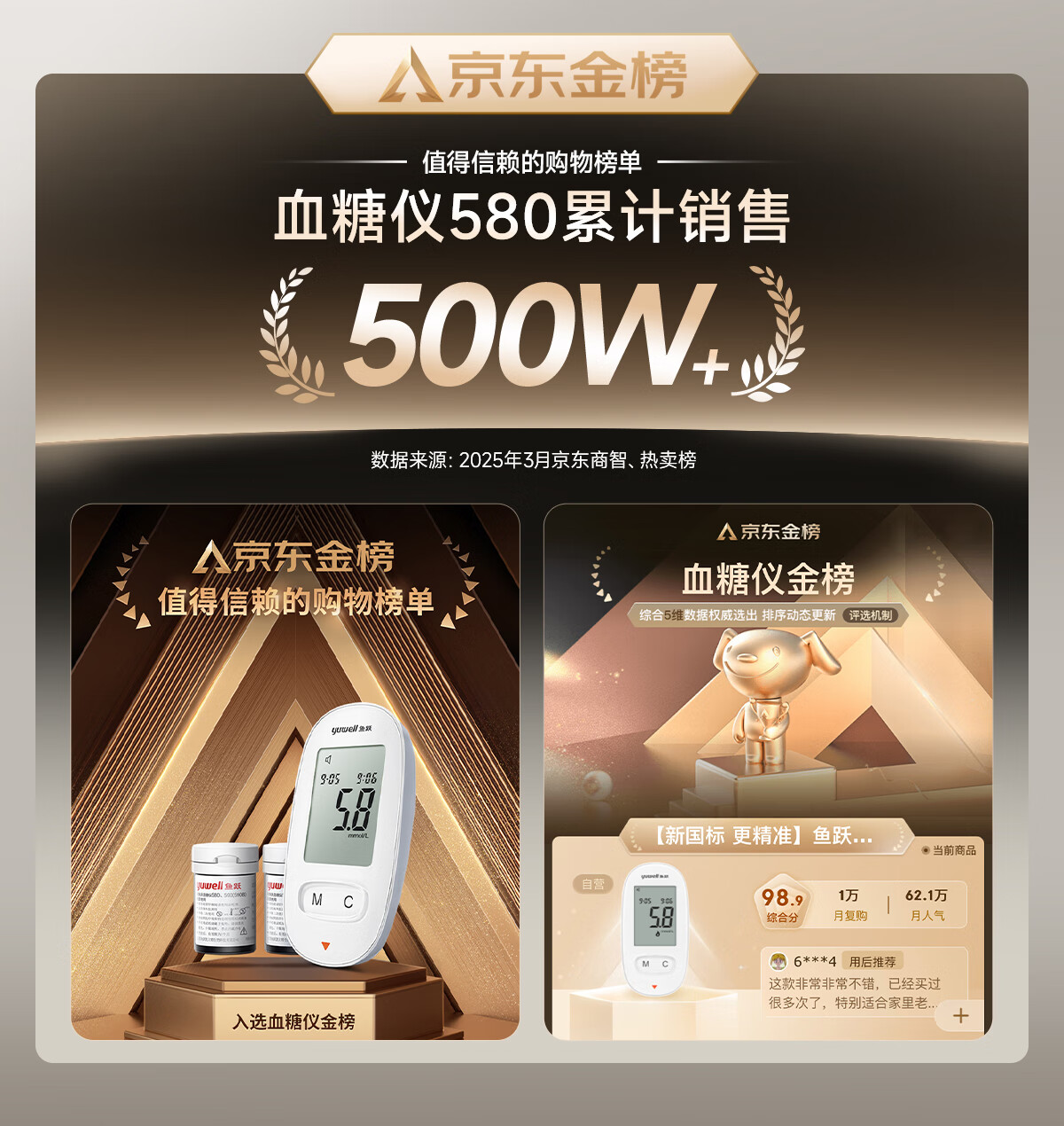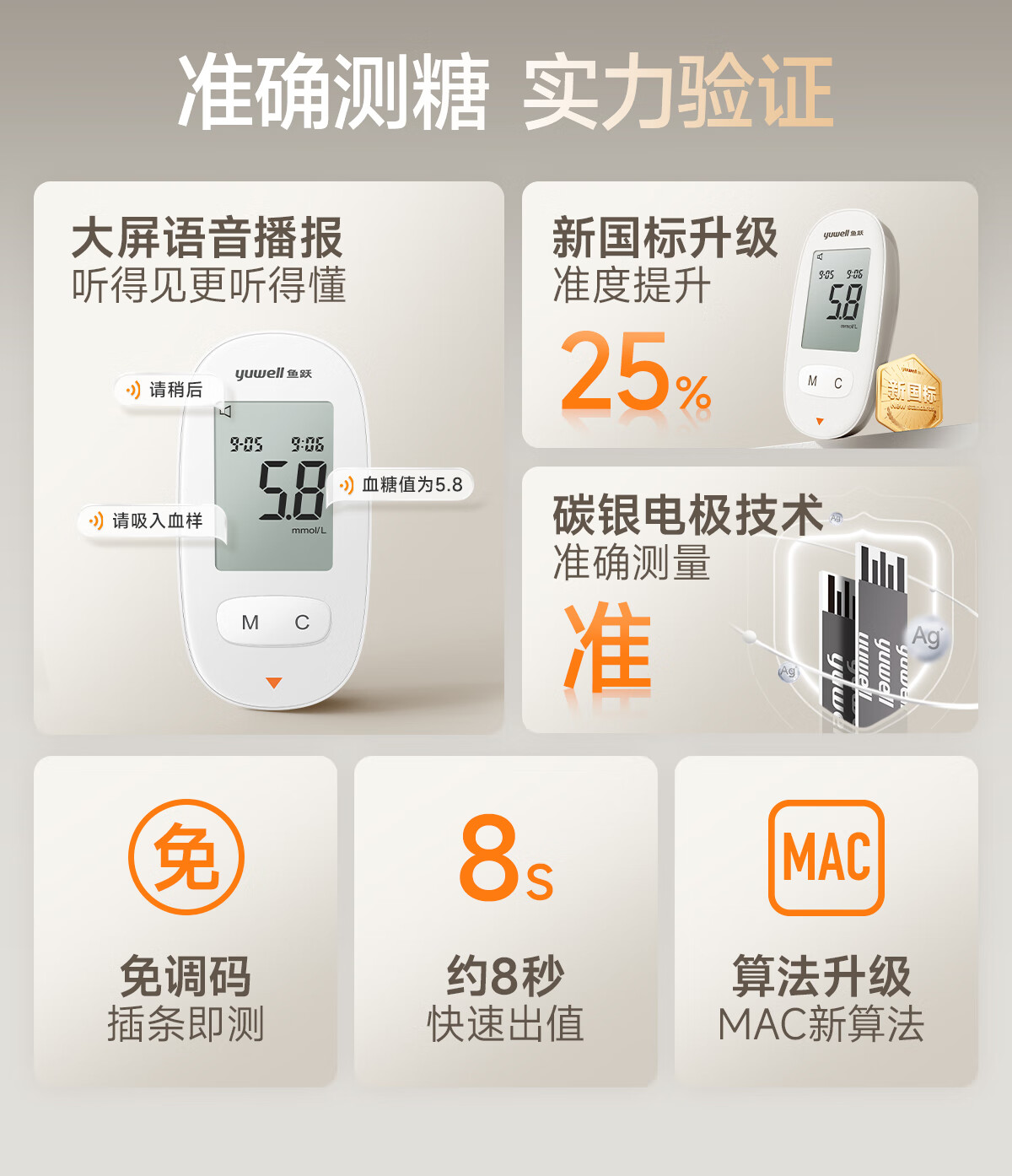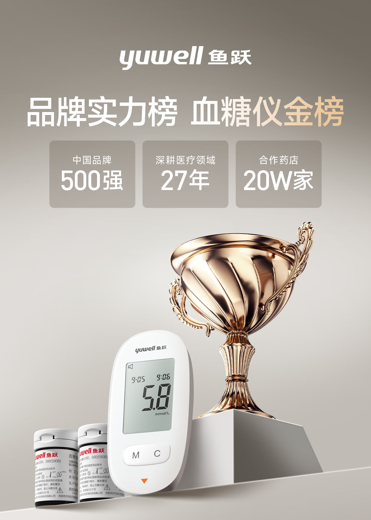 鱼跃580血糖仪医用级家用检监测语音播报金榜 【仪器+100支试纸套装】