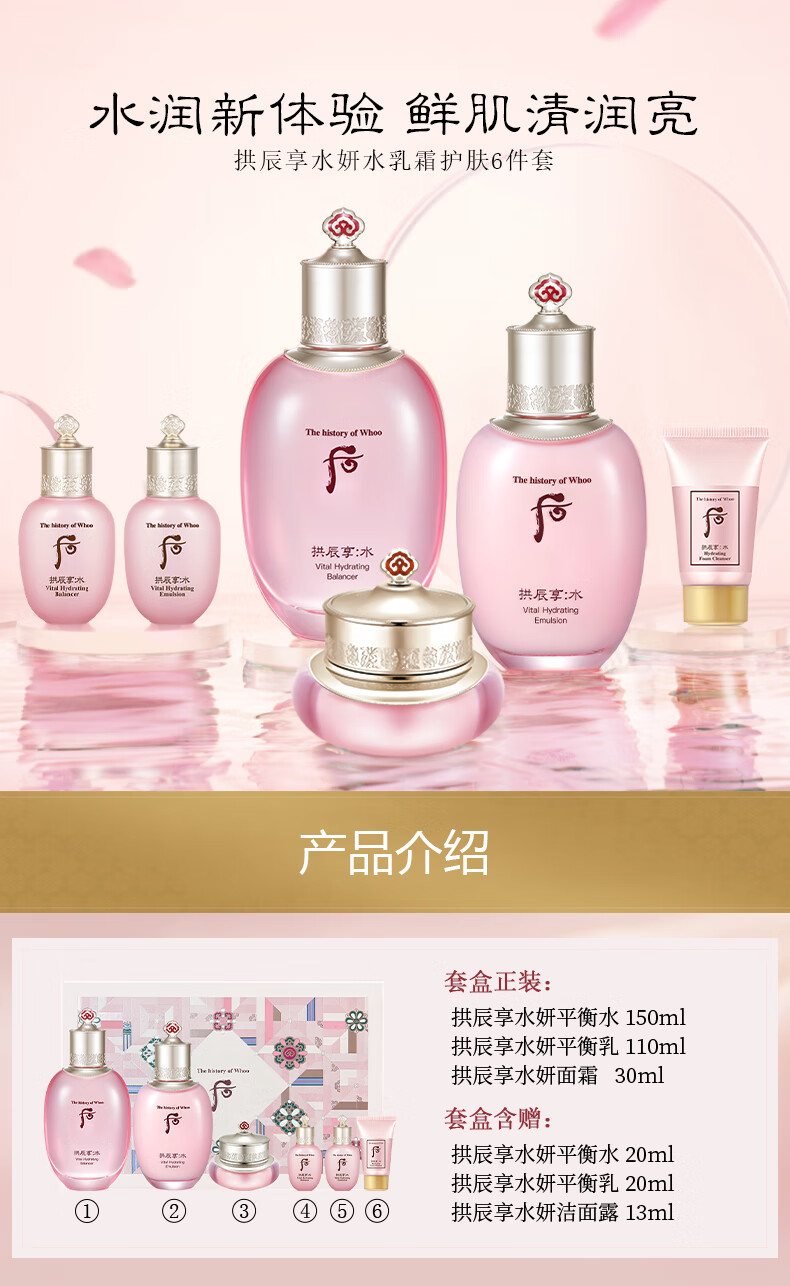 后Whoo水妍水乳面霜6件礼盒343ml敏感肌保湿修护进口生日礼物
