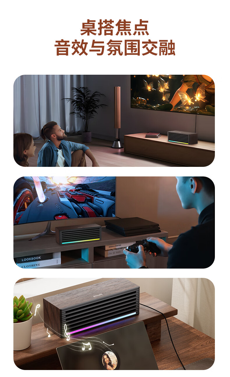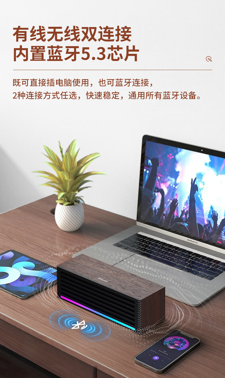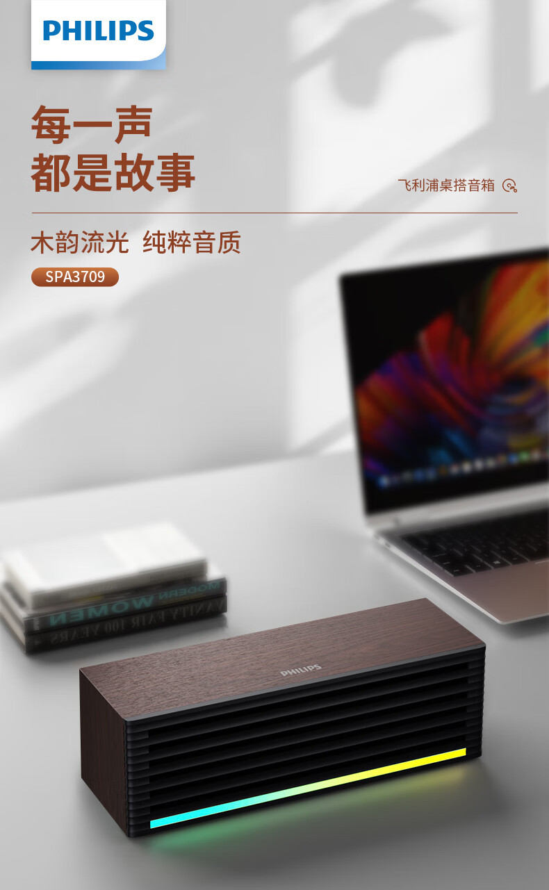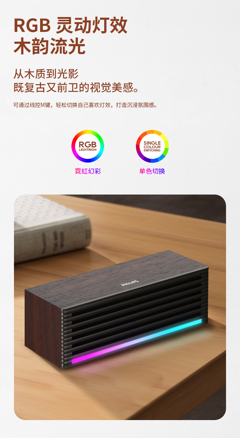 飞利浦(PHILIPS)SPA3709 蓝牙音箱 电脑音响 桌面家用台式笔记本 手机音箱 RGB灯效