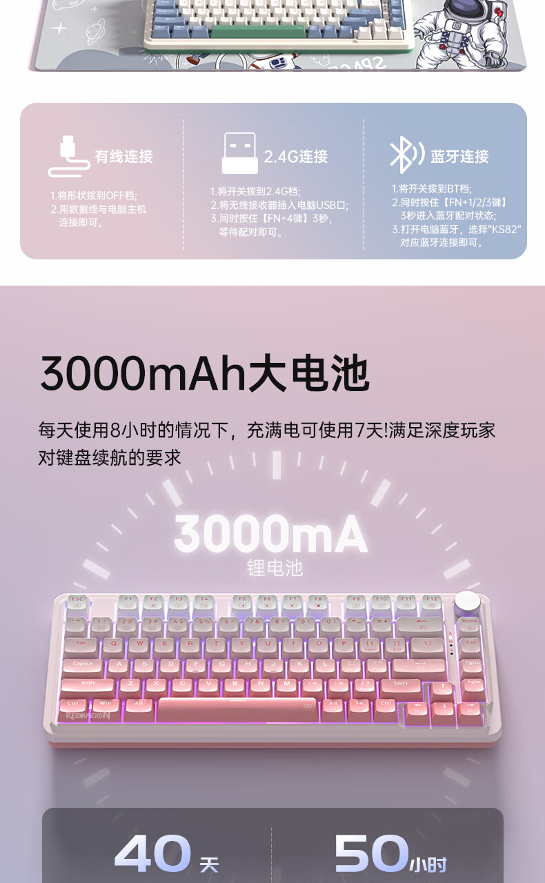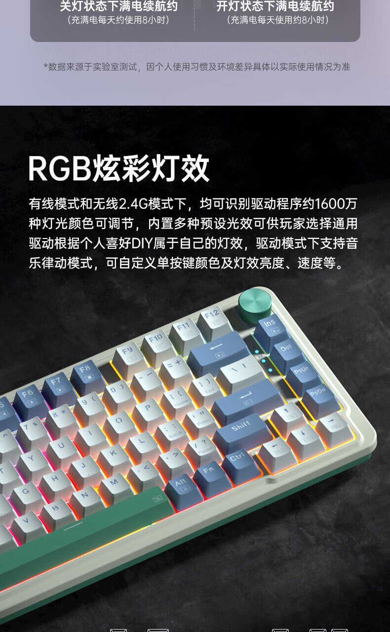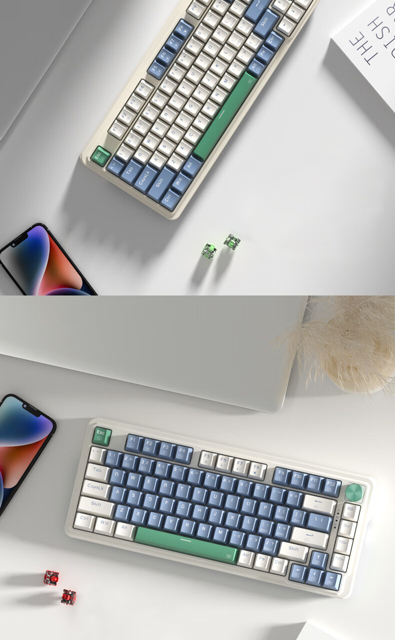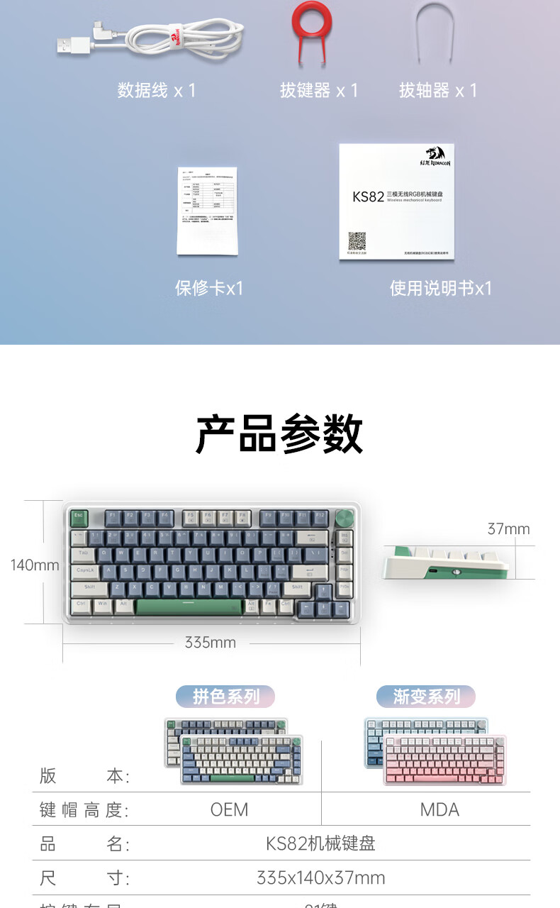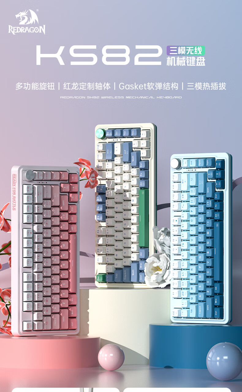 红龙(REDRAGON)KS82三模热插拔游戏办公机械键盘gasket结构RGB灯光客制化键盘 海之盐-火红轴