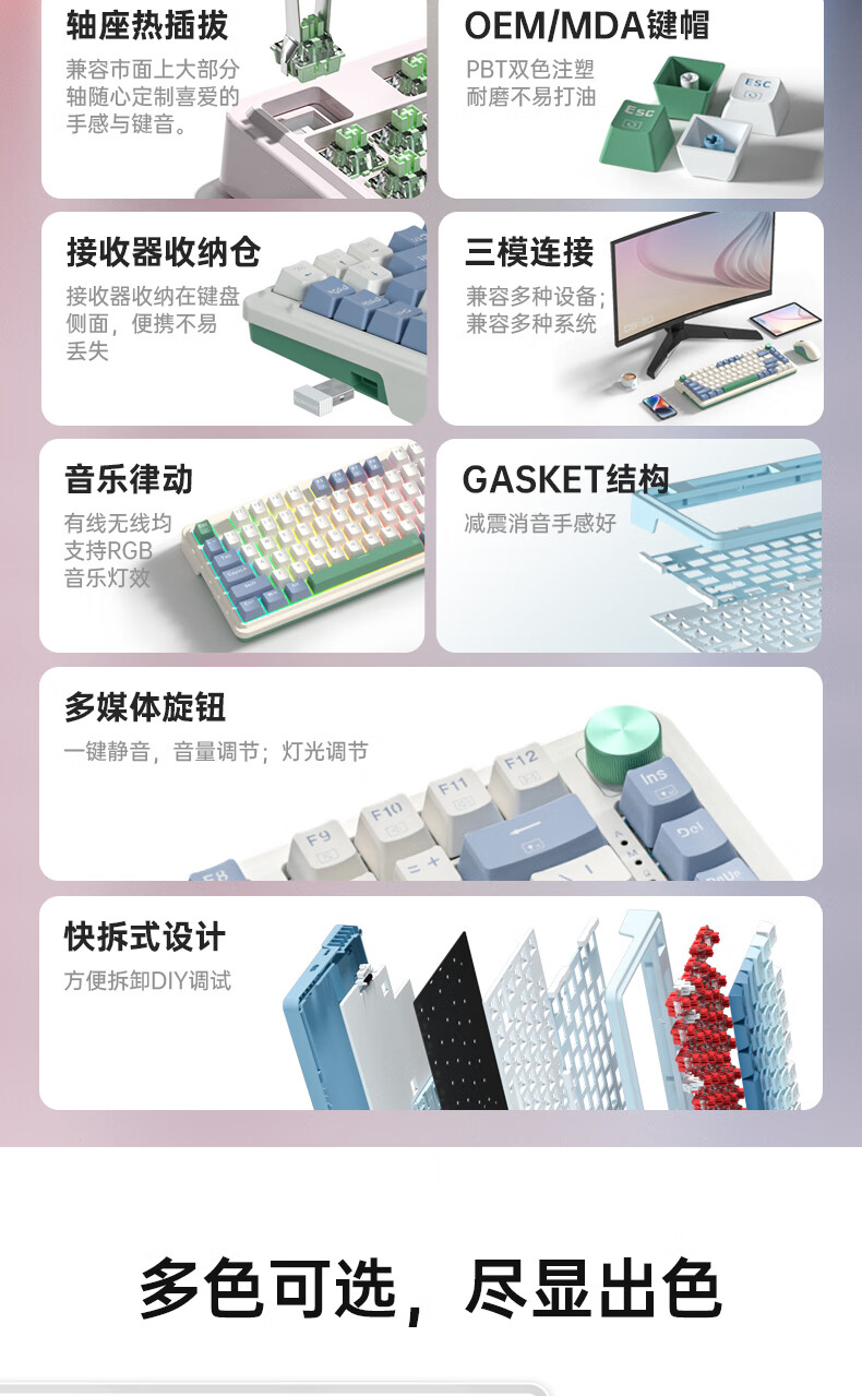 AKKO馒头乐园MG108B 可爱键帽机械键盘三模RGB热插拔电脑笔记本客制化键盘 七夕情人节礼物送女友