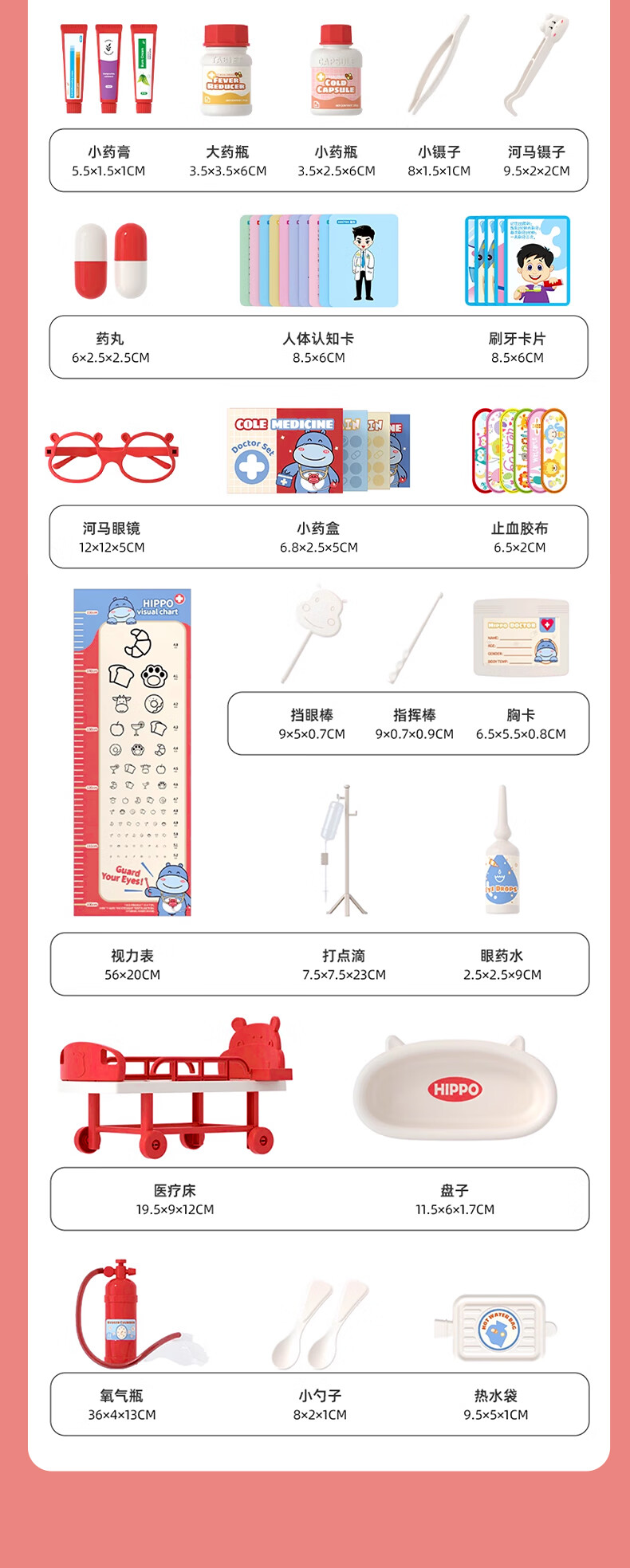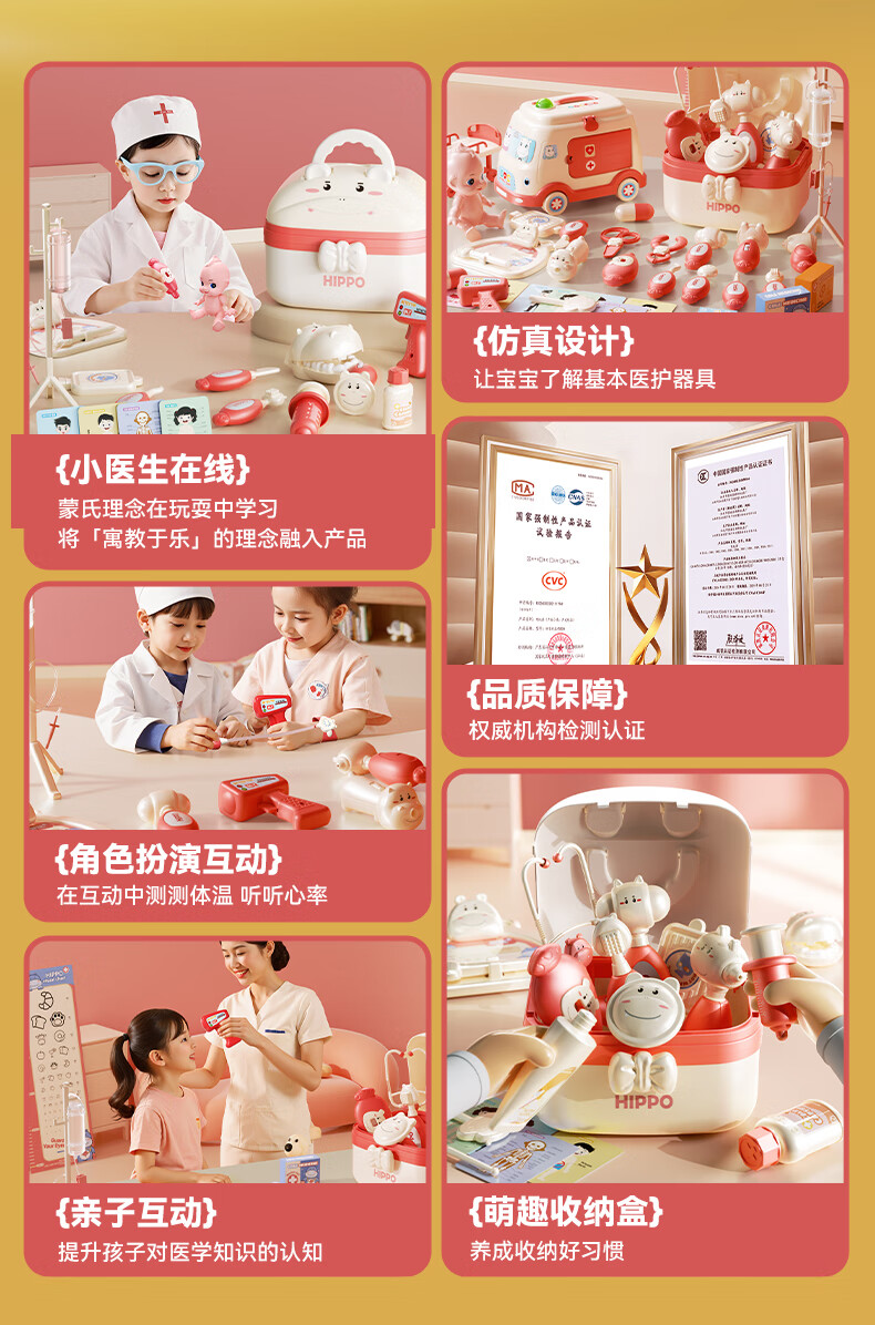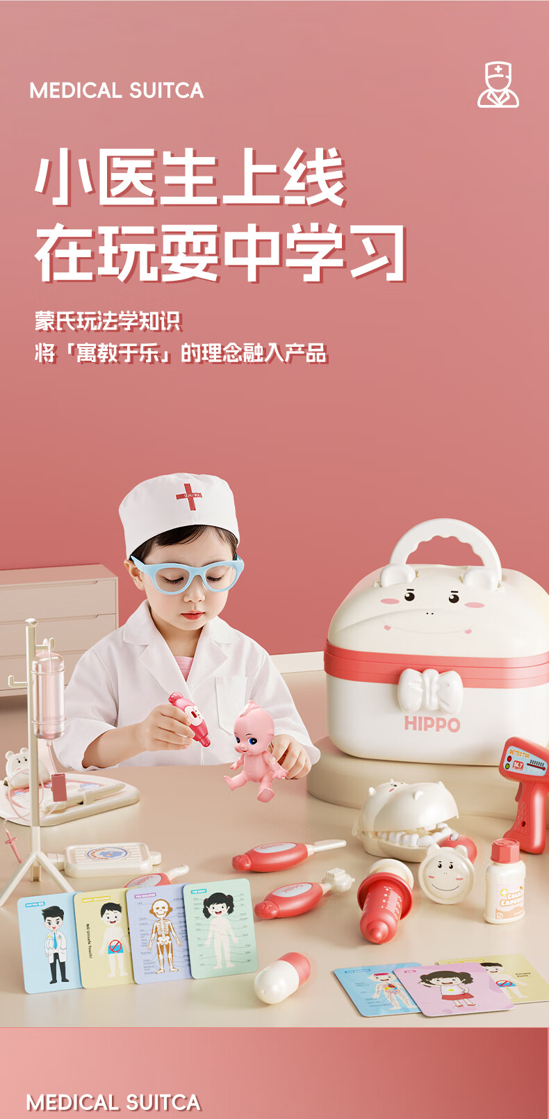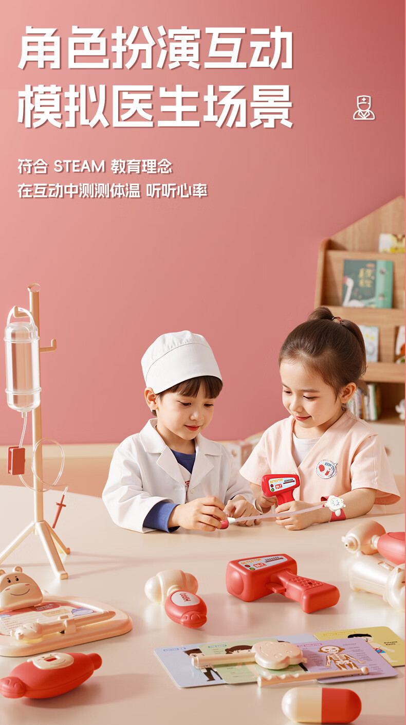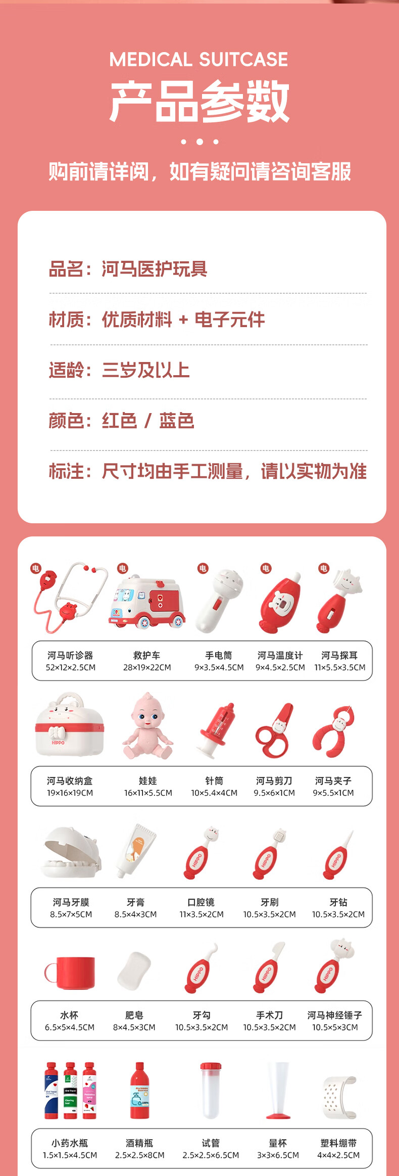 欧塞奇儿童小医生玩具套装女孩过家家医疗箱看病3-6岁早教益智小玩具 粉色河马【基础版39件】送娃娃+医疗床