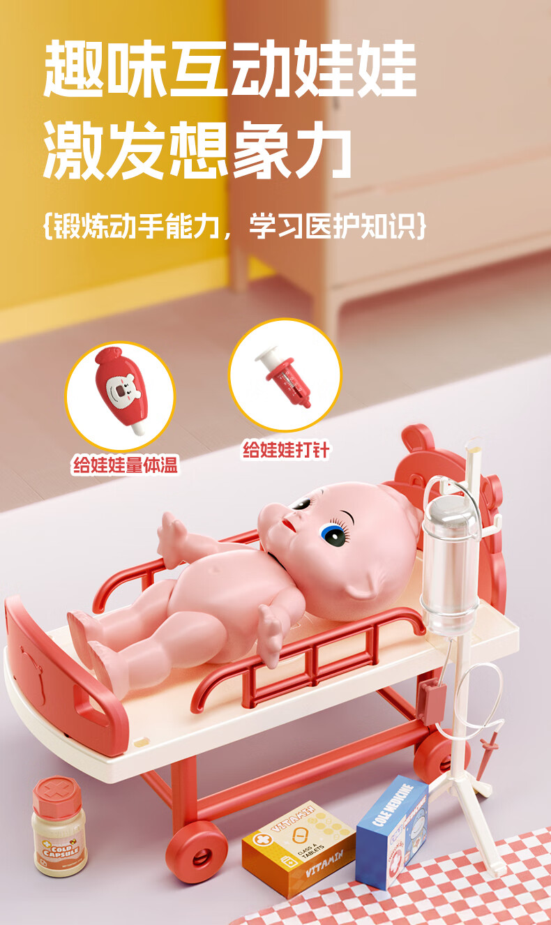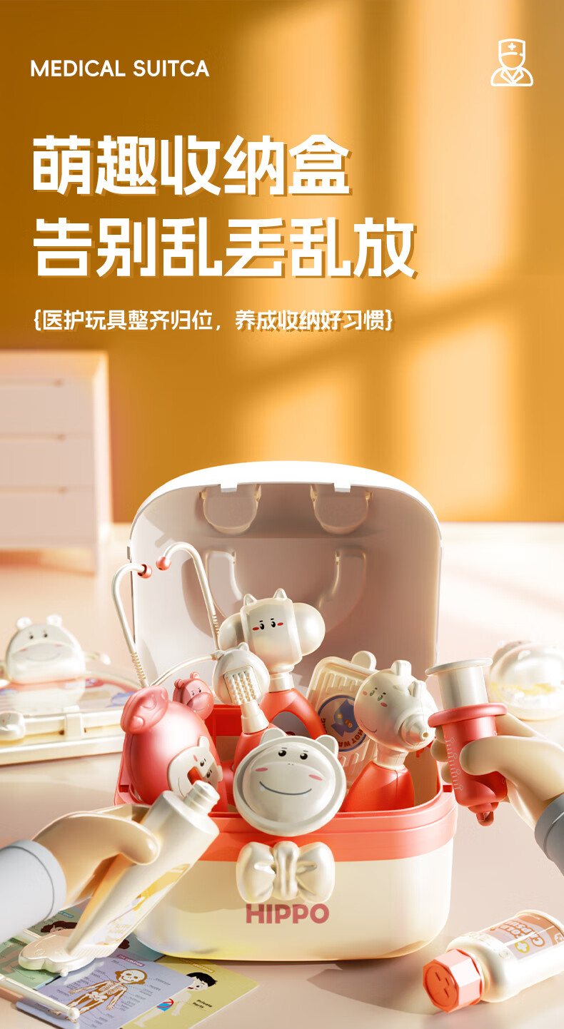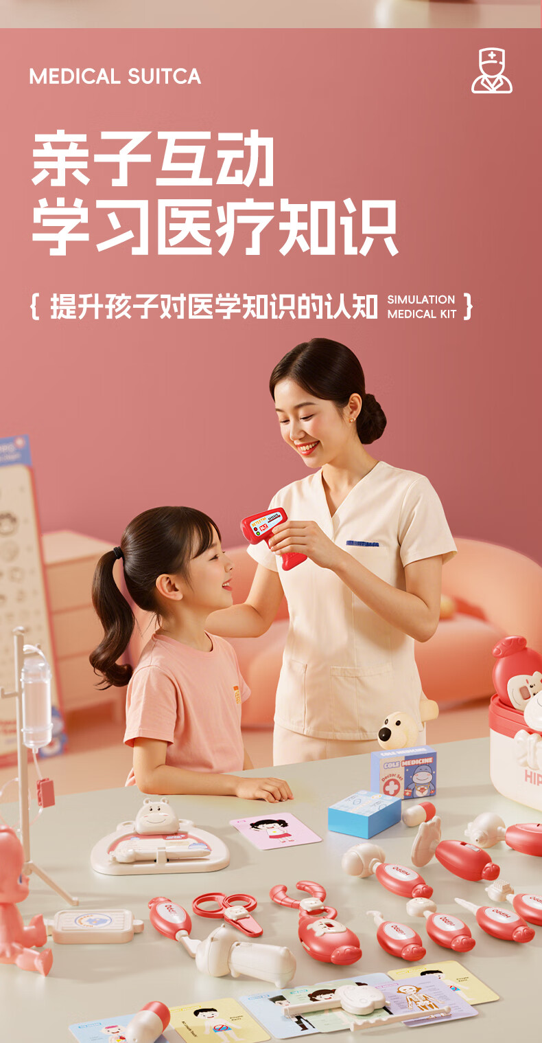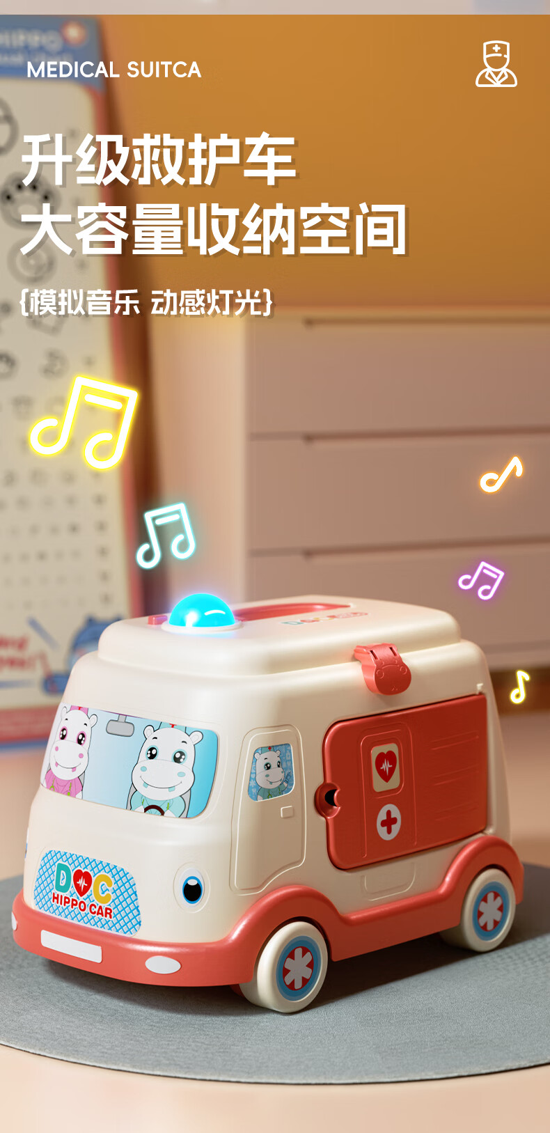 欧塞奇儿童小医生玩具套装女孩过家家医疗箱看病3-6岁早教益智小玩具 粉色河马【基础版39件】送娃娃+医疗床