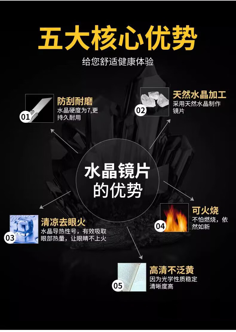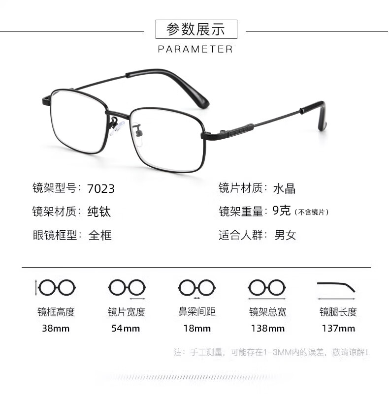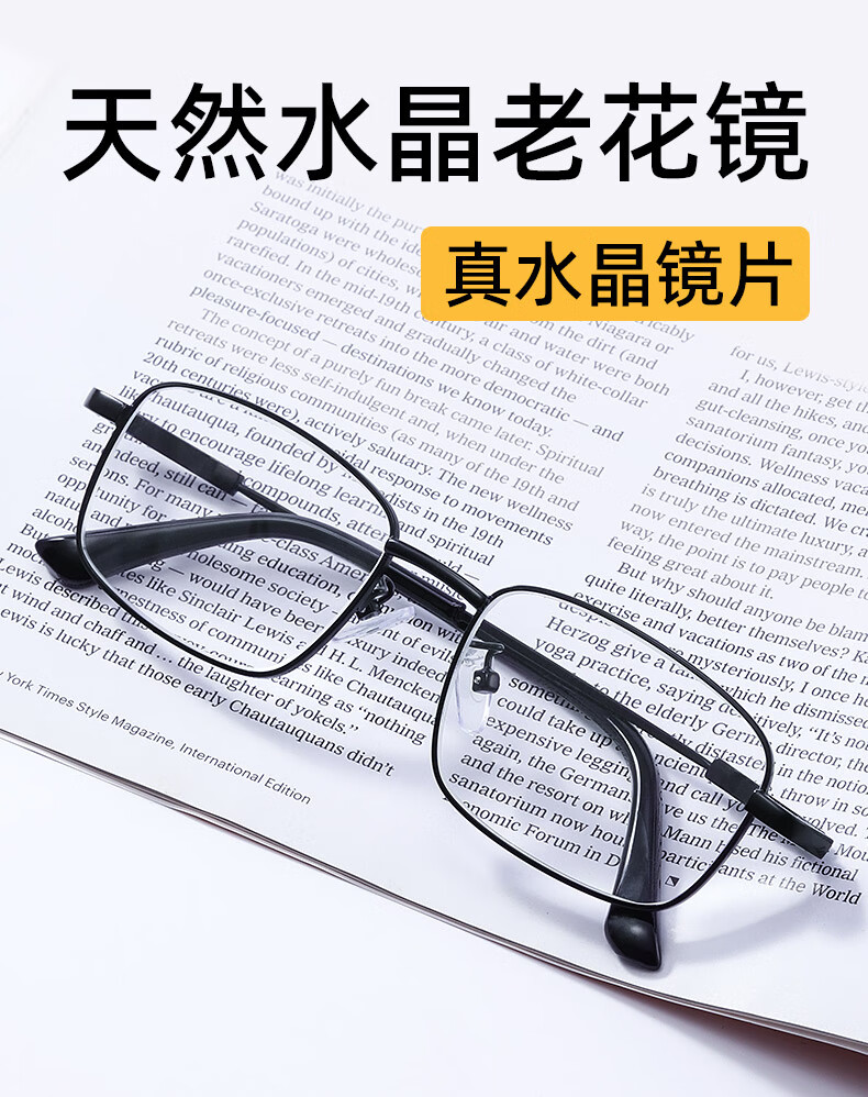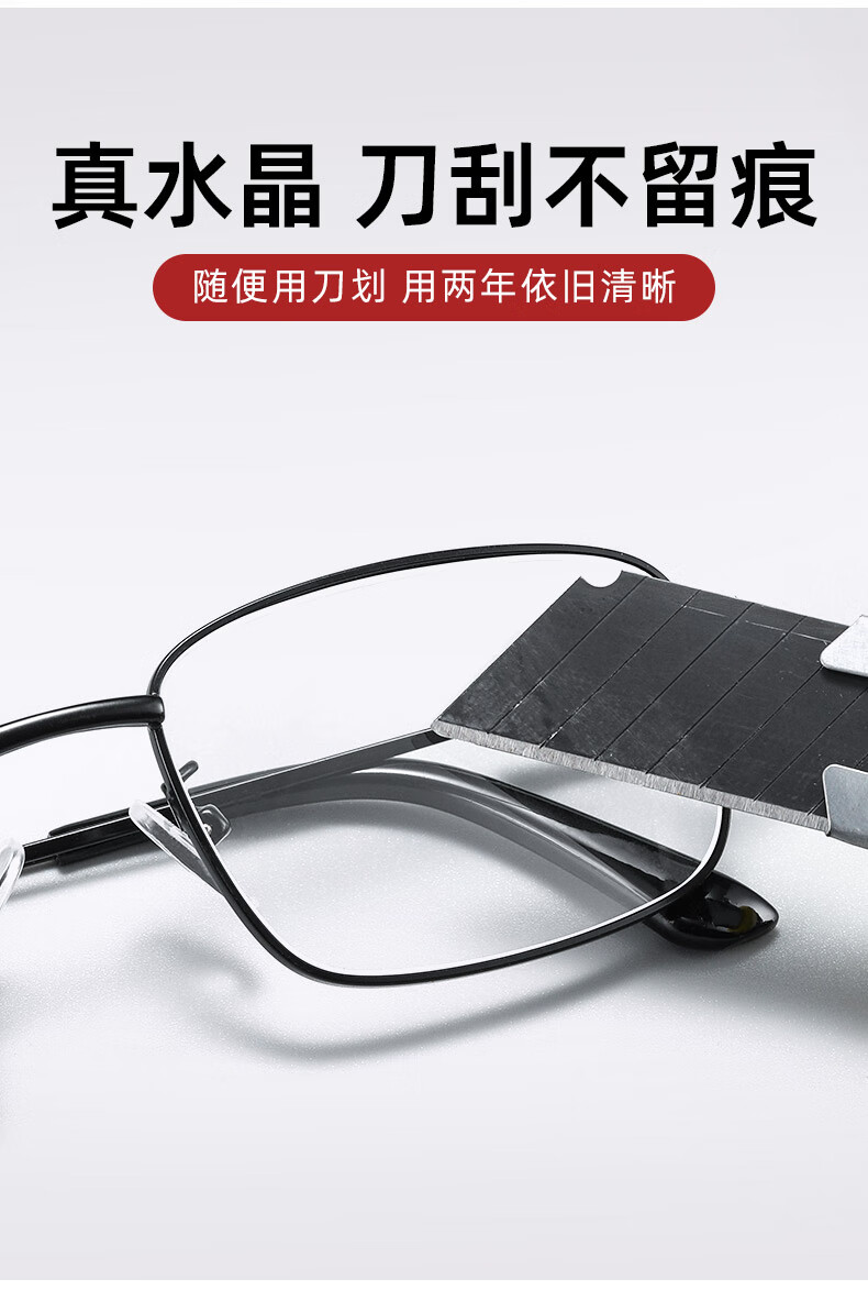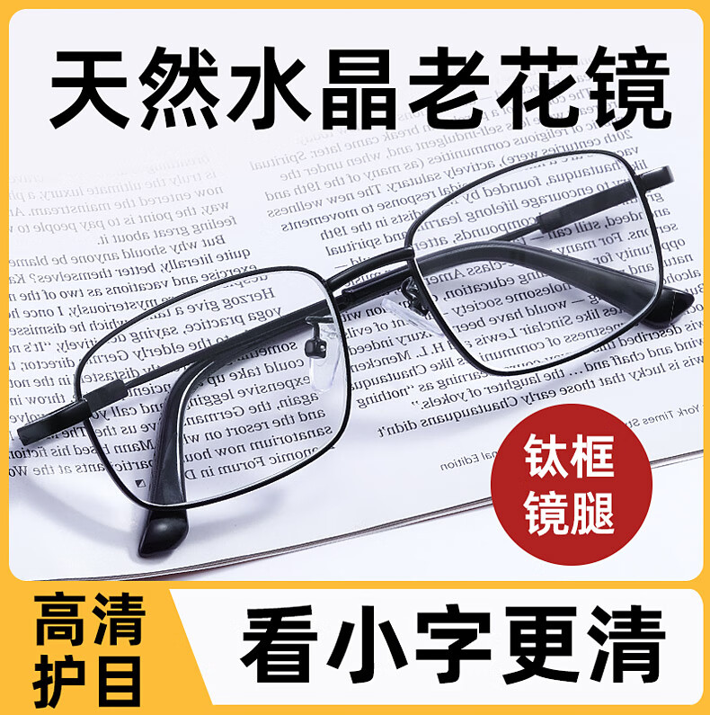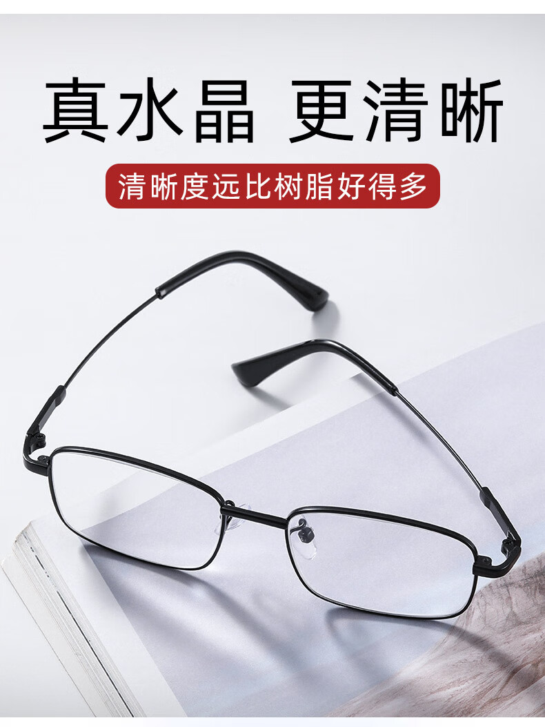 GOGOSOON钛框水晶老花镜男纯天然水晶石眼镜高清晰超轻老人高档钛架商务黑