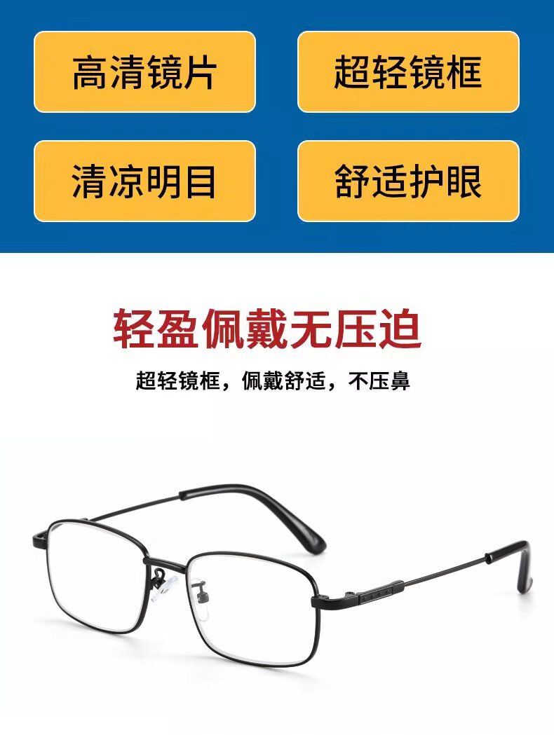 HB防蓝光无框老花镜 时尚耐磨点漆 高清舒适 开学
