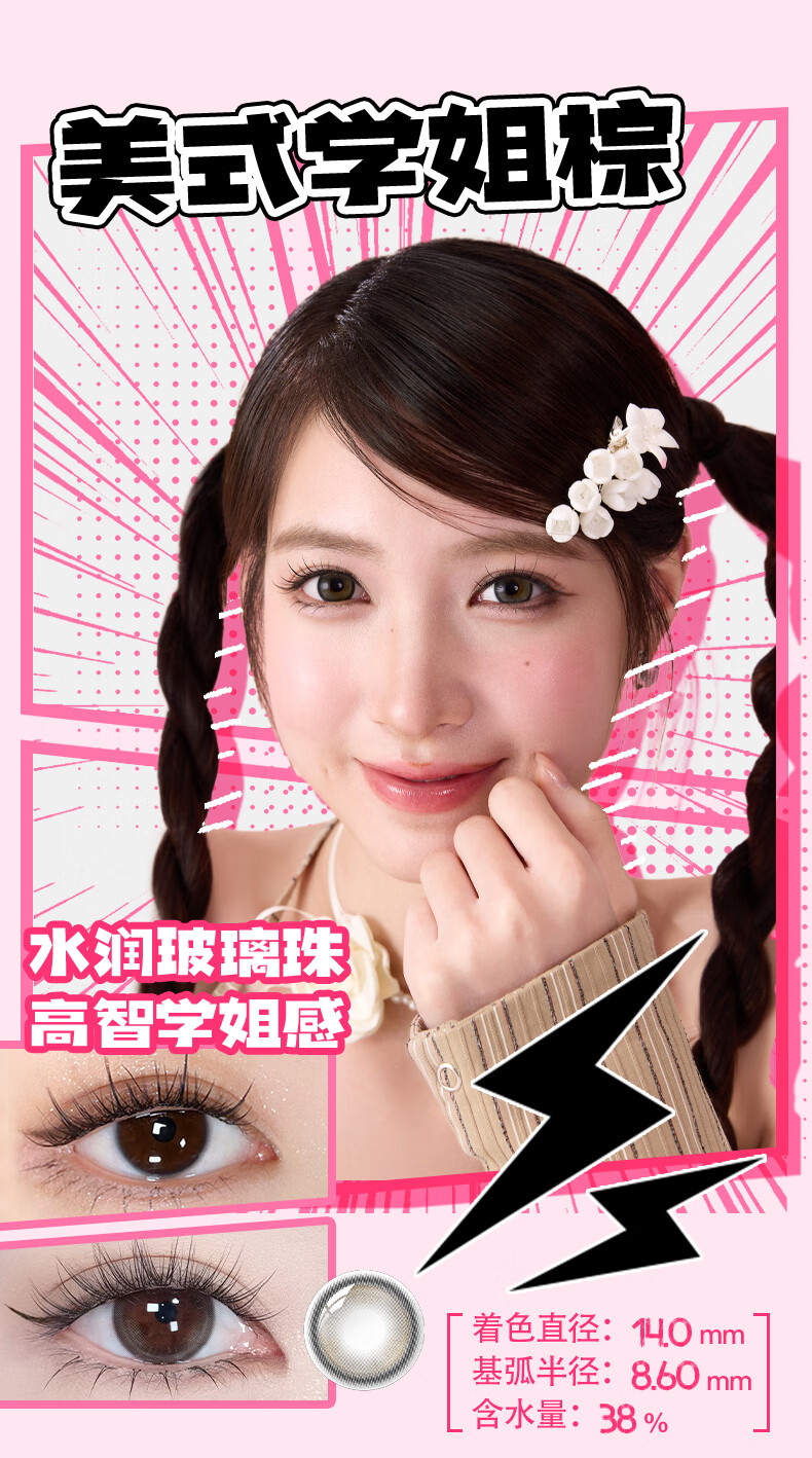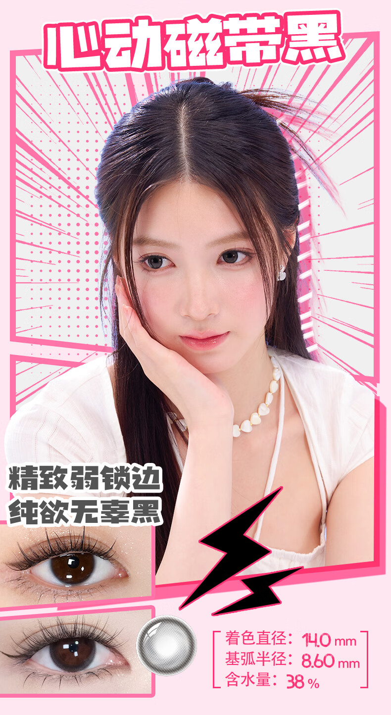 海俪恩美瞳彩色隐形眼镜 JKGIRLS大直径扩瞳月抛2片 心动磁带黑 425度