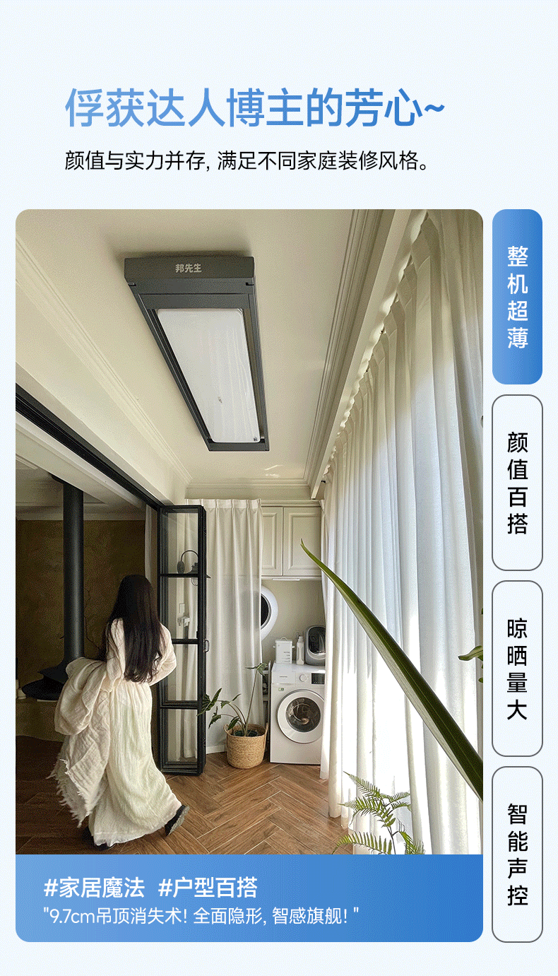 邦先生电动晾衣架隐藏式智能阳台晒衣架【M66PRO】星空灯+离线语音
