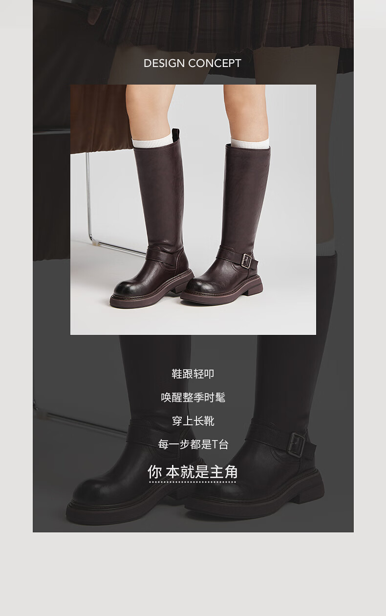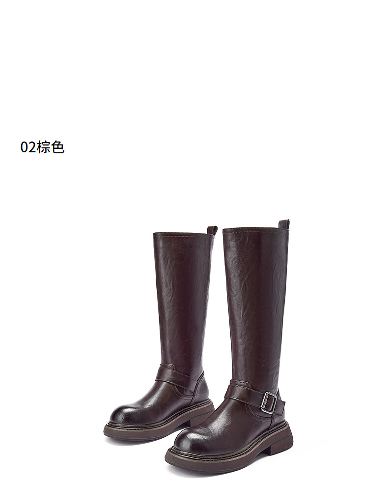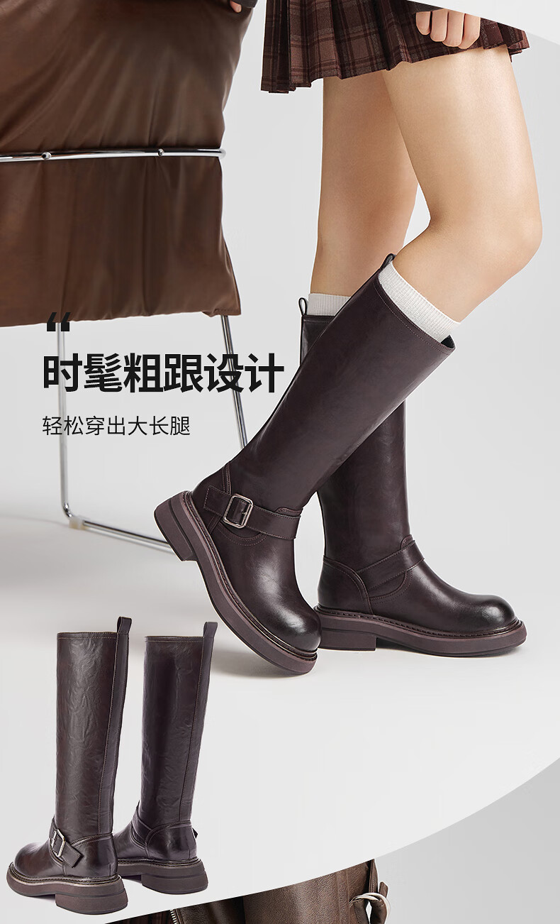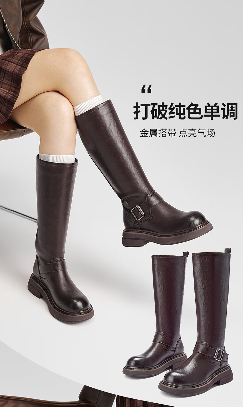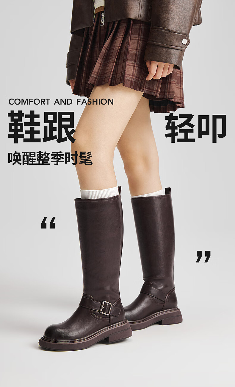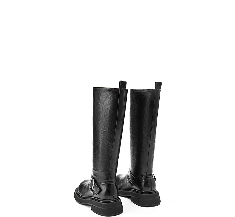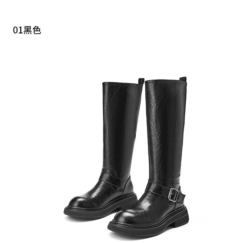 热风复古骑士靴女2025年冬季新款百搭长筒靴子黑色时装靴女鞋子 01黑色 36