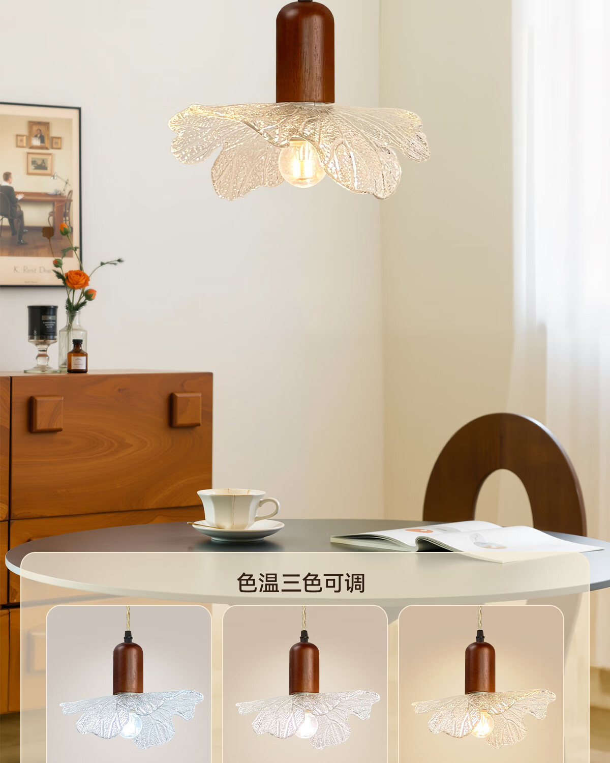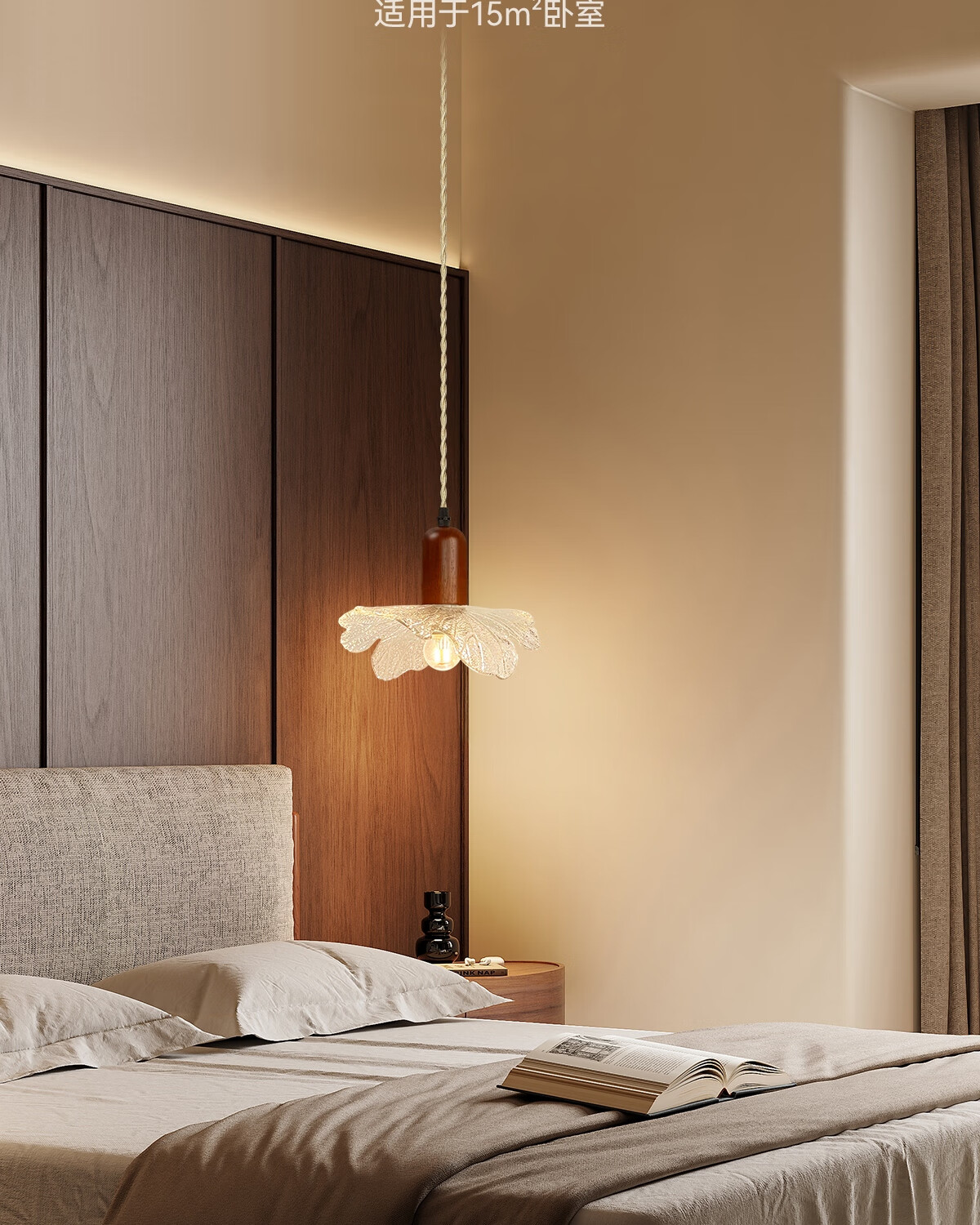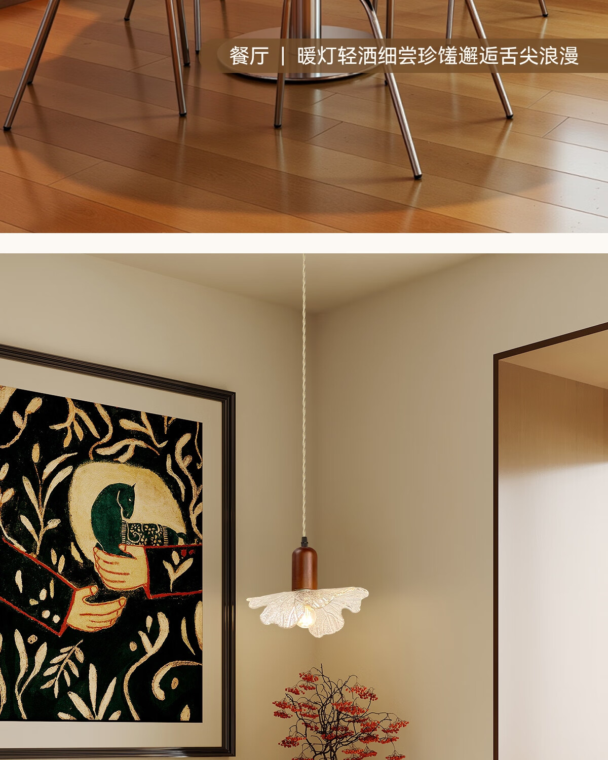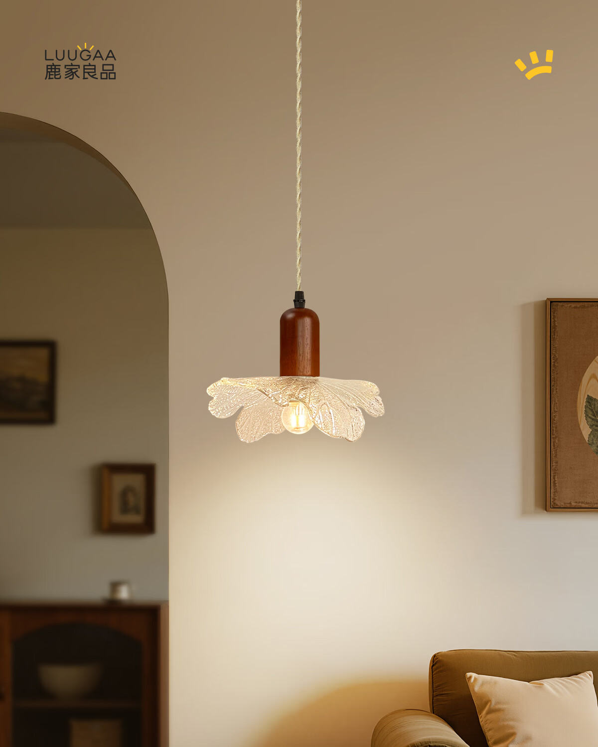 鹿家良品(LUUGAA)夏荷吊灯卧室床头小吊灯中古风书房餐厅玻璃法式复古侘寂风吊线灯 【荐】全光谱26cm三色光7W