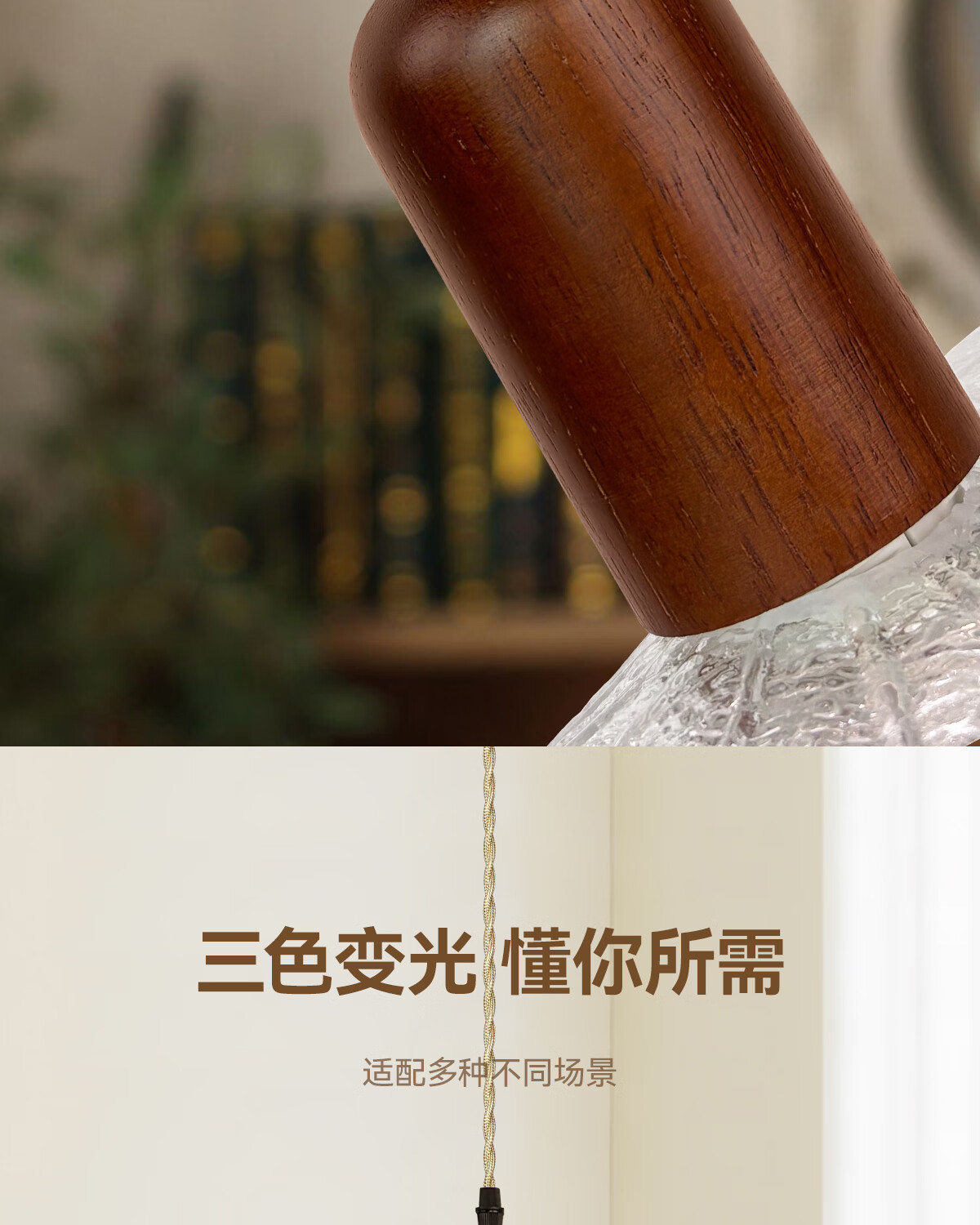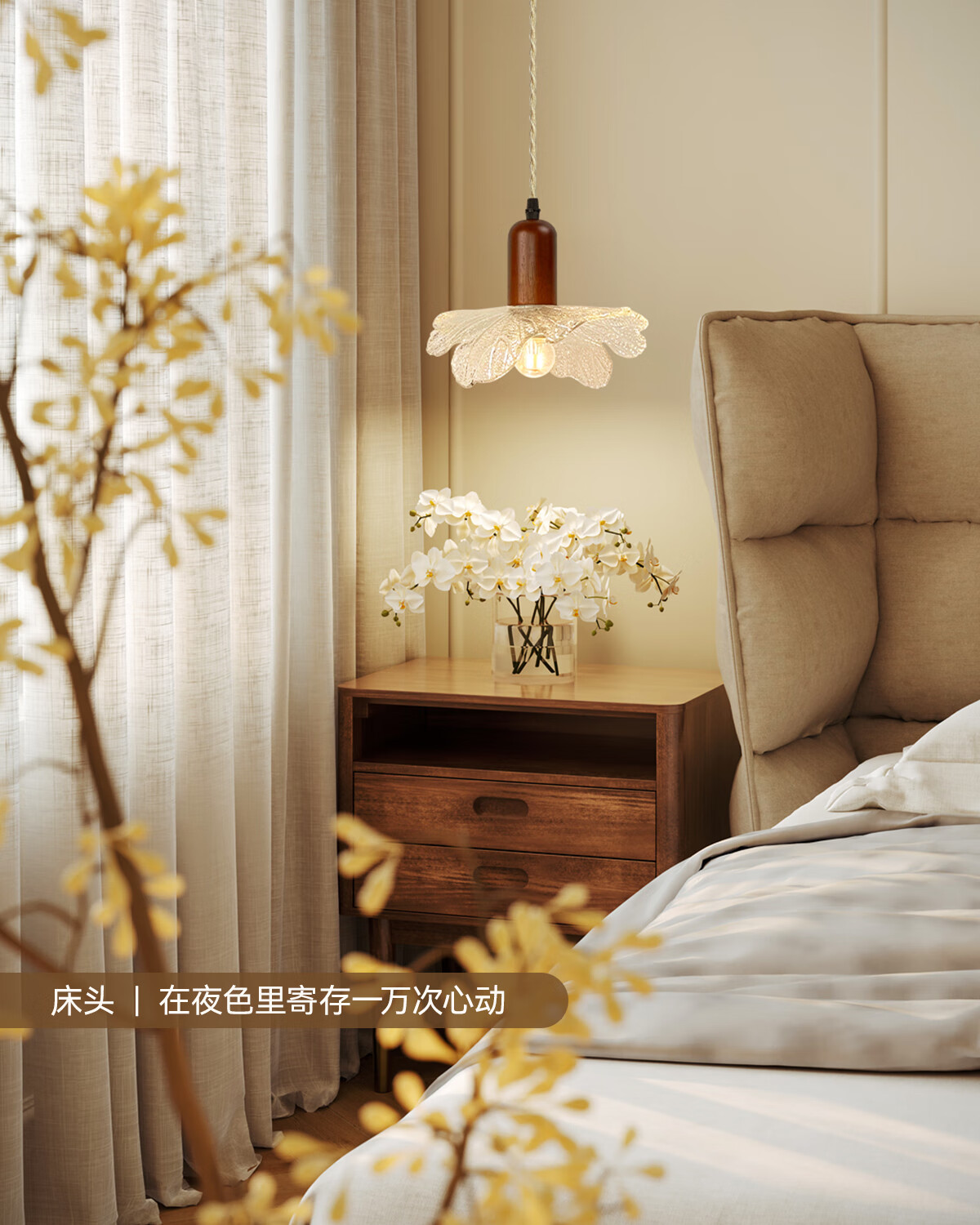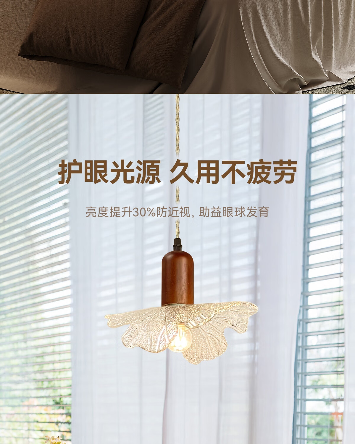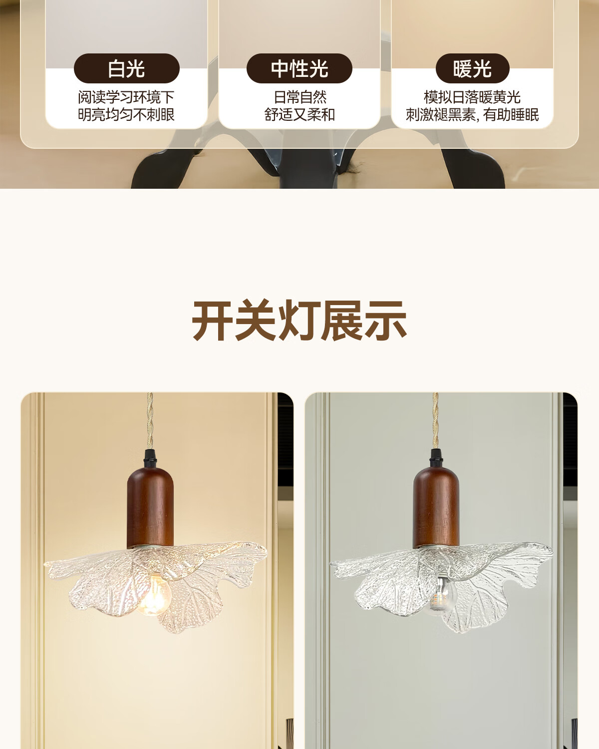 鹿家良品(LUUGAA)夏荷吊灯卧室床头小吊灯中古风书房餐厅玻璃法式复古侘寂风吊线灯 【荐】全光谱26cm三色光7W