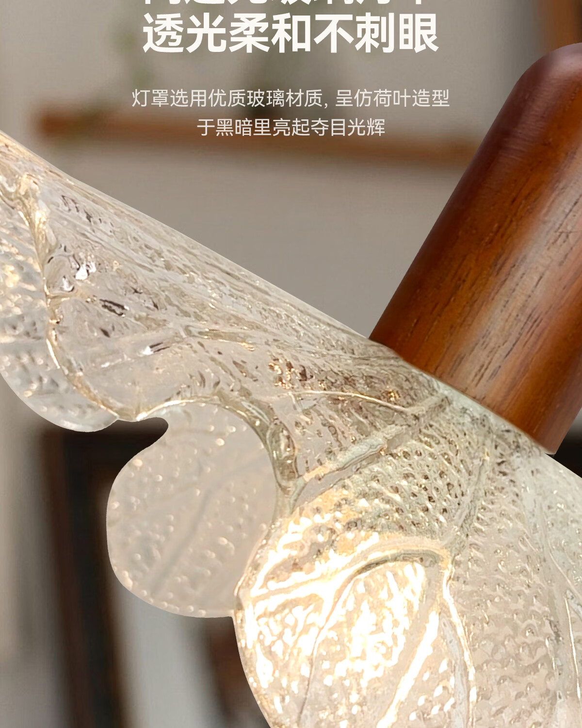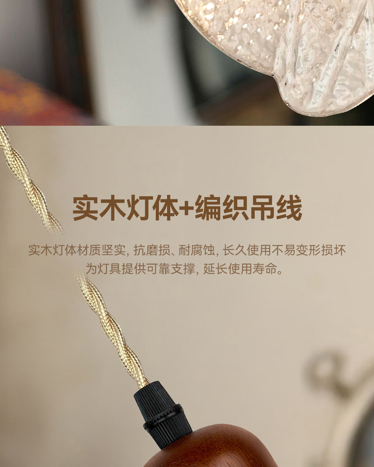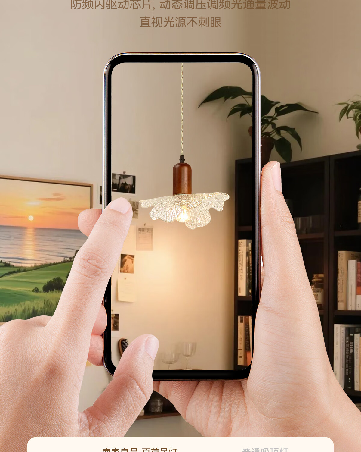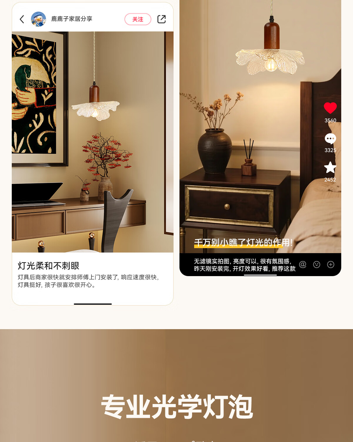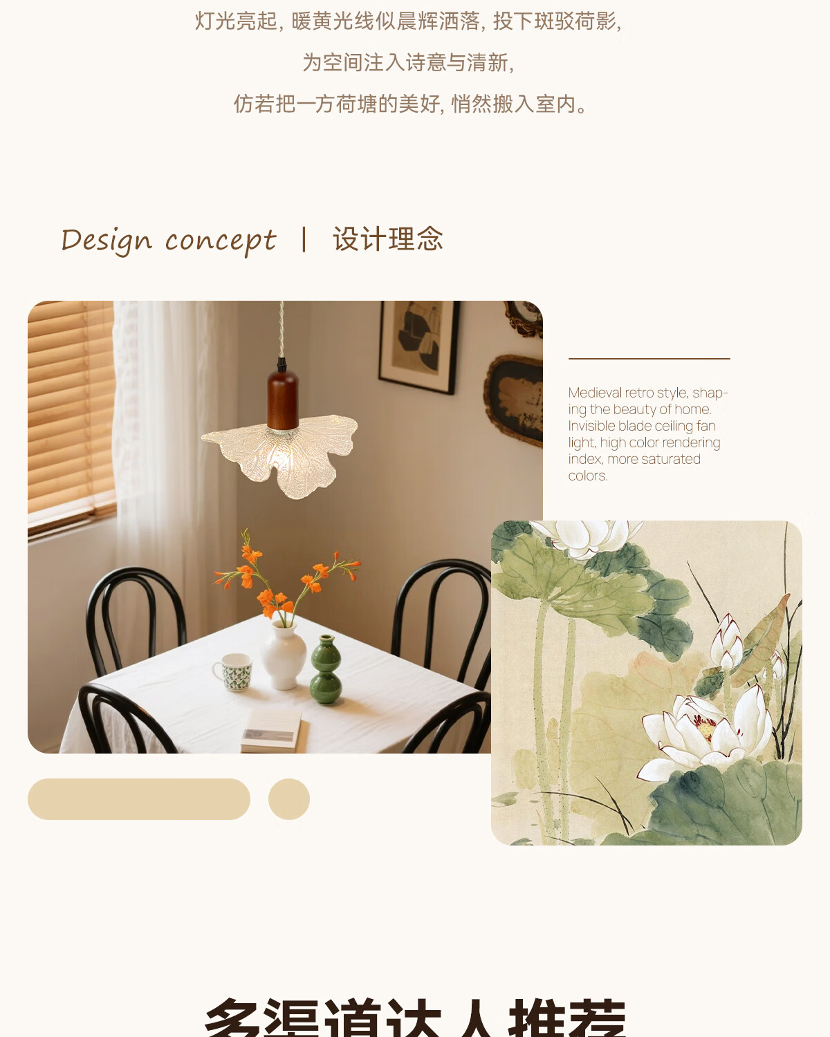 鹿家良品(LUUGAA)夏荷吊灯卧室床头小吊灯中古风书房餐厅玻璃法式复古侘寂风吊线灯 【荐】全光谱26cm三色光7W