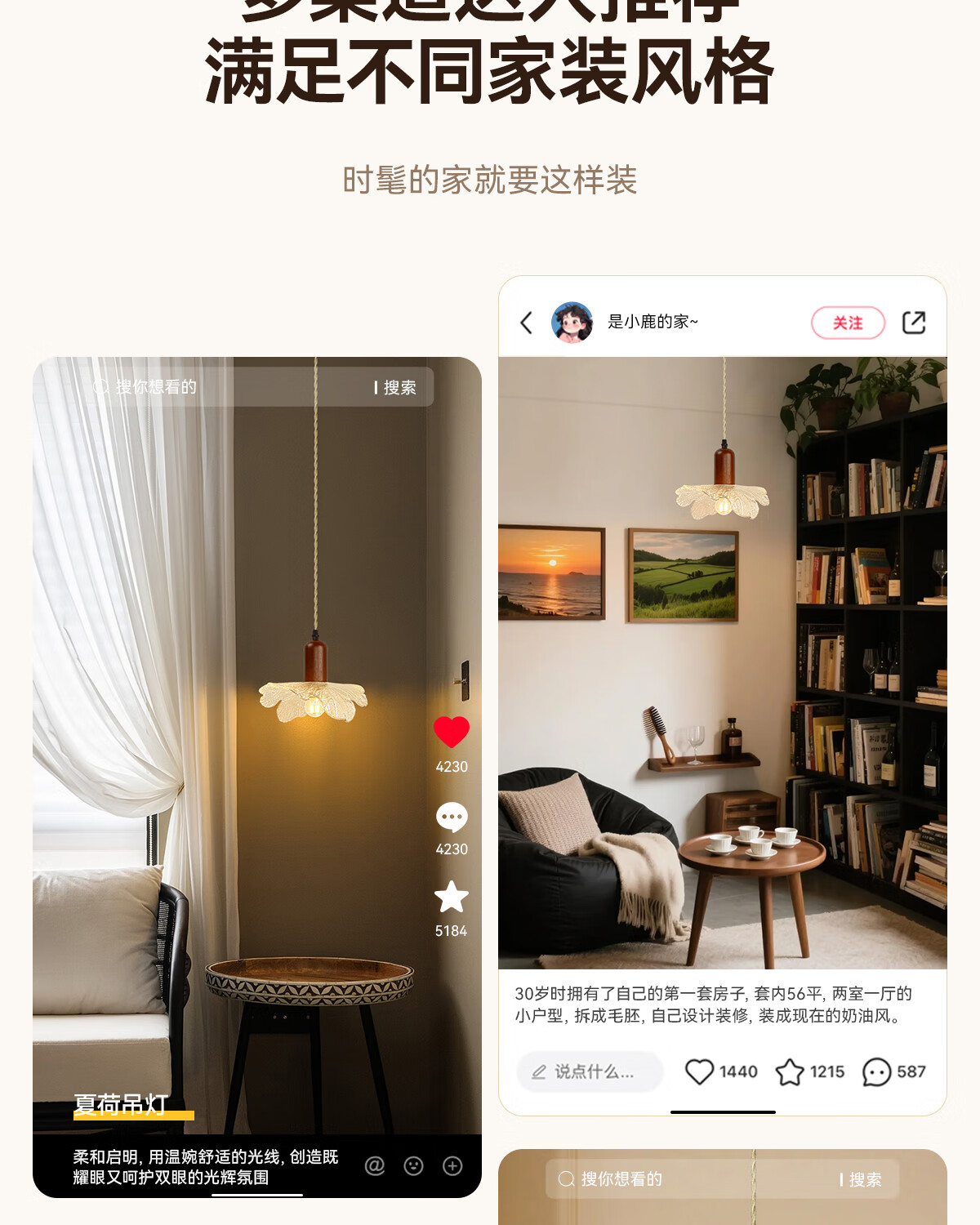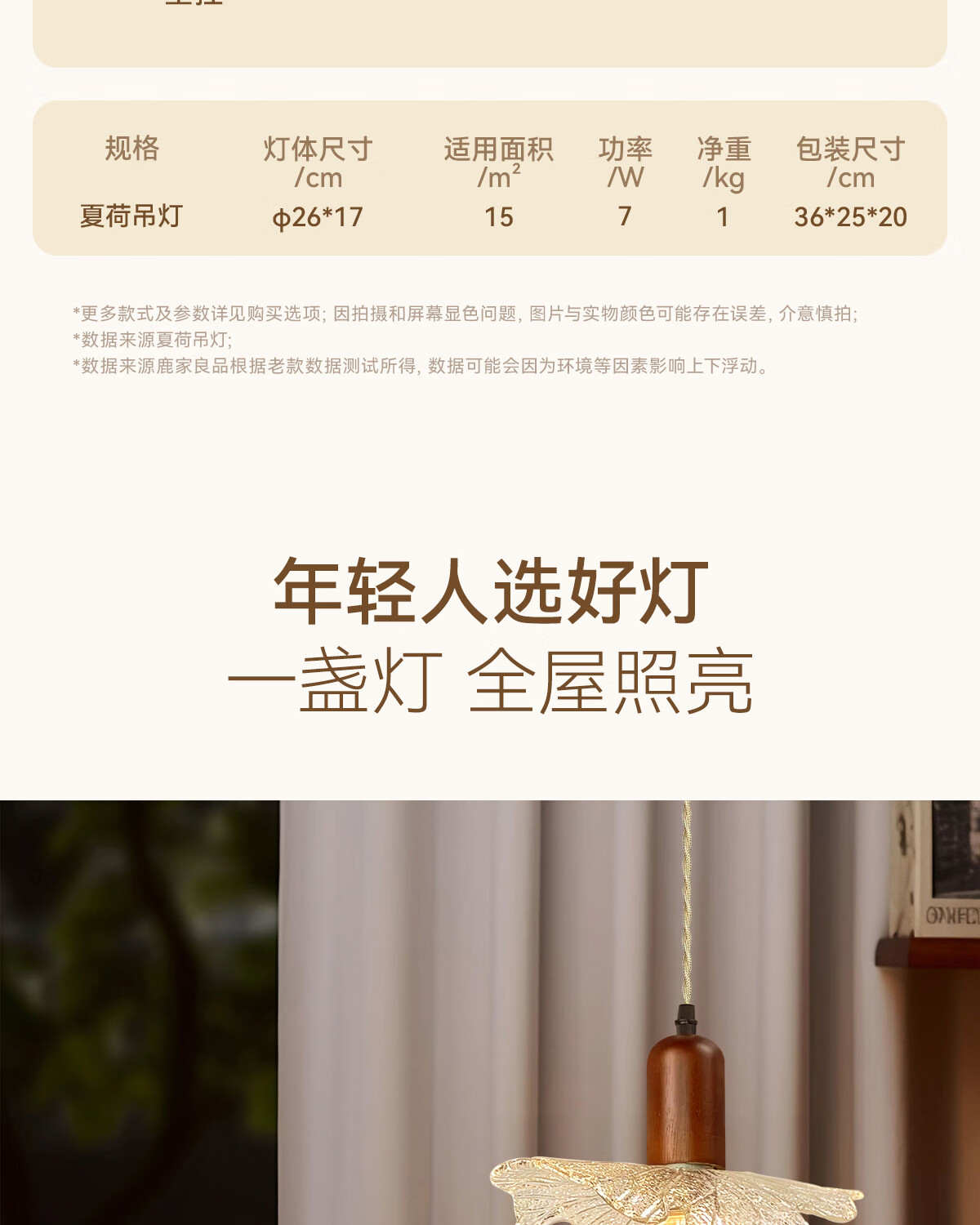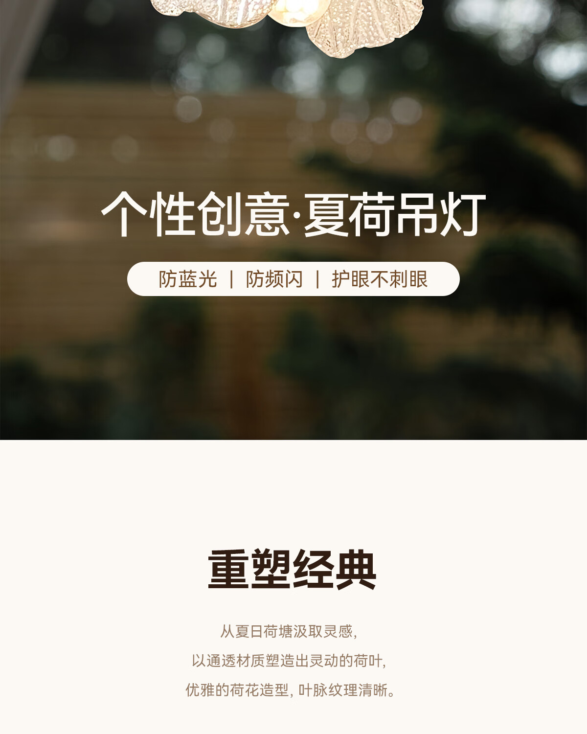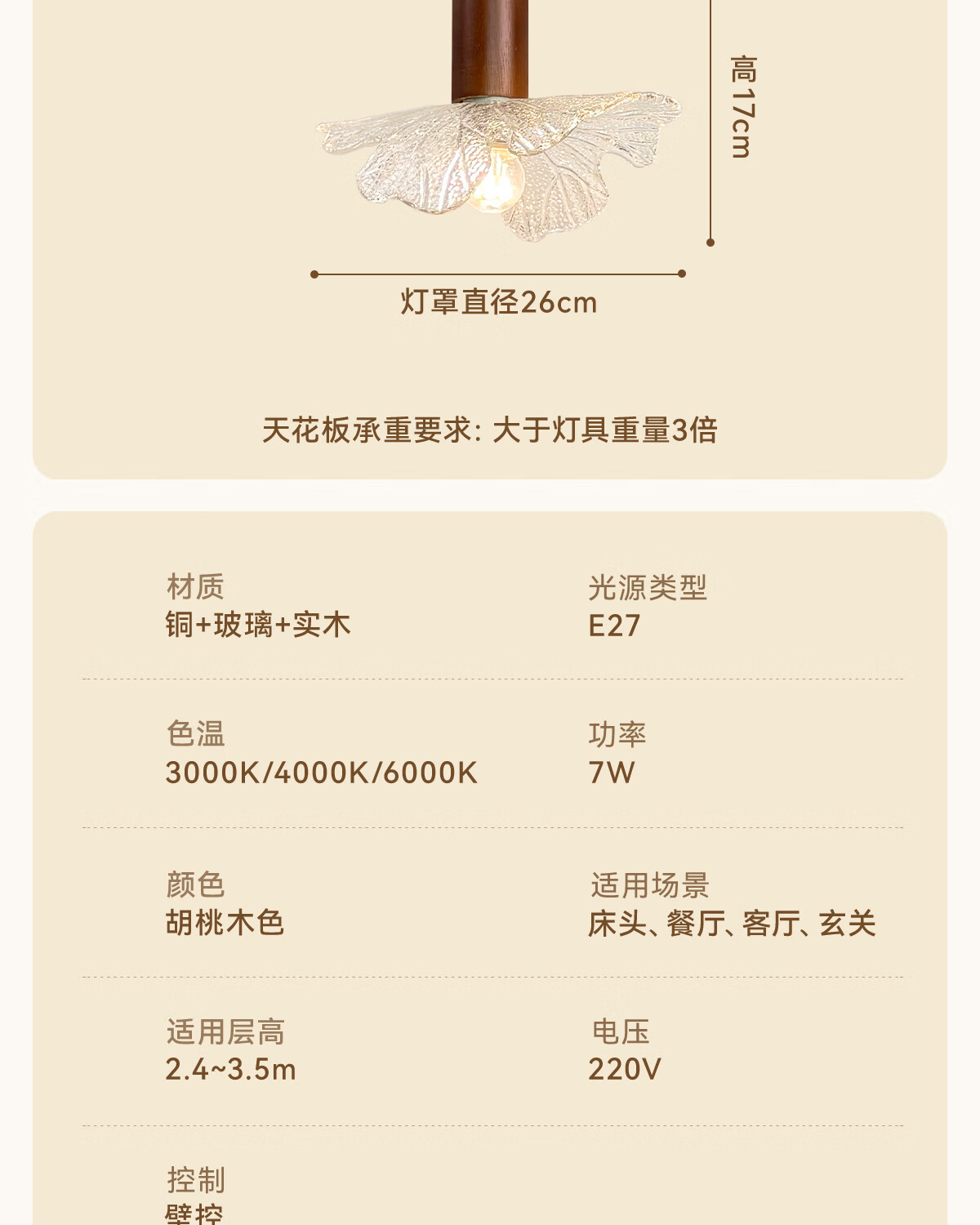 鹿家良品(LUUGAA)夏荷吊灯卧室床头小吊灯中古风书房餐厅玻璃法式复古侘寂风吊线灯 【荐】全光谱26cm三色光7W