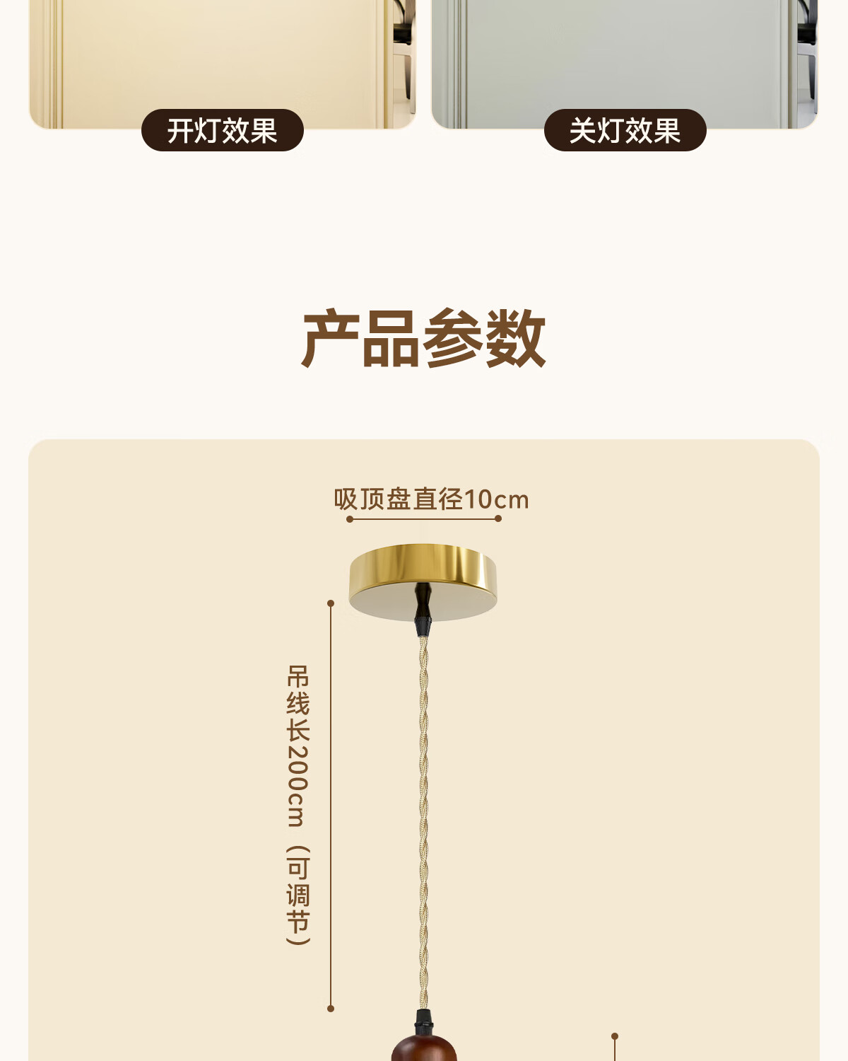 鹿家良品(LUUGAA)黄洞石装饰床头吊灯卧室艺术灯具新款侘寂风书房过道全光谱护眼 【荐|特惠款】全光谱40cm暖光5W
