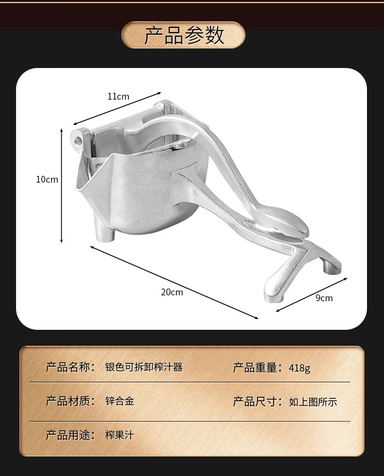 拜杰石榴榨汁神器手动榨汁机加厚加重橙汁机手压柠檬可拆卸水果压汁机