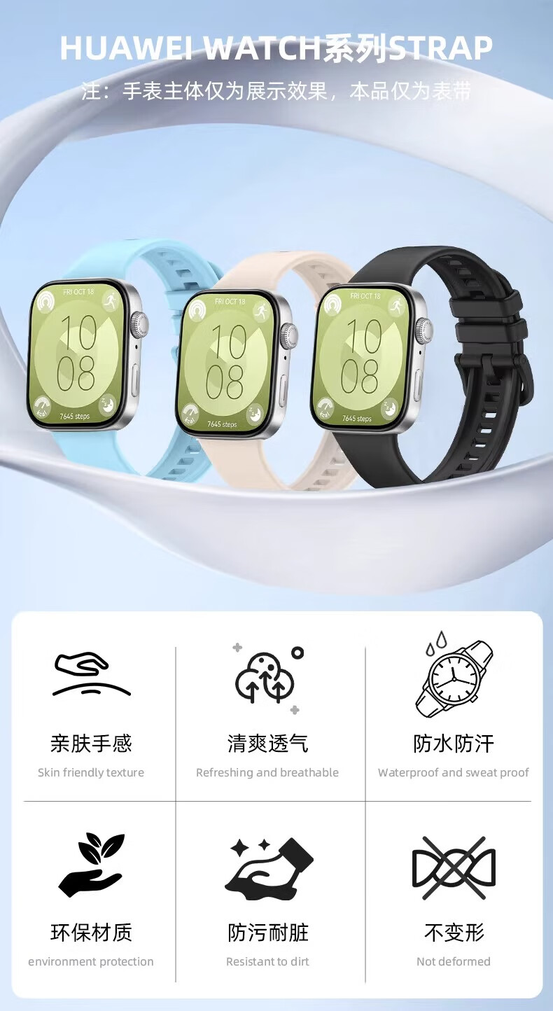 轩邑 适用华为watch Fit3表带活力款硅胶腕带Watch fit3/4/4Pro透气手表链男女款手环替换带 象牙白