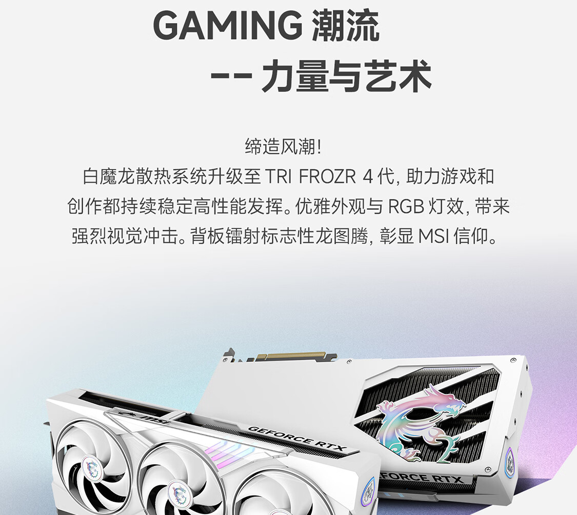 微星(MSI)白魔龙 GeForce RTX 5070 12G GAMING TRIO OC WHITE AI推理 电竞游戏设计智能学习独立显卡