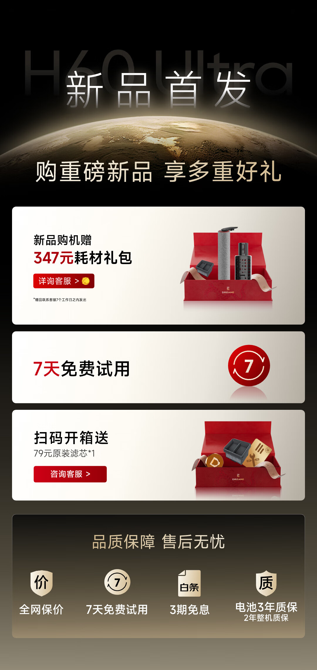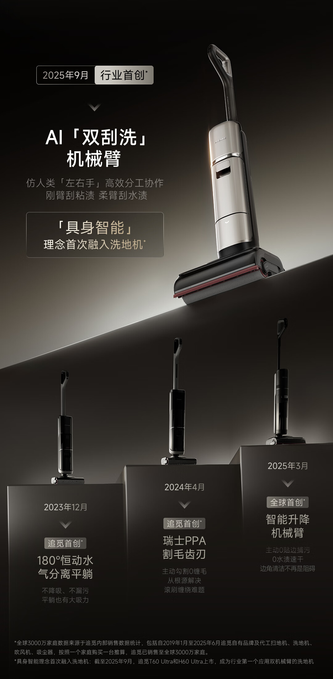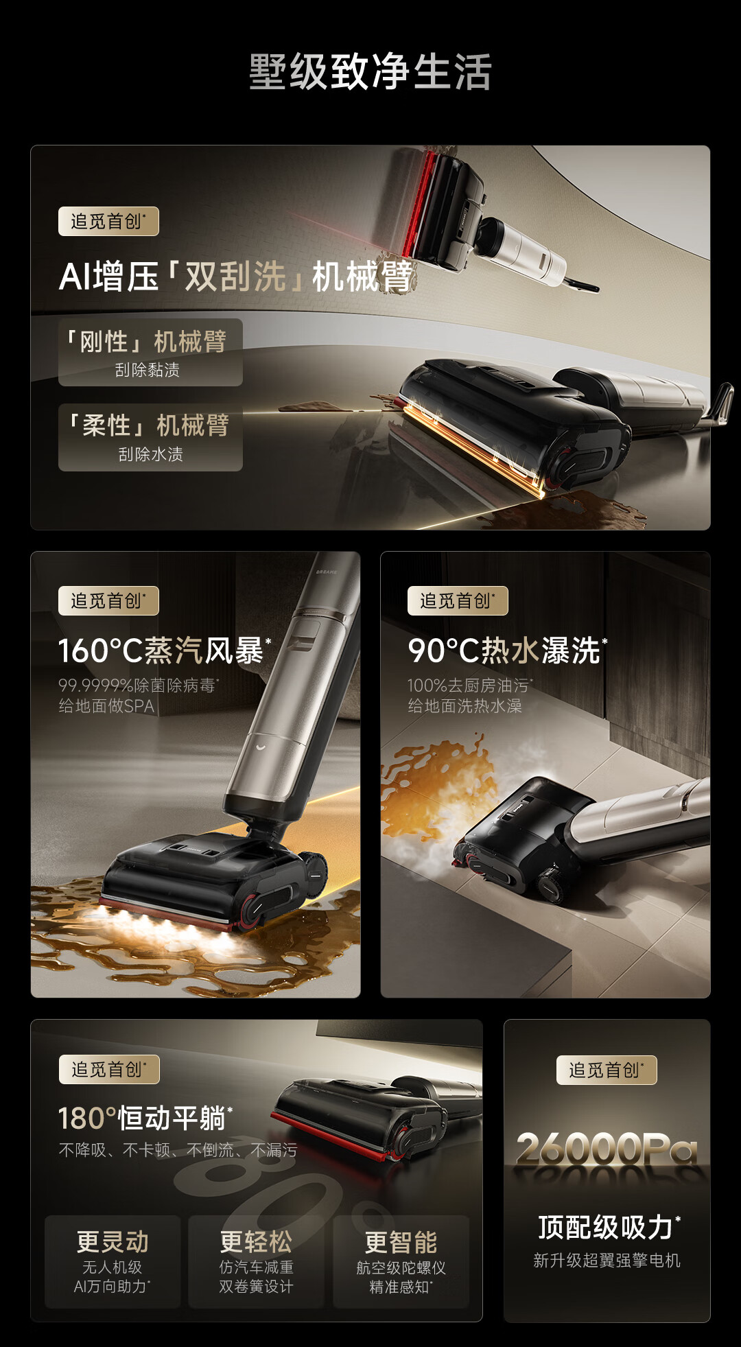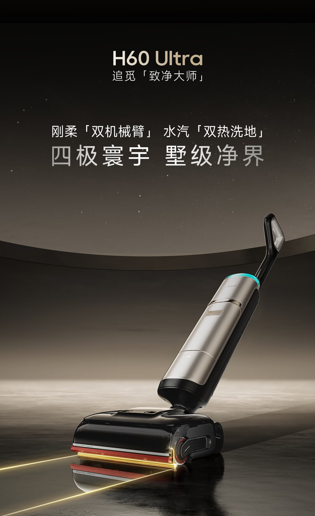 追觅【蒸汽新品】160℃超温蒸汽洗地机H60Ultra双机械臂飓风吸力智能洗拖吸一体自清洗国补
