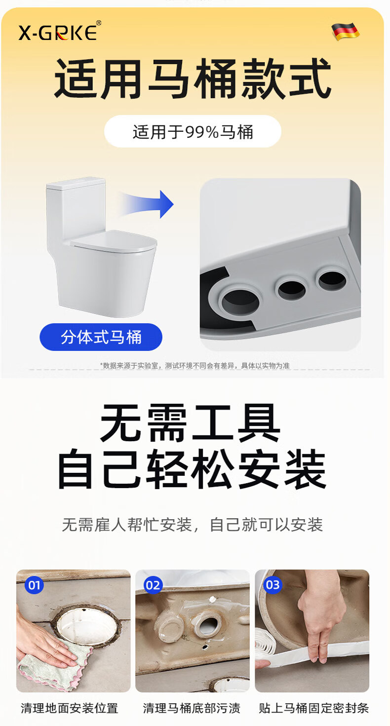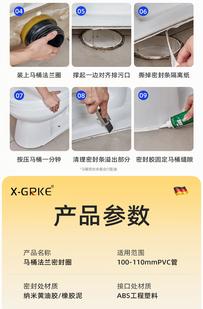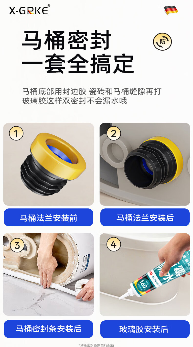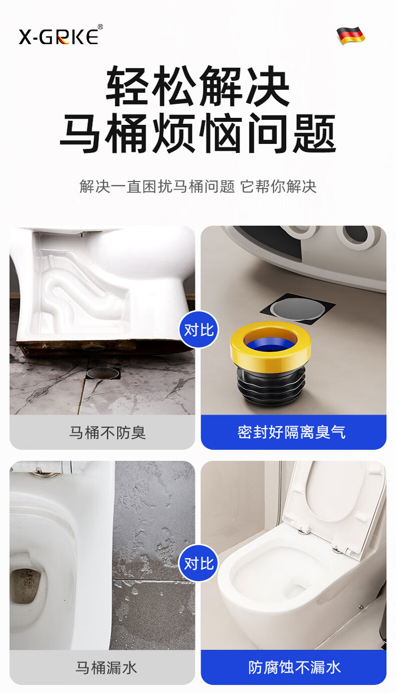X-GRKE【德国】马桶法兰密封圈防臭防渗漏加长坐便器底座通用配件防反水 防臭马桶法兰圈【黄油款】 耐用黄油丨质保20年丨赠送美缝胶