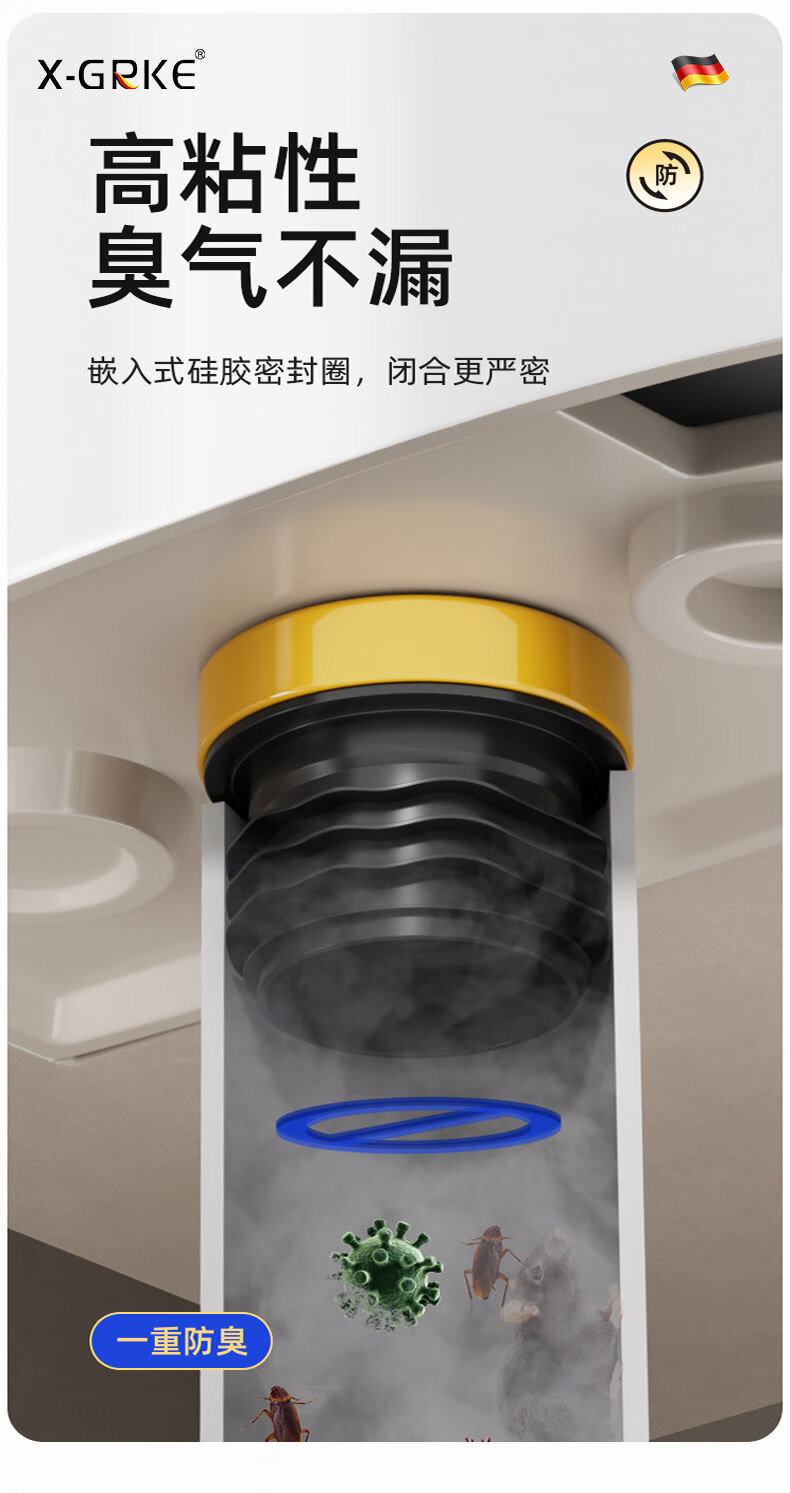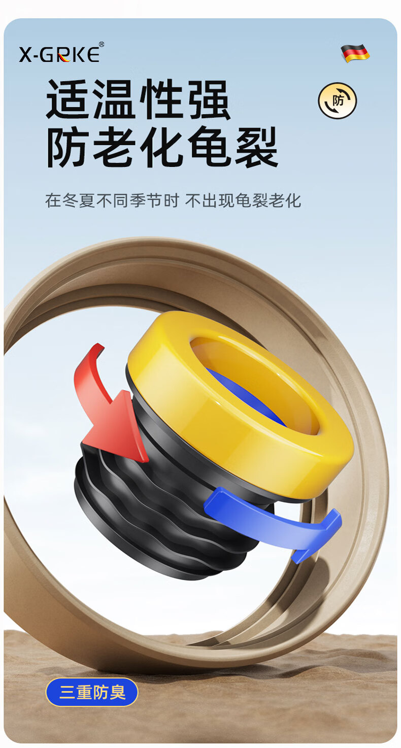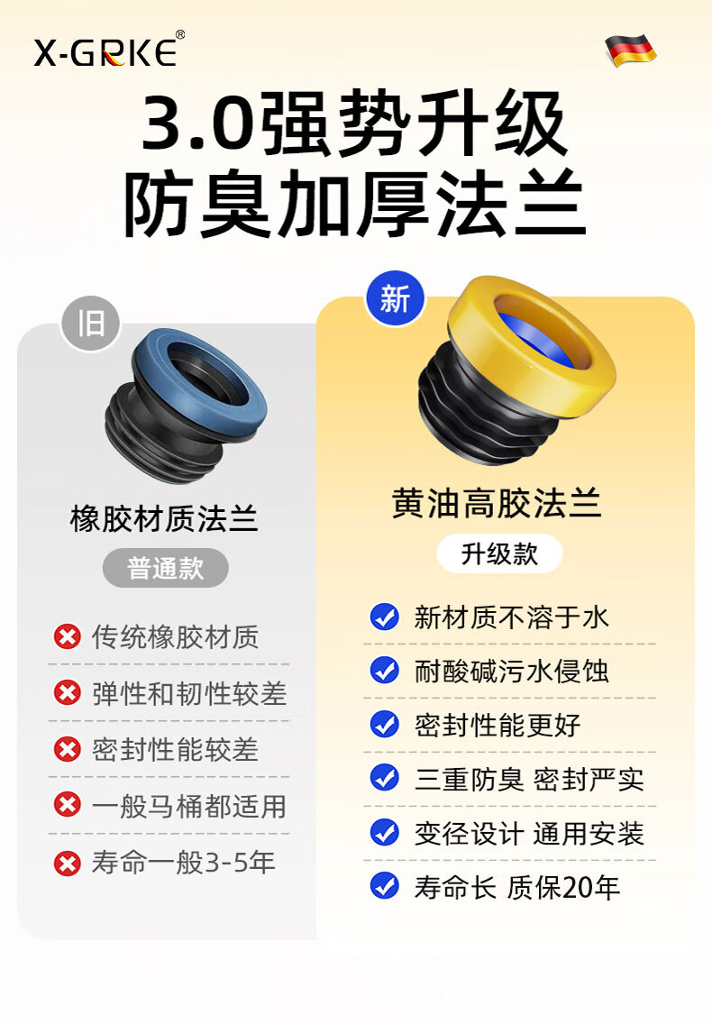 X-GRKE【德国】马桶法兰密封圈防臭防渗漏加长坐便器底座通用配件防反水 防臭马桶法兰圈【黄油款】 耐用黄油丨质保20年丨赠送美缝胶
