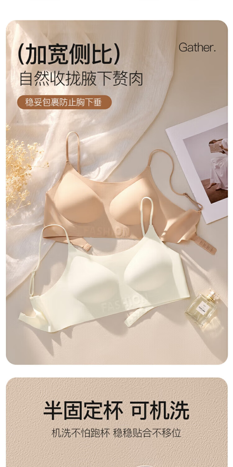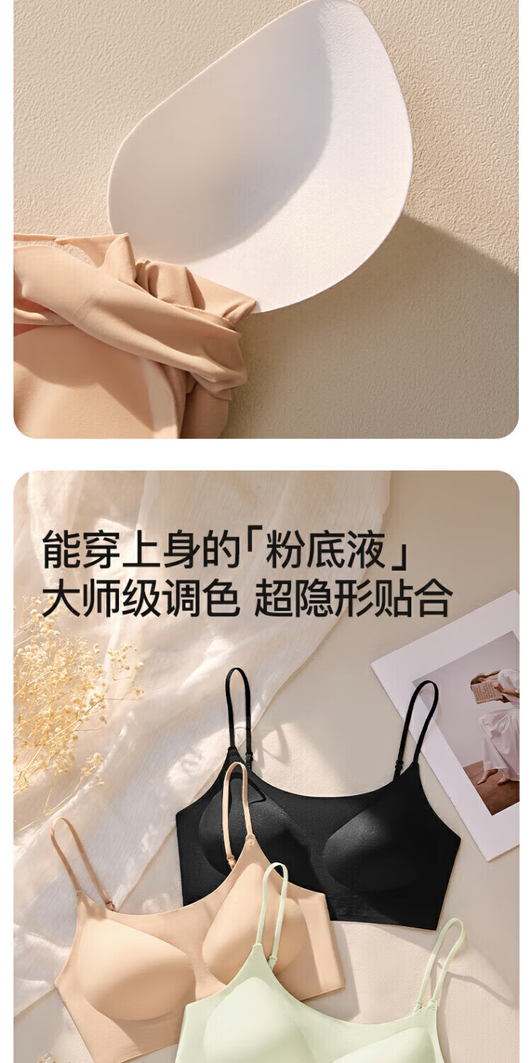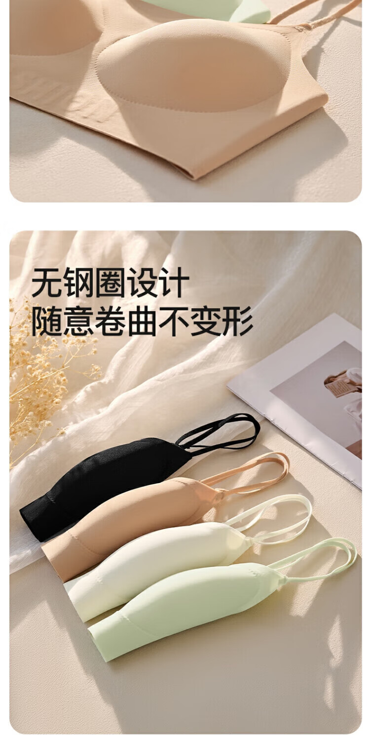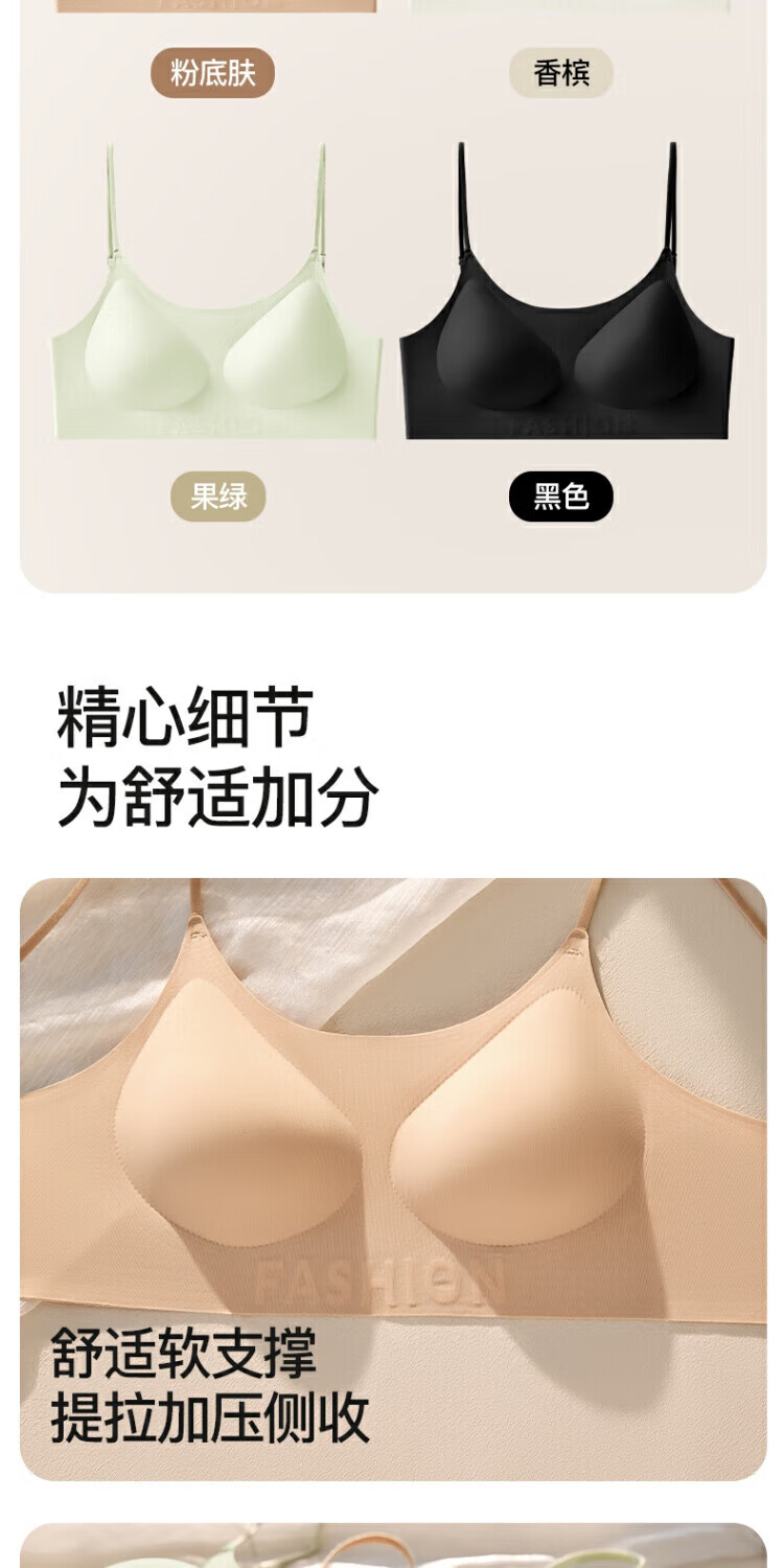 雅鹿小胸聚拢薄款美背夏季文胸内衣透气舒适无痕一片式裸感软支撑06 果绿 S 【70-90斤】