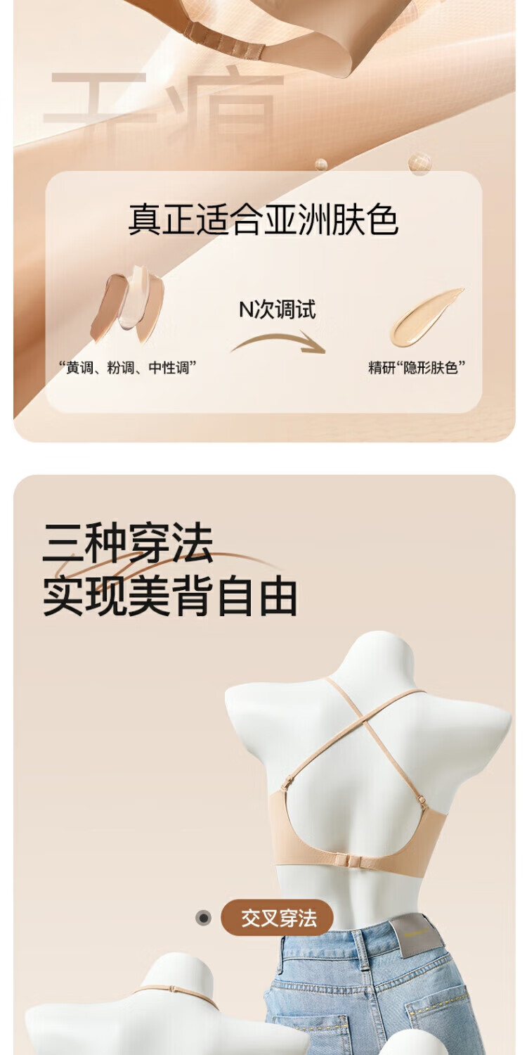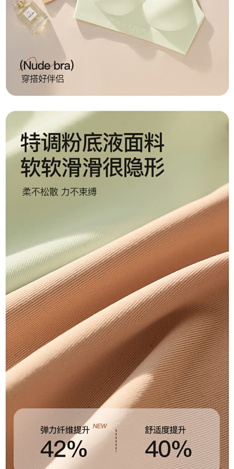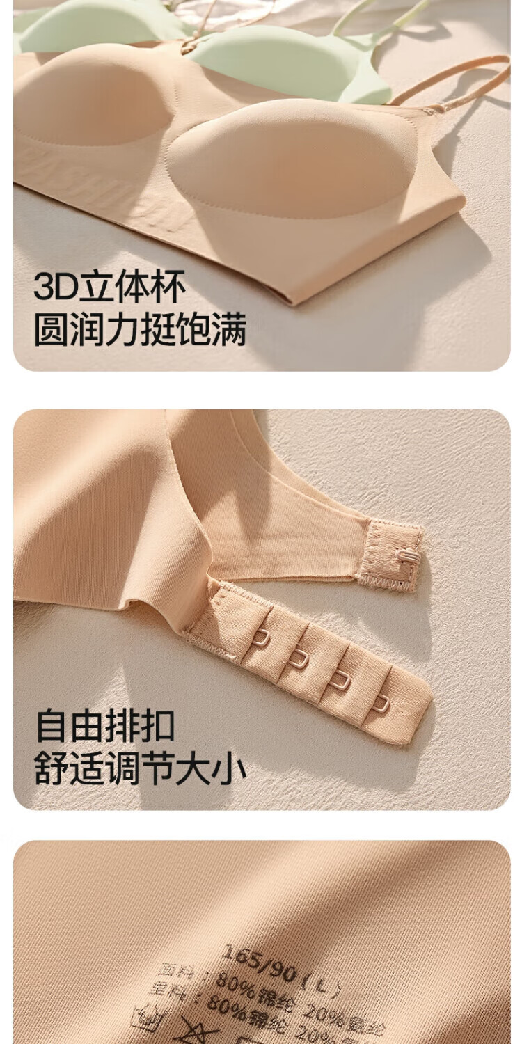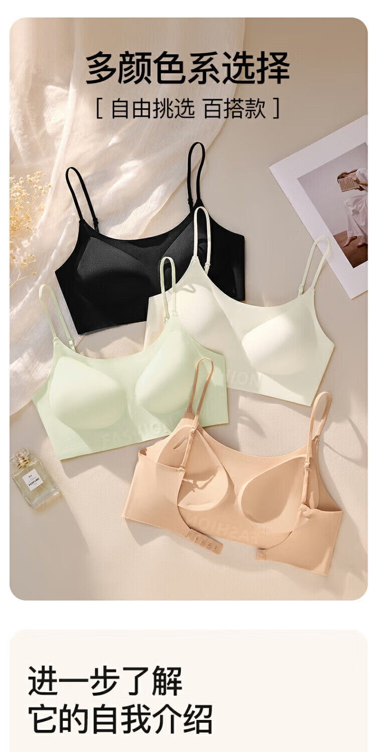 雅鹿小胸聚拢薄款美背夏季文胸内衣透气舒适无痕一片式裸感软支撑06 果绿 S 【70-90斤】