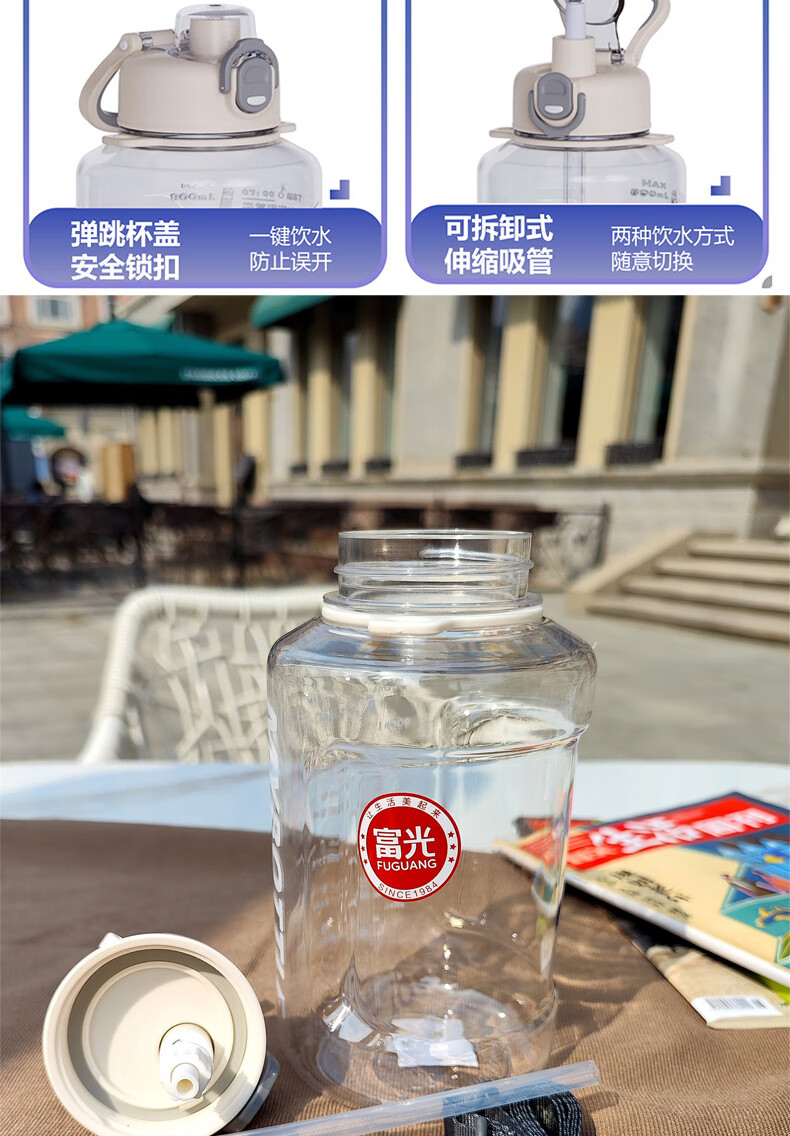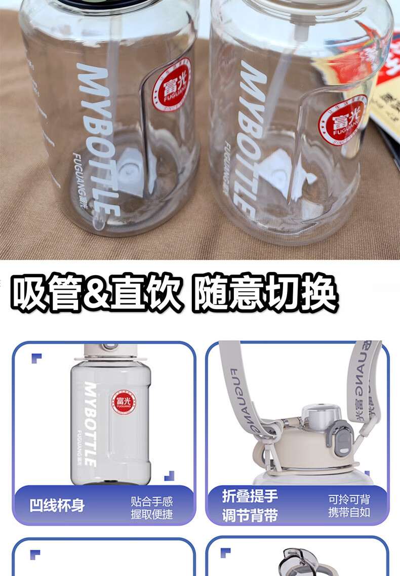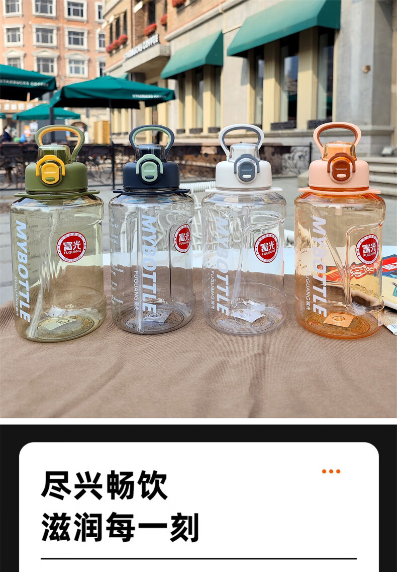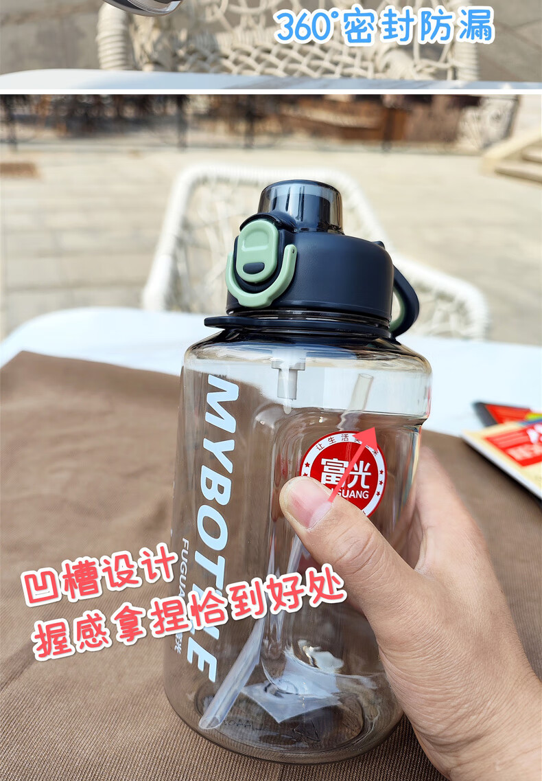 富光水杯大容量双饮太空杯耐高温食品级防摔男女运动随手吸管水壶水杯 深灰 2000ml
