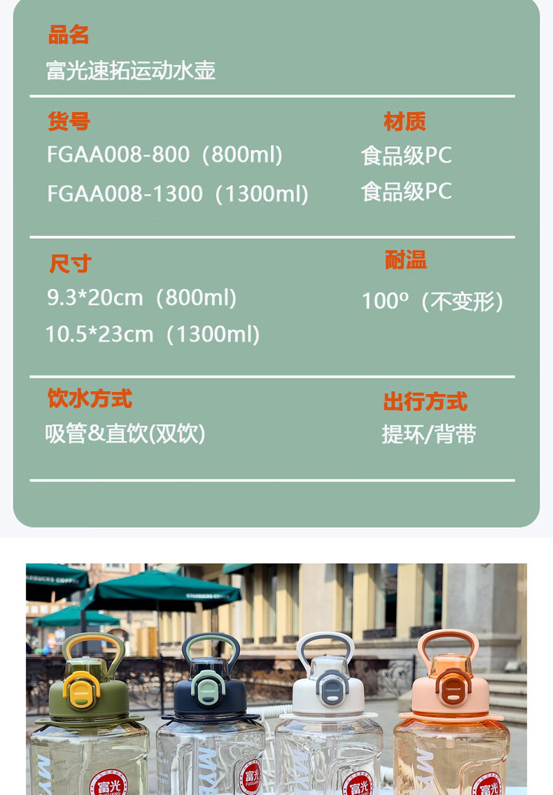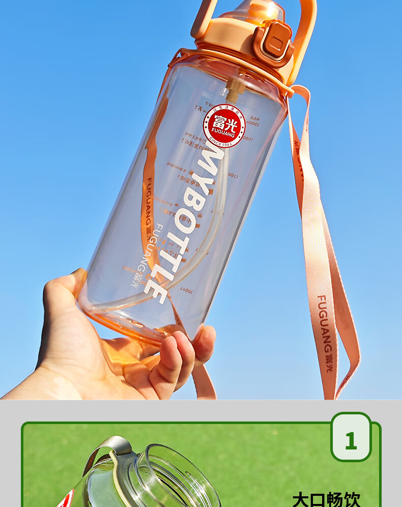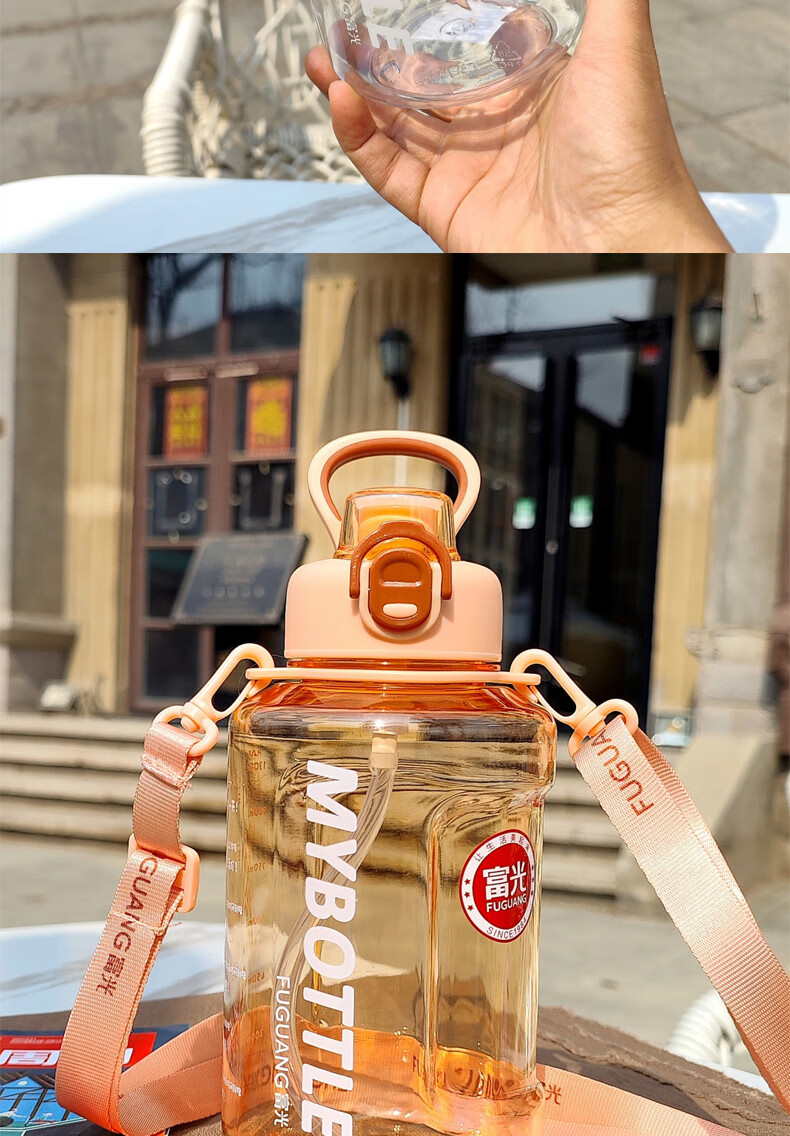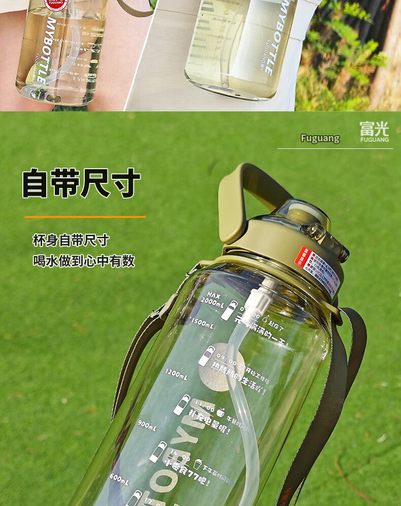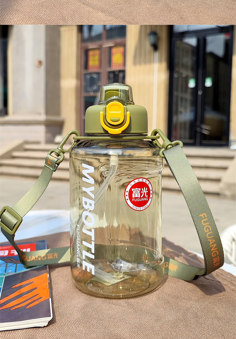 富光水杯大容量双饮太空杯耐高温食品级防摔男女运动随手吸管水壶水杯 深灰 2000ml