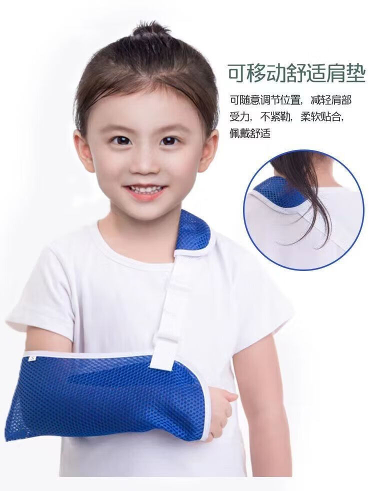 通用吊带儿童肘前臂透气手臂手腕固定带肩关节脱臼脱位固定护具护托 蓝色 小号04岁