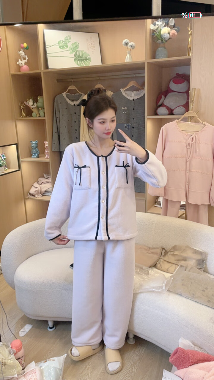 LangSha睡衣女冬季2025新款半边绒保暖法兰绒珊瑚绒加厚秋冬家居服可外穿 JR-R3040半边绒 XL 【建议120-140斤】