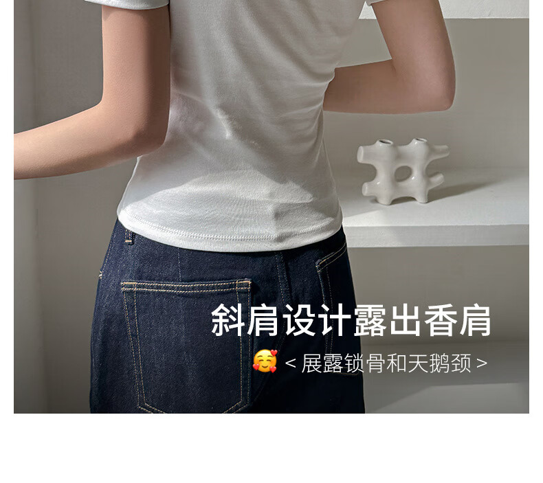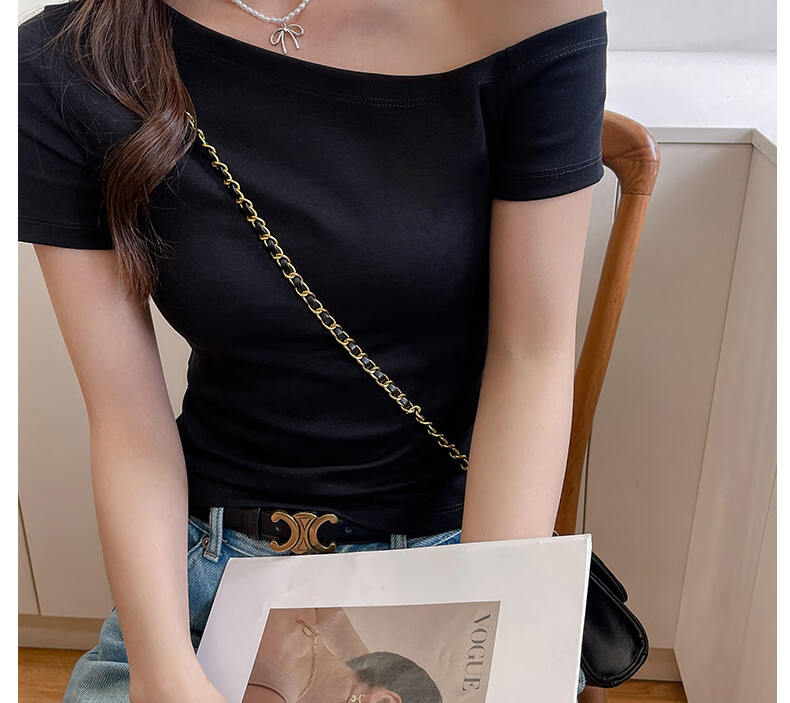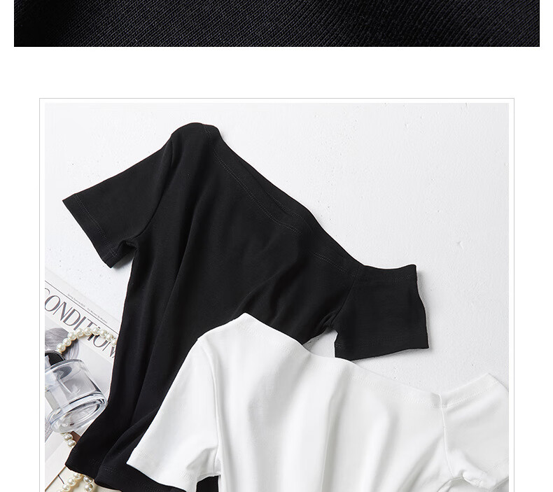 莫代尔辣妹一字领露斜肩短袖t恤女内搭修身显瘦打底弹力上衣T恤衫 黑色 (莫代尔) M (适合体重95-115斤