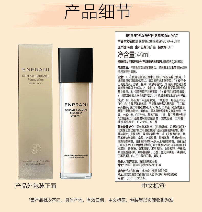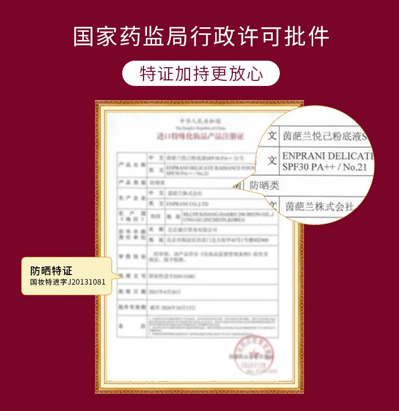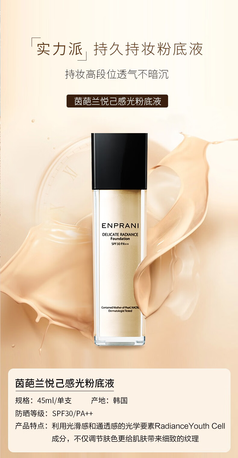茵葩兰(ENPRANI) 悦己粉底液45ml亮肤色防晒遮瑕SPF30 PA++21号韩国 粉底+蕾婷隔离霜