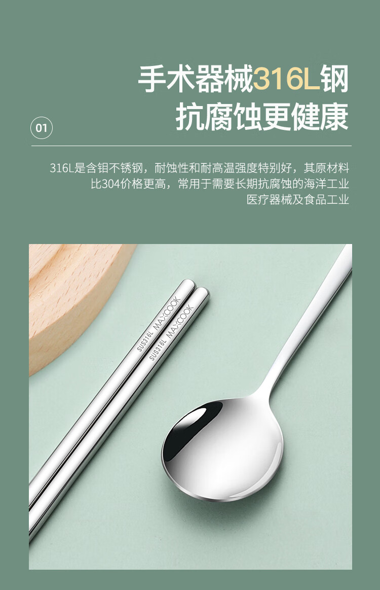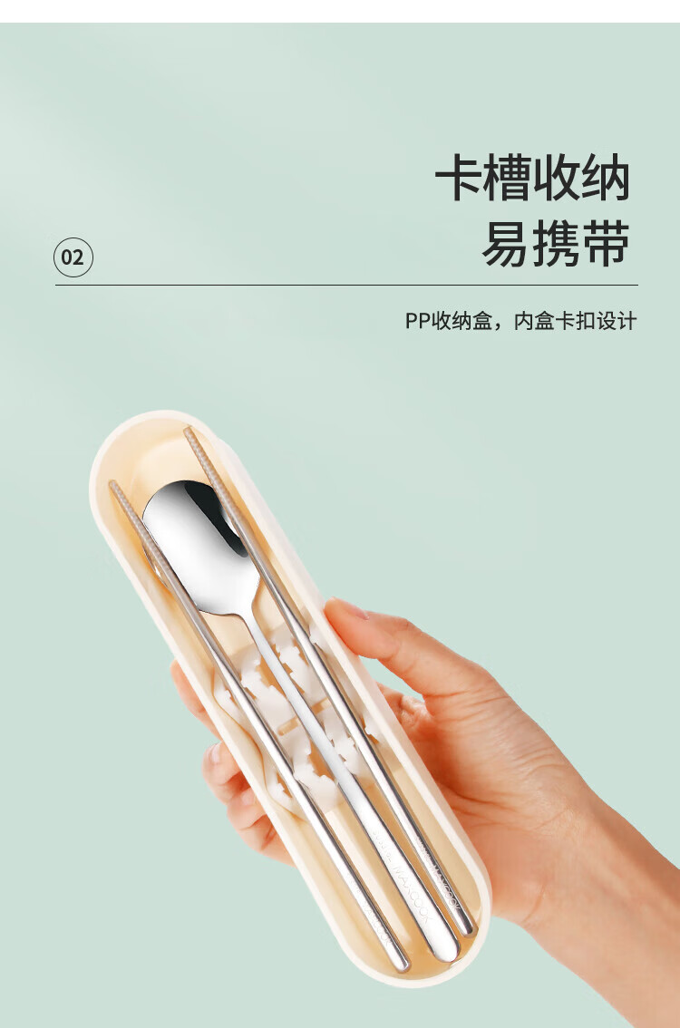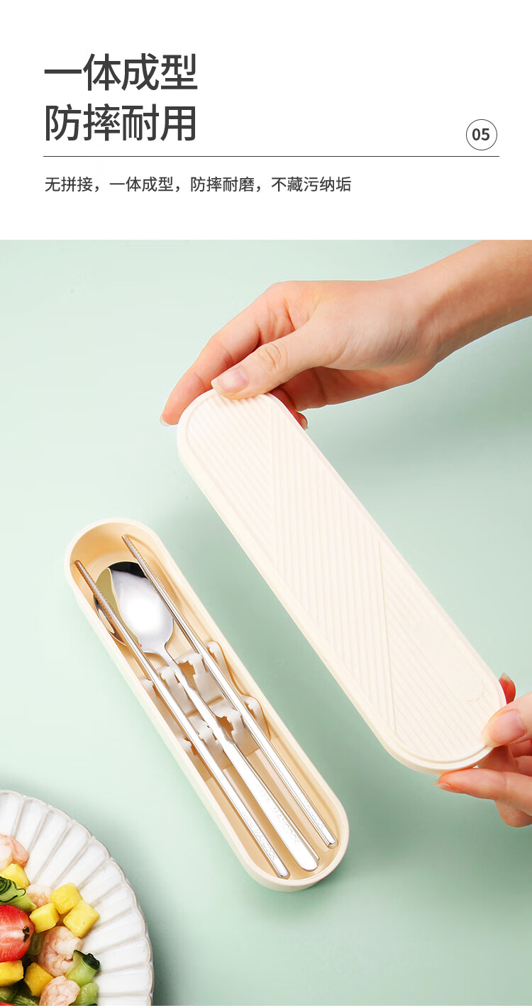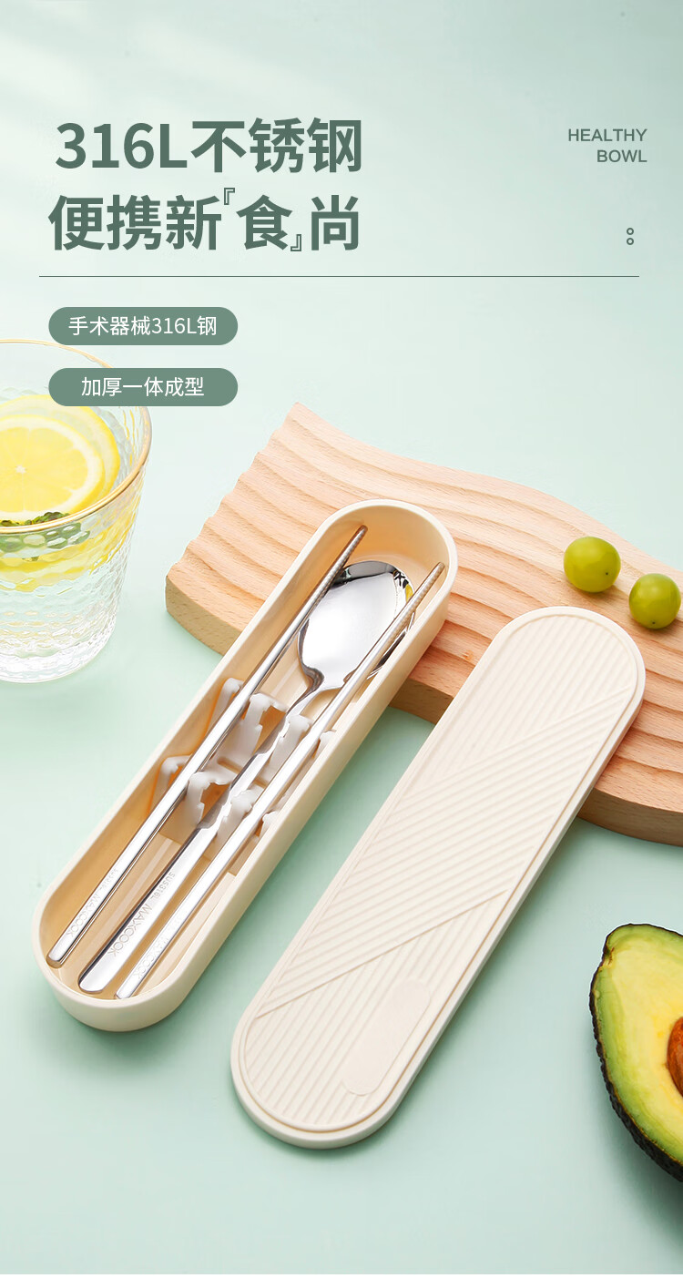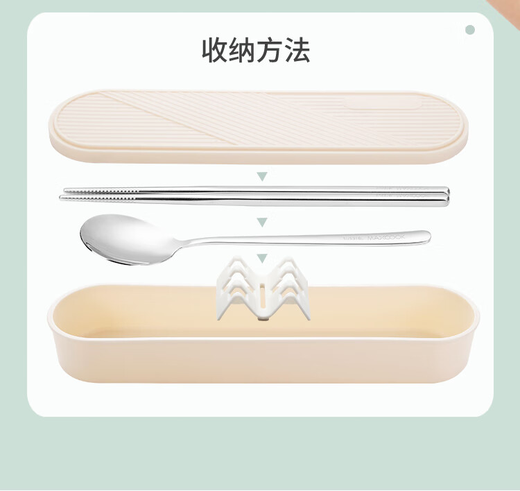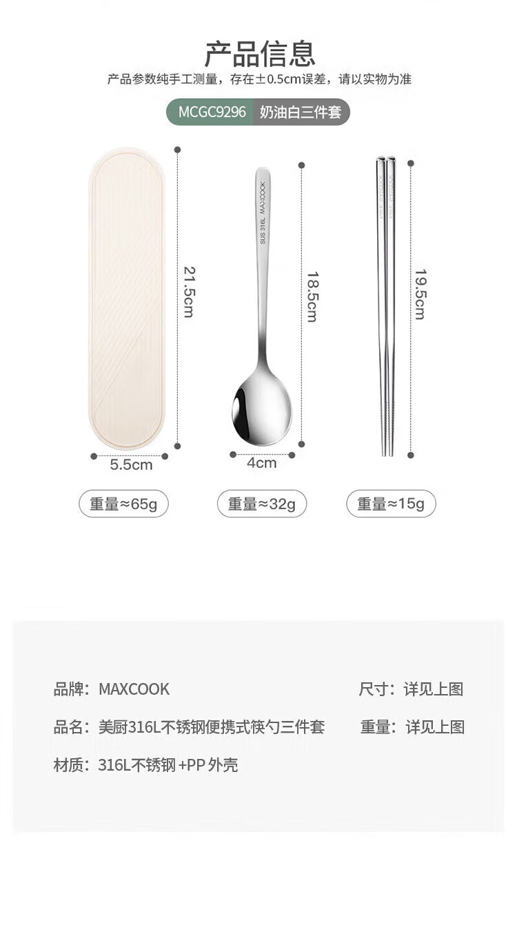 美厨(maxcook)316L不锈钢筷子勺子餐具套装 便携式筷勺三件套 奶油白MCGC9296