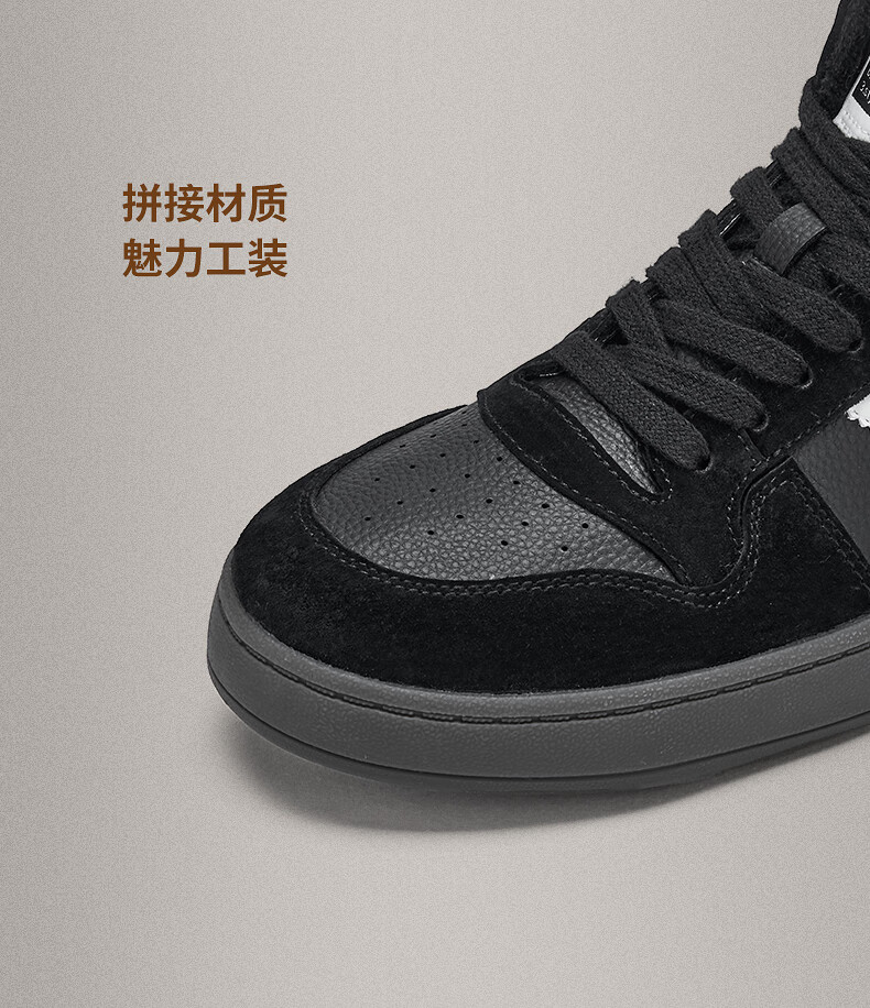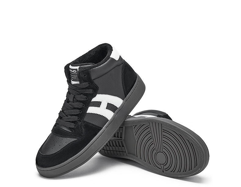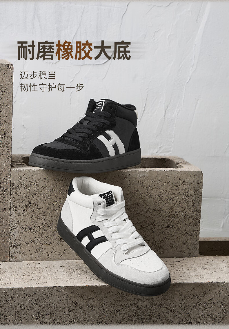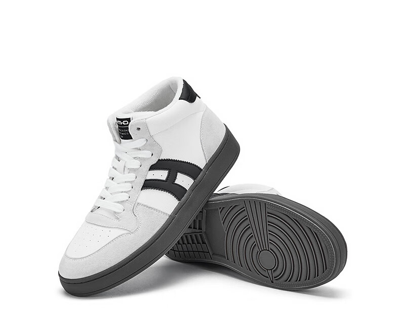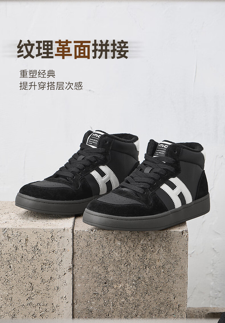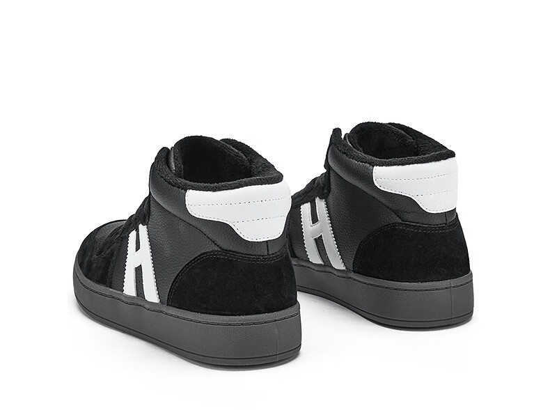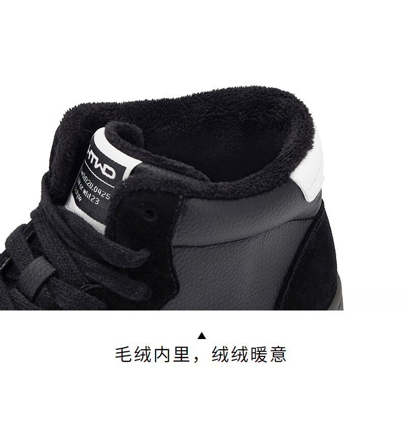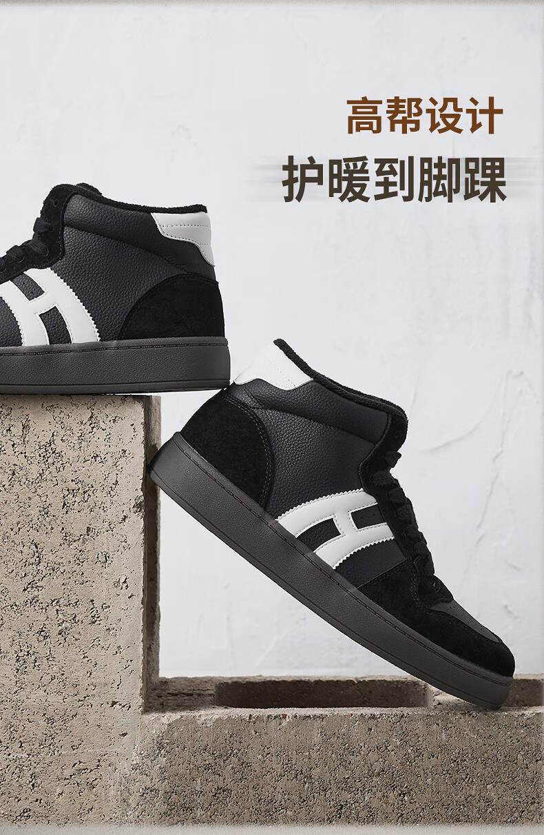 热风男鞋2025年冬季新款男士加绒增高厚底高帮鞋保暖百搭休闲鞋子 19黑白 38