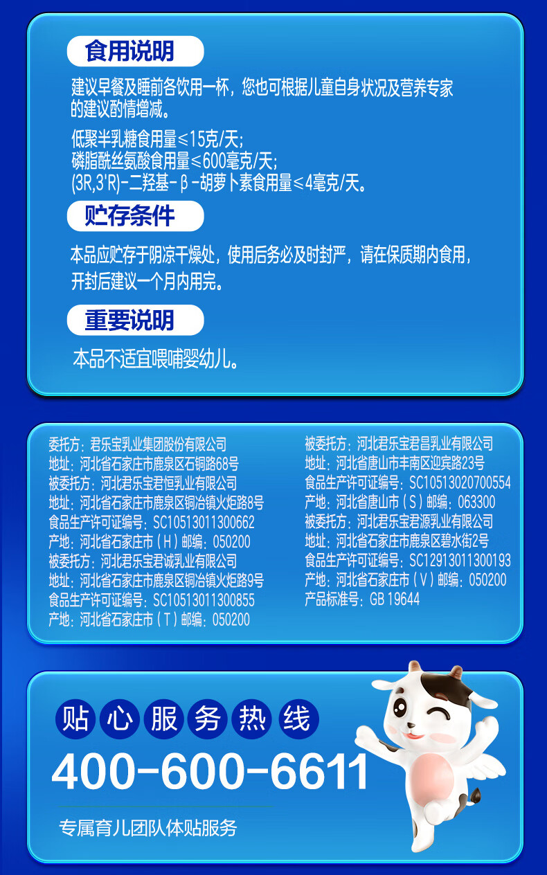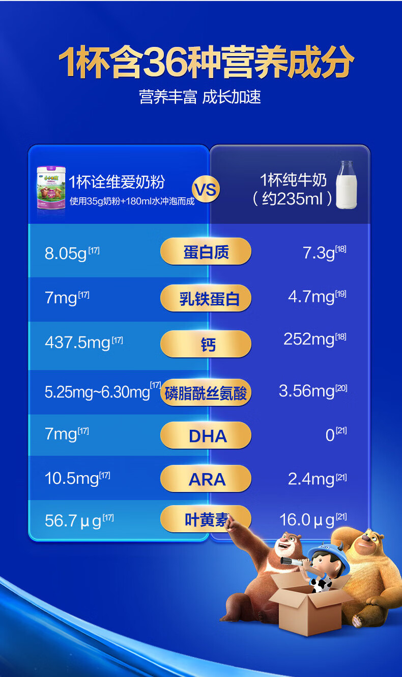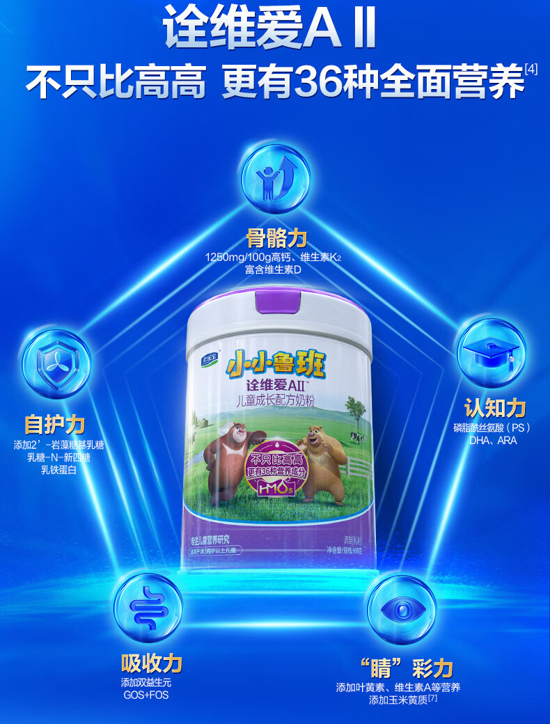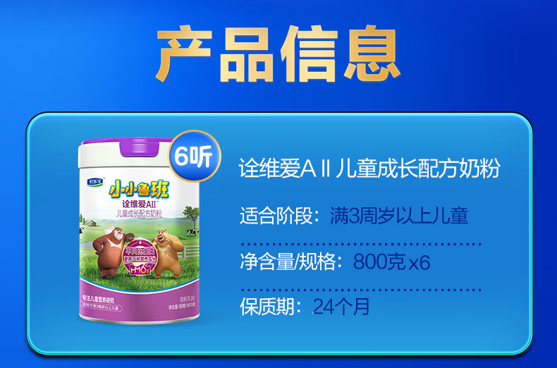 君乐宝小小鲁班诠维爱AII儿童配方奶粉4段(3周岁以上)800g*6 乳铁蛋白