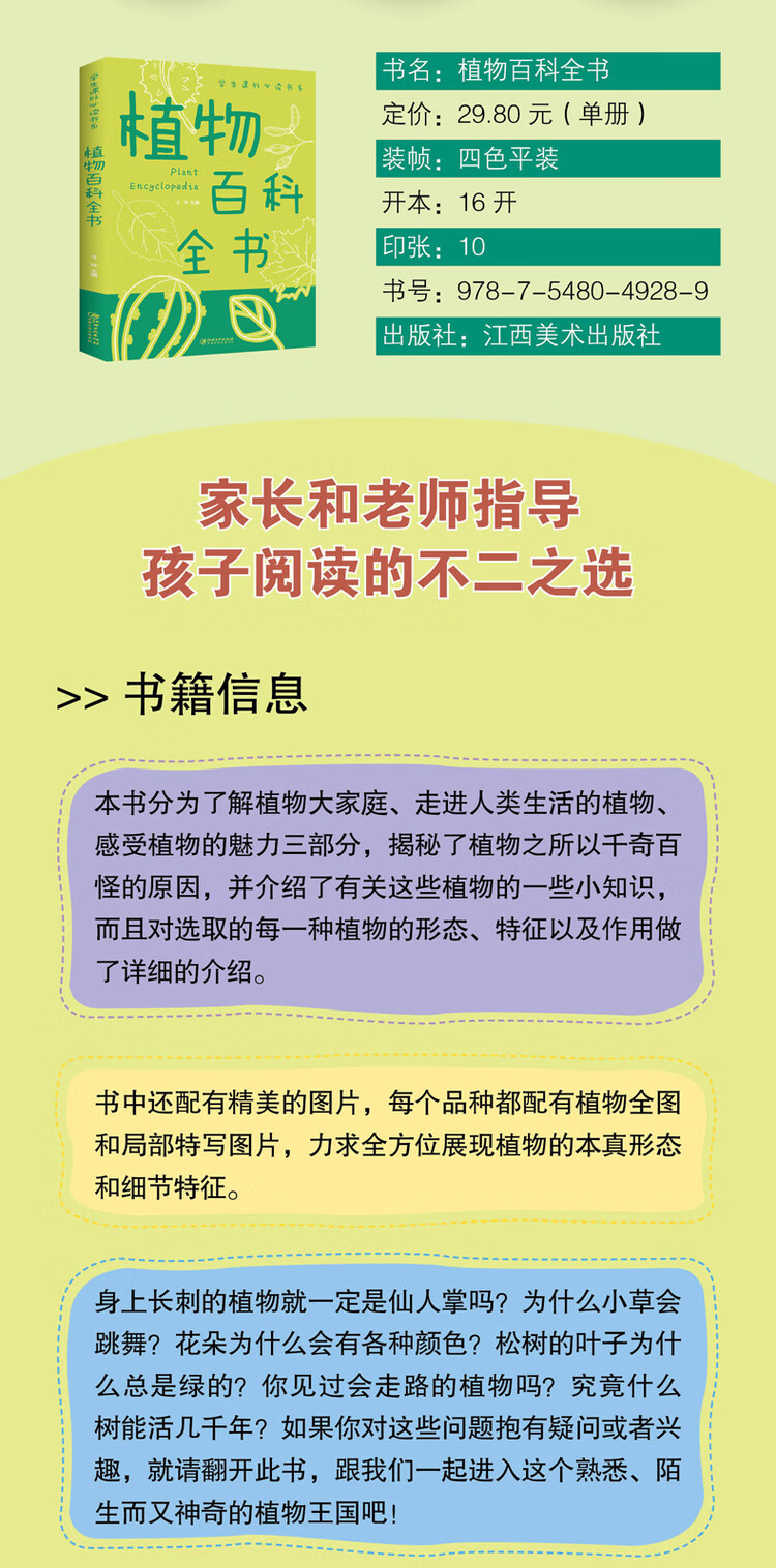 植物百科全书彩图版学生课外书科普类中小学生6-8-10-16岁课外书籍一二三四五六年级青少年科学探索书