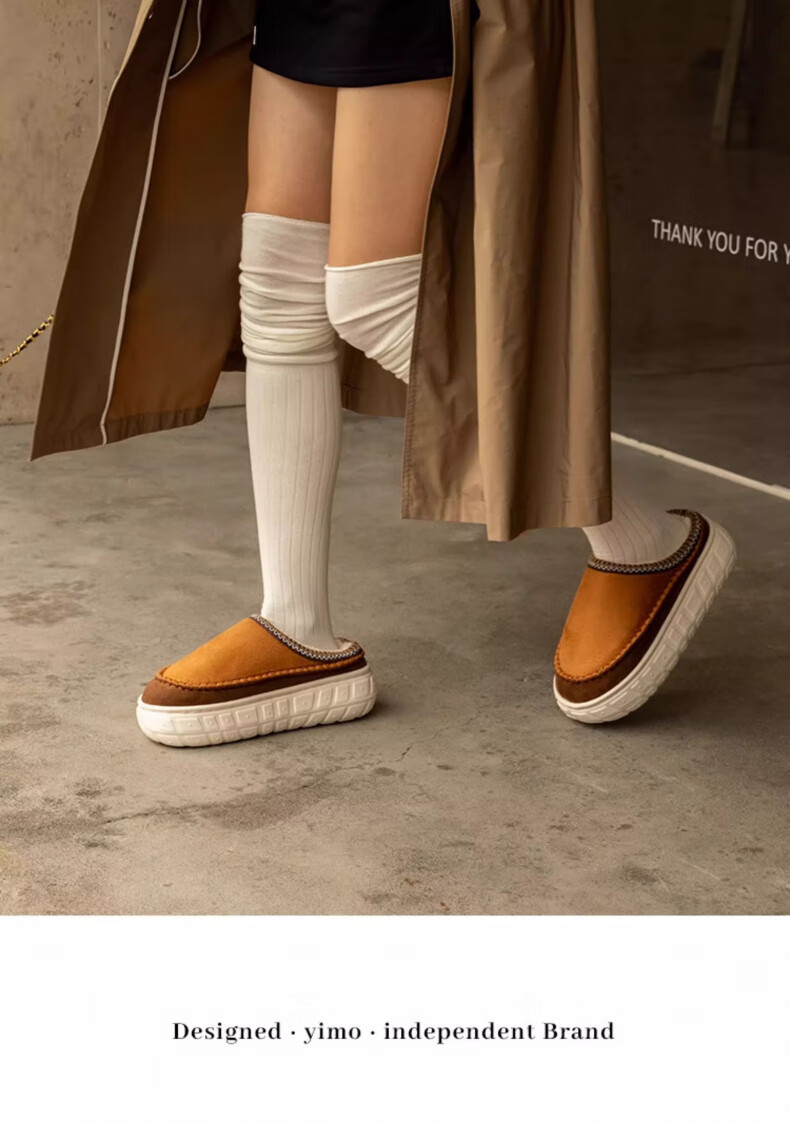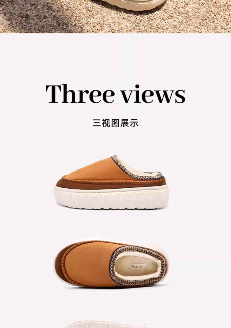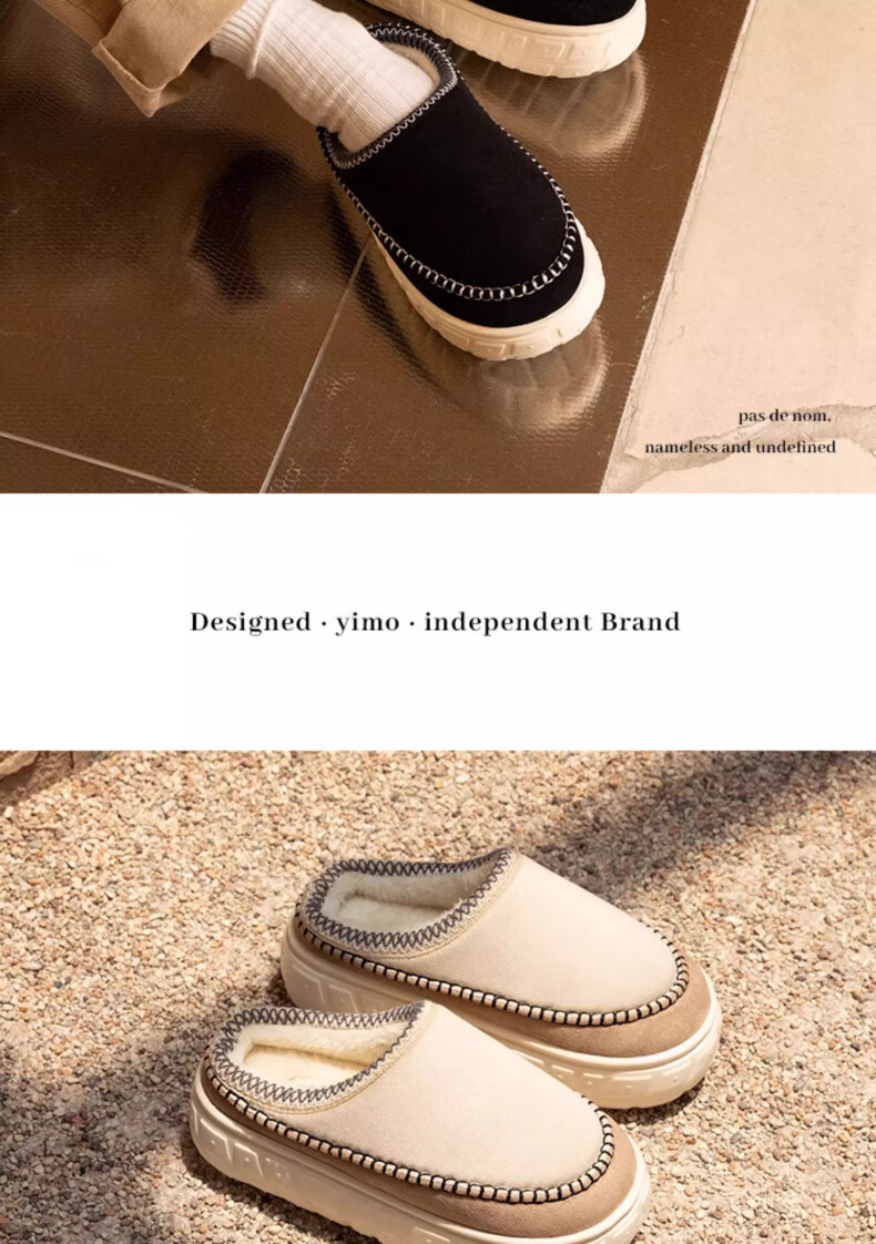 DEATKN德国高端秋季新品配色绒面保暖高密绒棉拖鞋女士室内防滑牛筋底难 樱桃红 35-36 36_37_(适合脚)