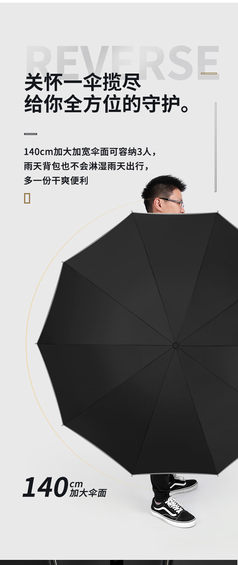DEATKN32骨全自动雨伞反向折叠超大号男女加固抗风遮阳防晒晴雨两用 反向130CM防雨(2-3人)黑色 24骨