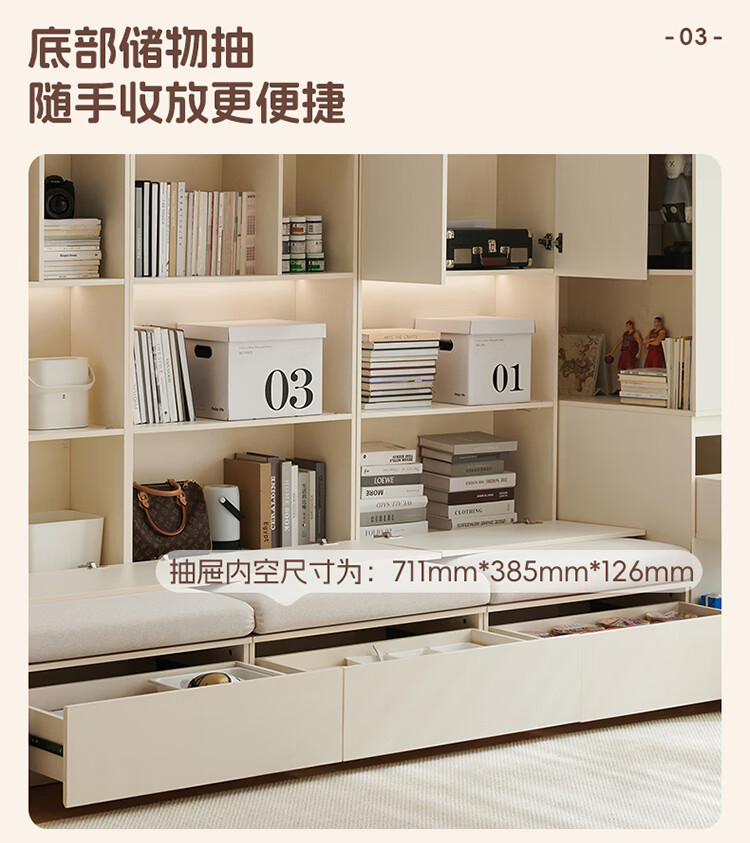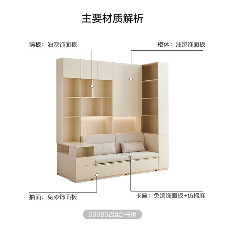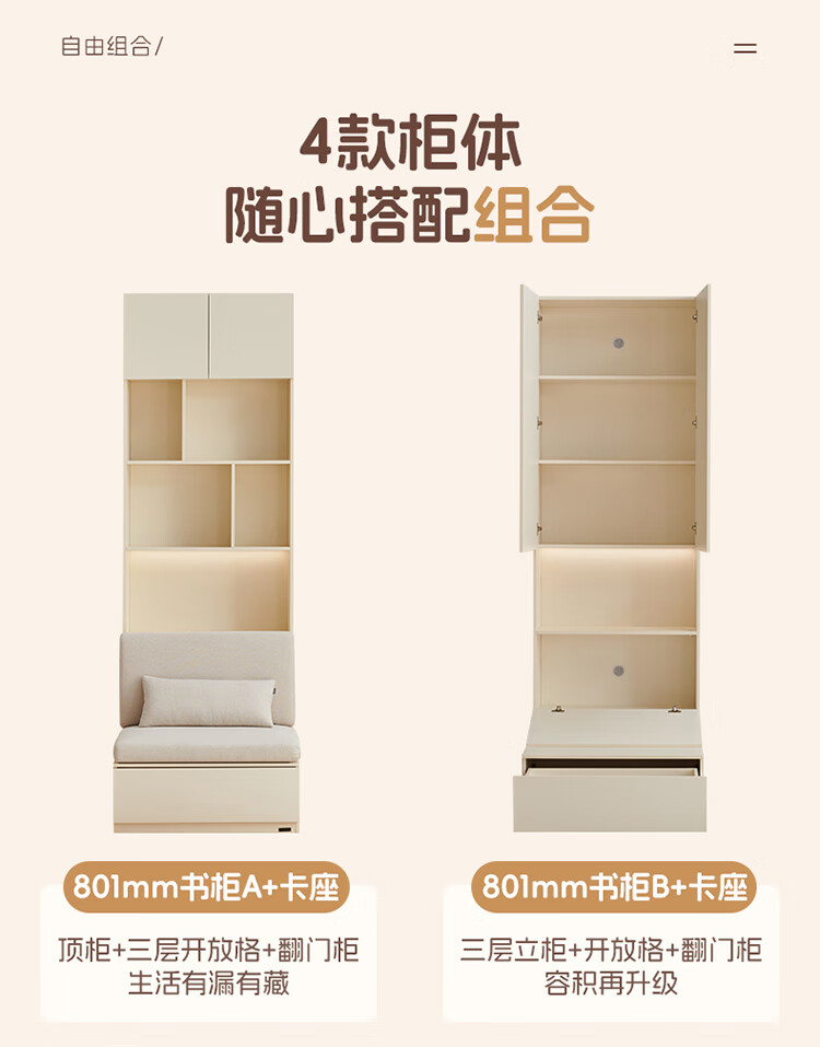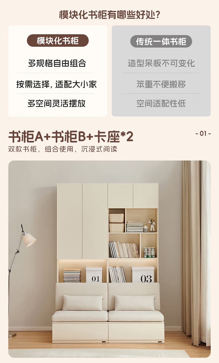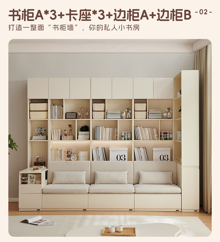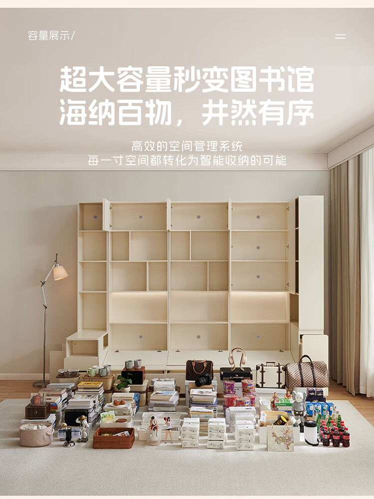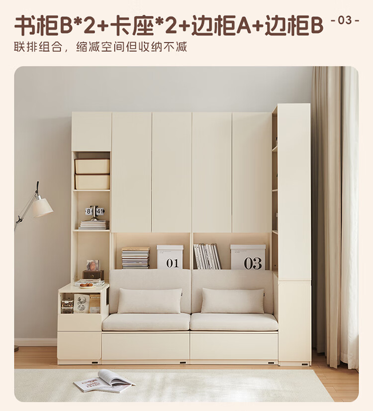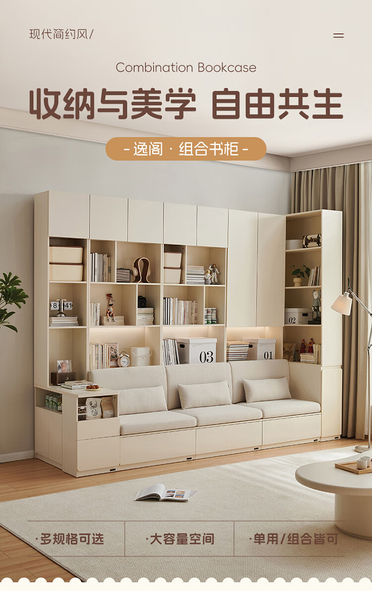 全友家居现代简约风书架卡座一体家用橱柜收纳储物柜展示柜置物架 【米白】书柜A+书柜B+卡座*2