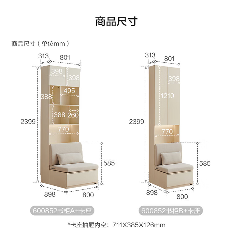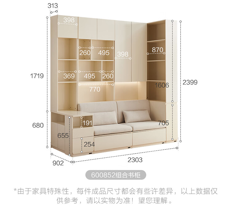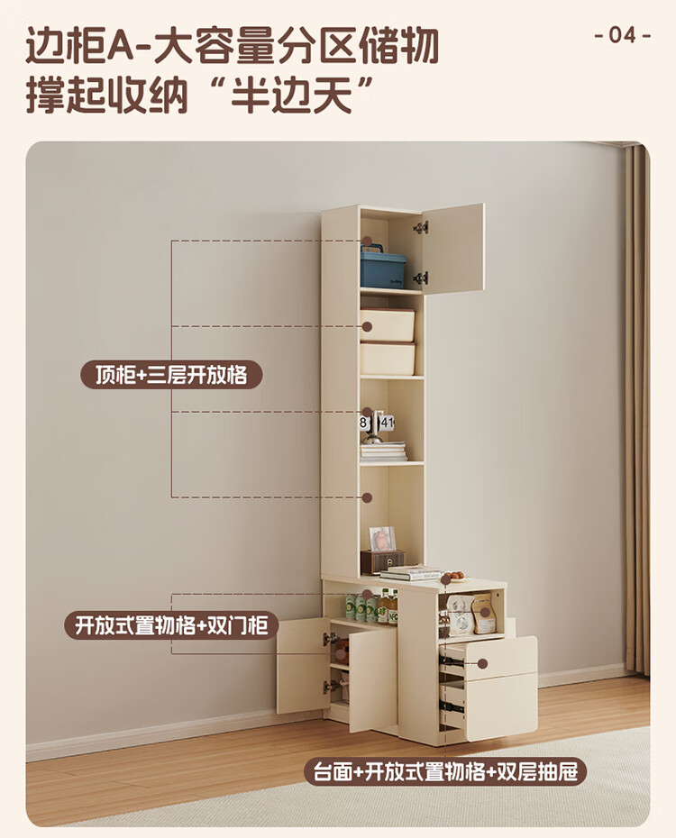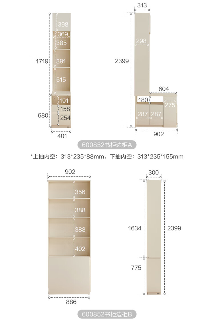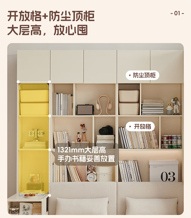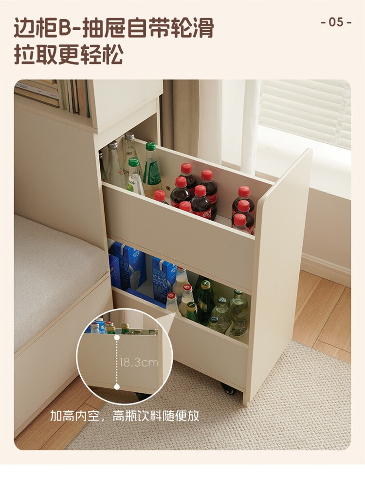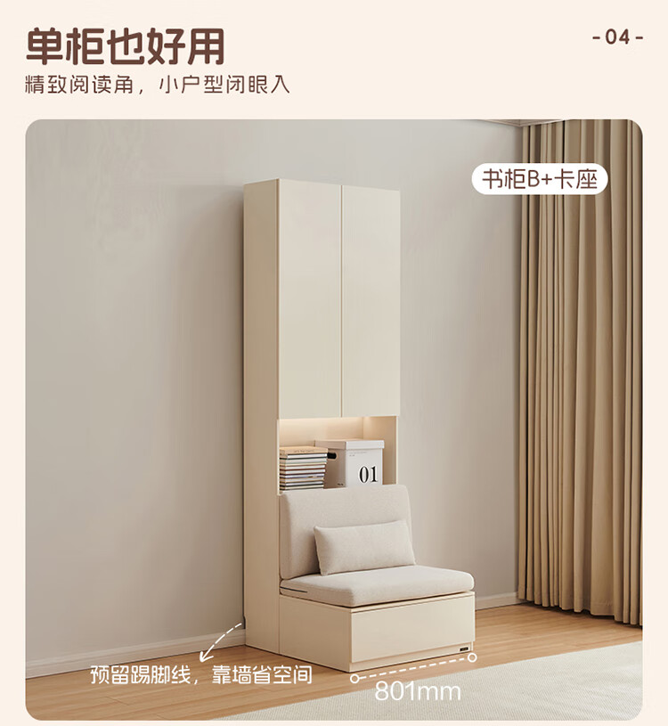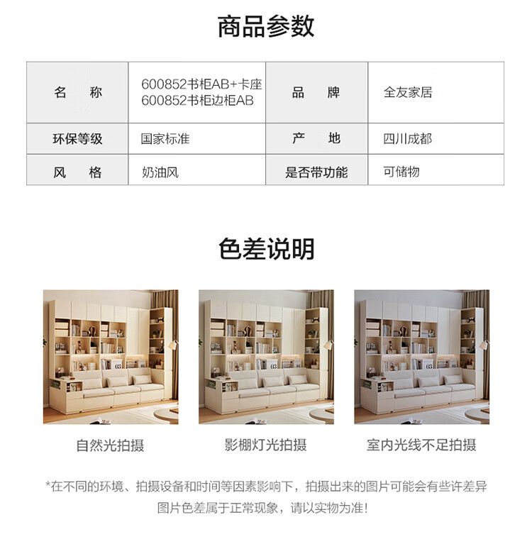 全友家居现代简约风书架卡座一体家用橱柜收纳储物柜展示柜置物架 【米白】书柜A+书柜B+卡座*2