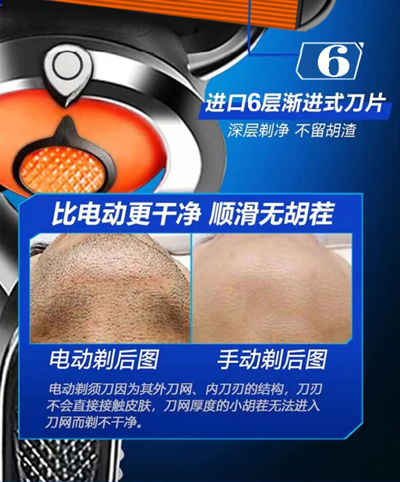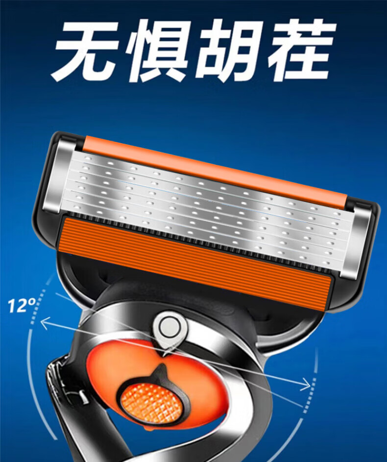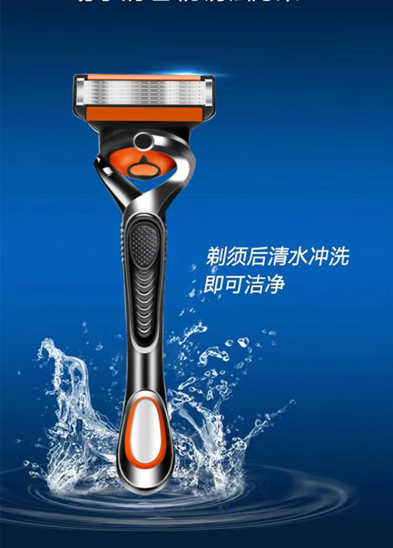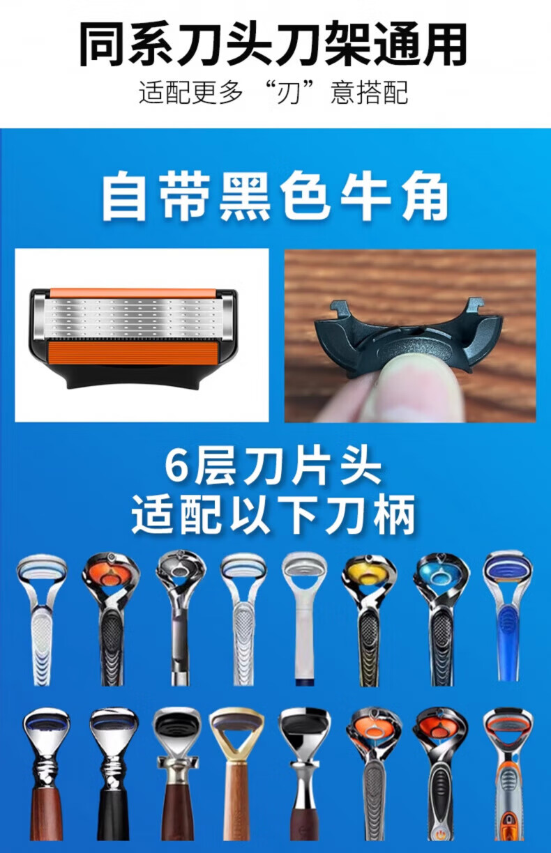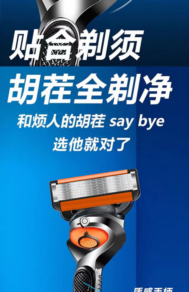 AILUKI日本2025款手动剃胡刀男6层防刮伤刀片刀头刮胡刀通用5层刀柄架 1金属刀柄+6层8个刀片