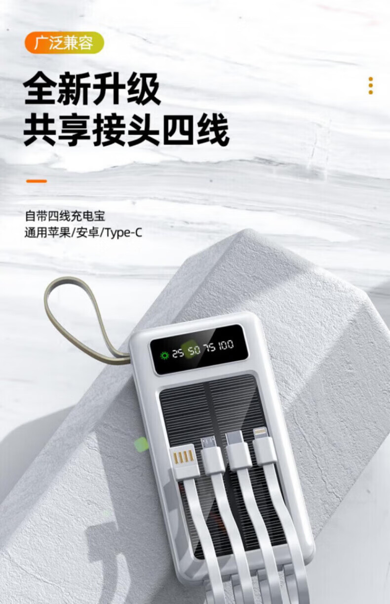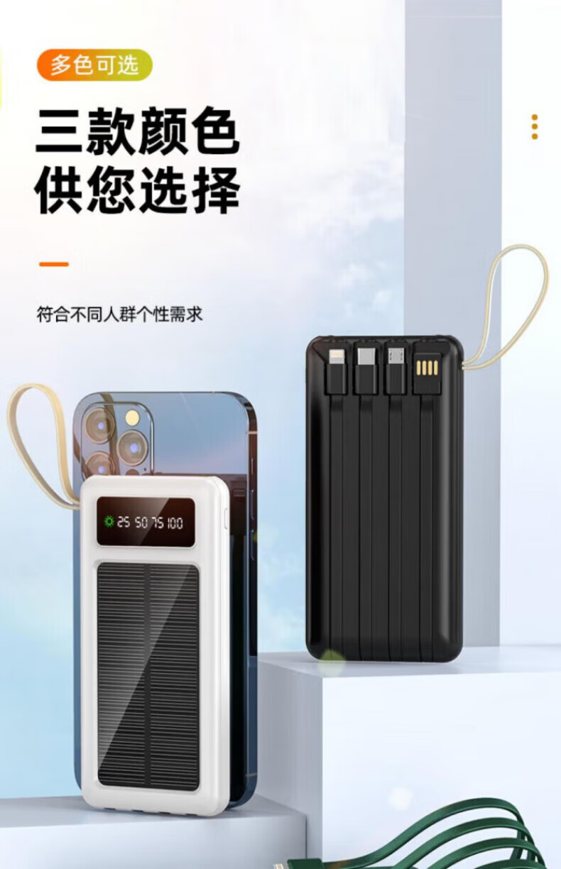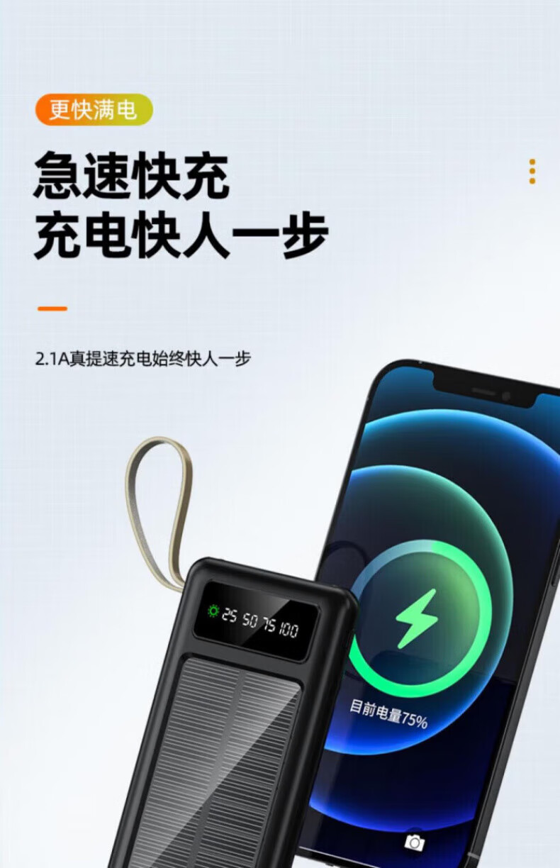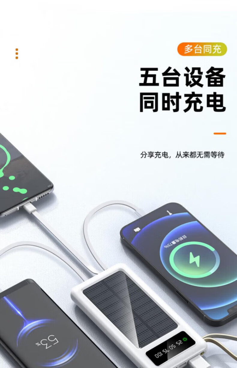 DEATKN德国高端3c认证太阳能充电宝50000毫安大容量移动电源闪充快 阳光白[90天试用+五年换新] 20000Ah