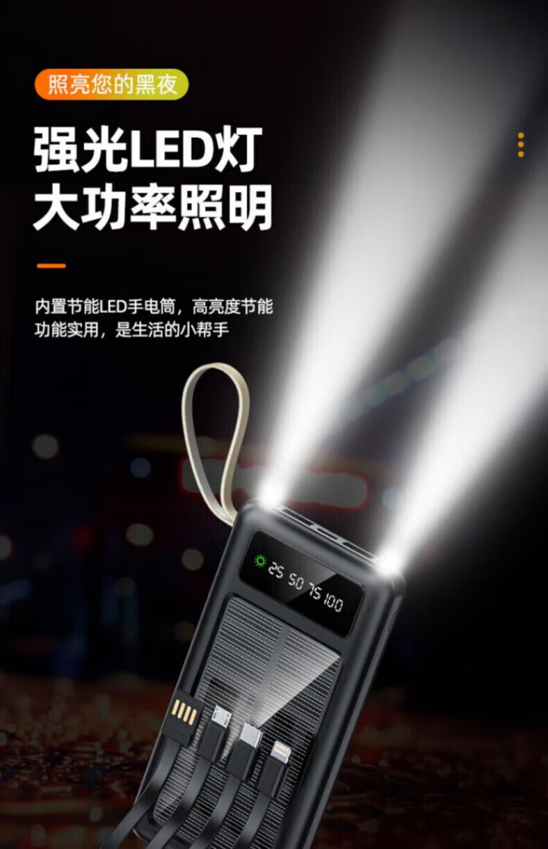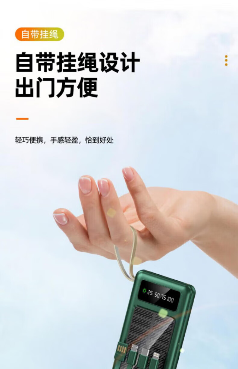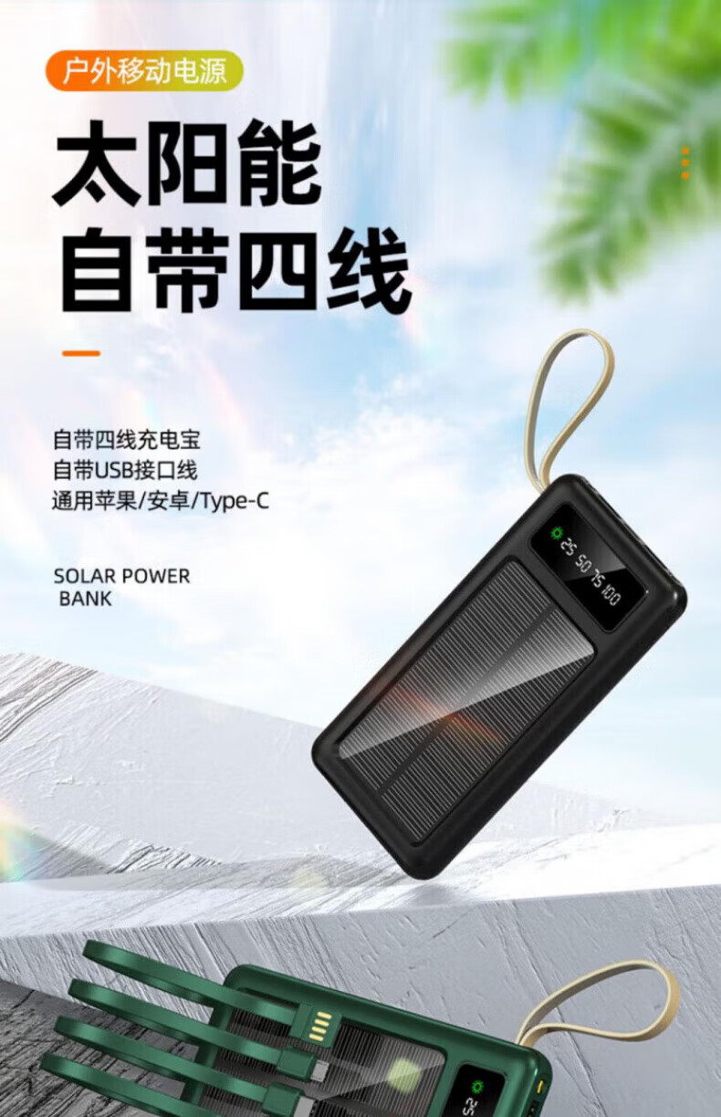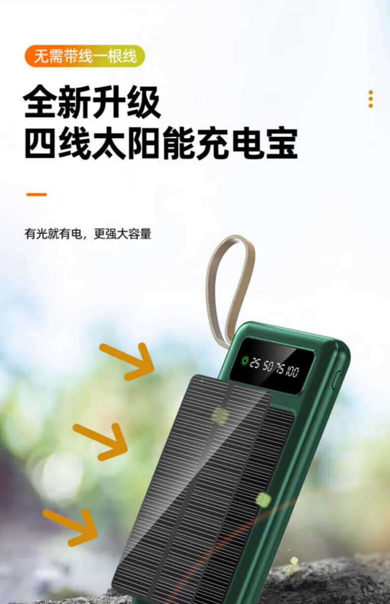 DEATKN德国高端3c认证太阳能充电宝50000毫安大容量移动电源闪充快 阳光白[90天试用+五年换新] 20000Ah