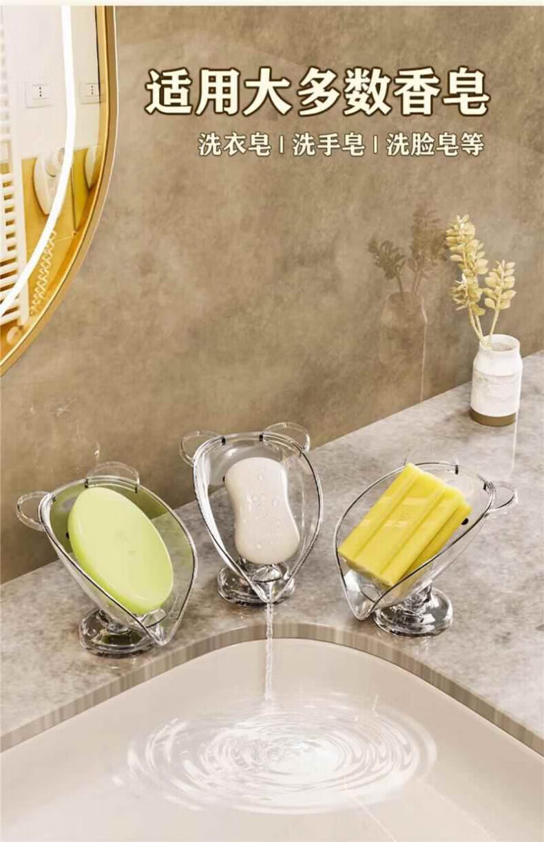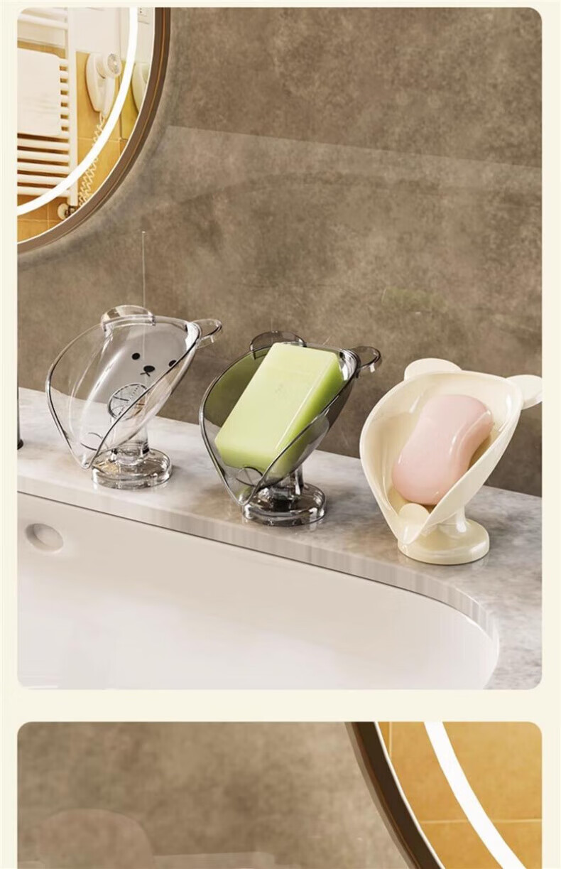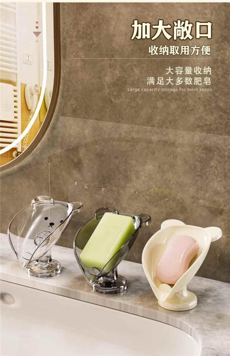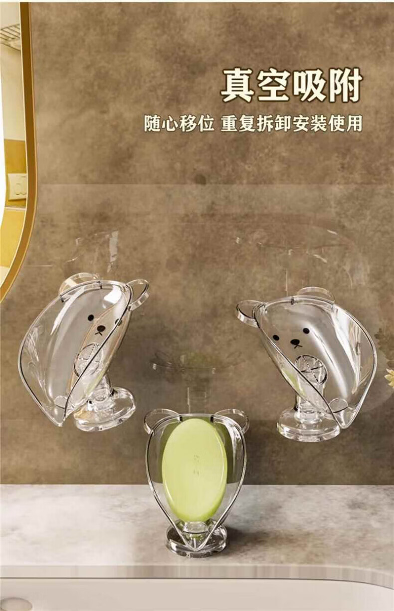 AILUKI日本肥皂盒沥水高颜值吸盘香皂盒免打孔浴室置物架化妆室皂碟轻奢 2个装丨透明色-小熊肥皂盒倾斜沥