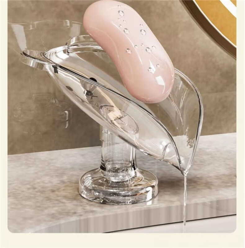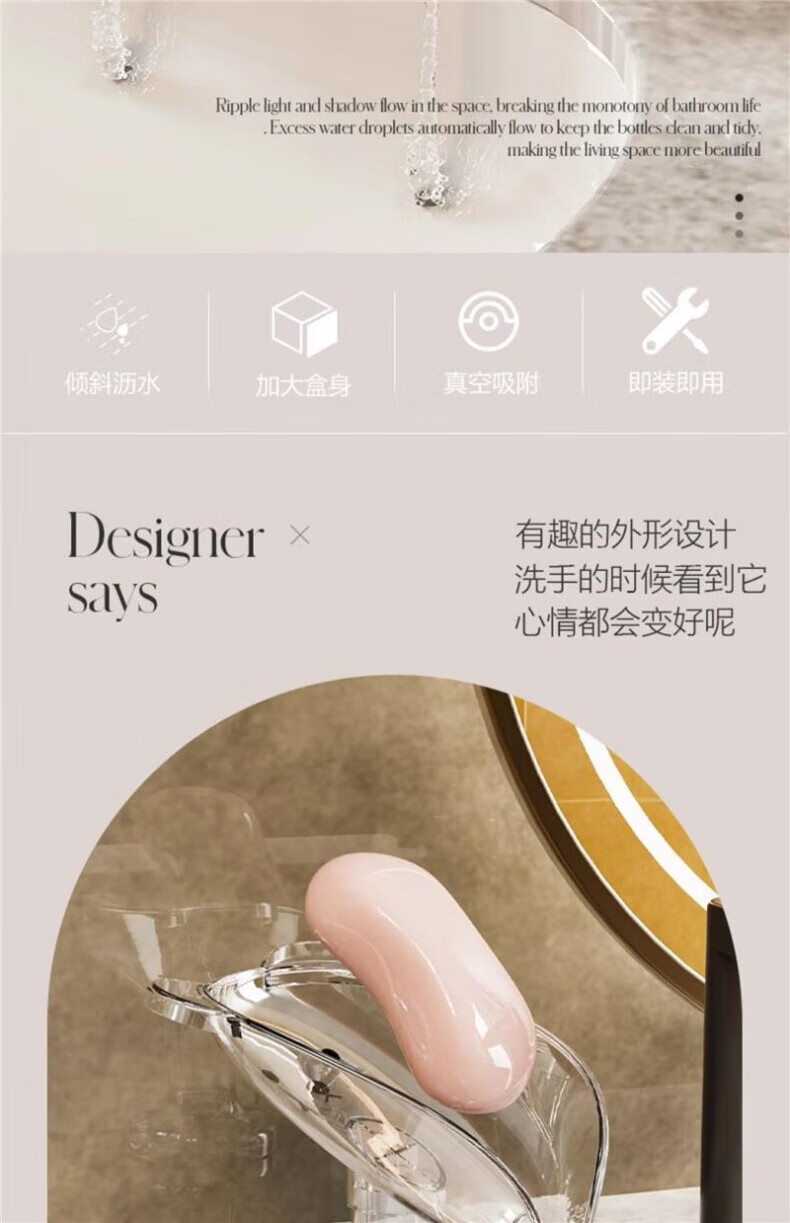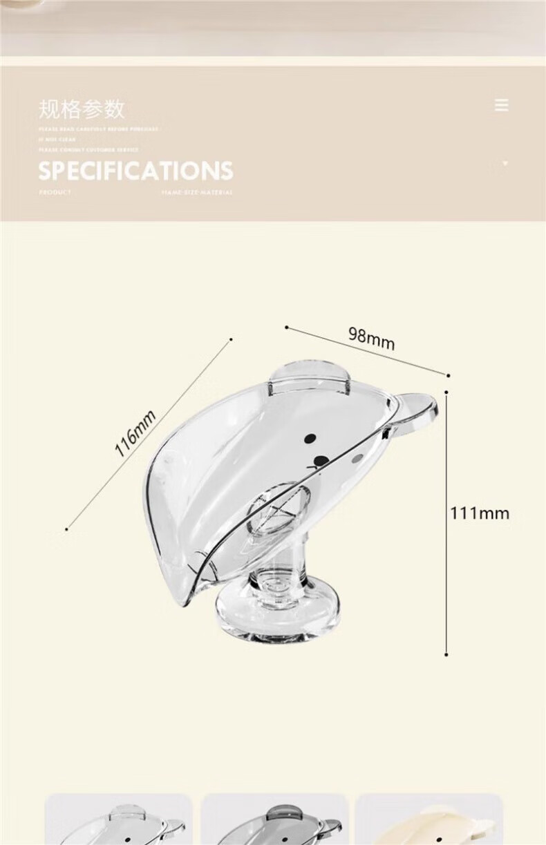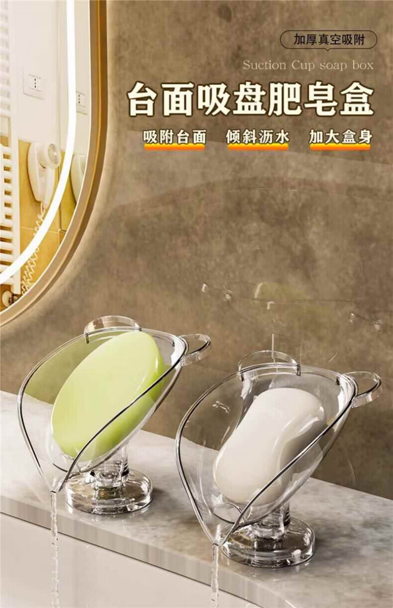 AILUKI日本肥皂盒沥水高颜值吸盘香皂盒免打孔浴室置物架化妆室皂碟轻奢 2个装丨透明色-小熊肥皂盒倾斜沥