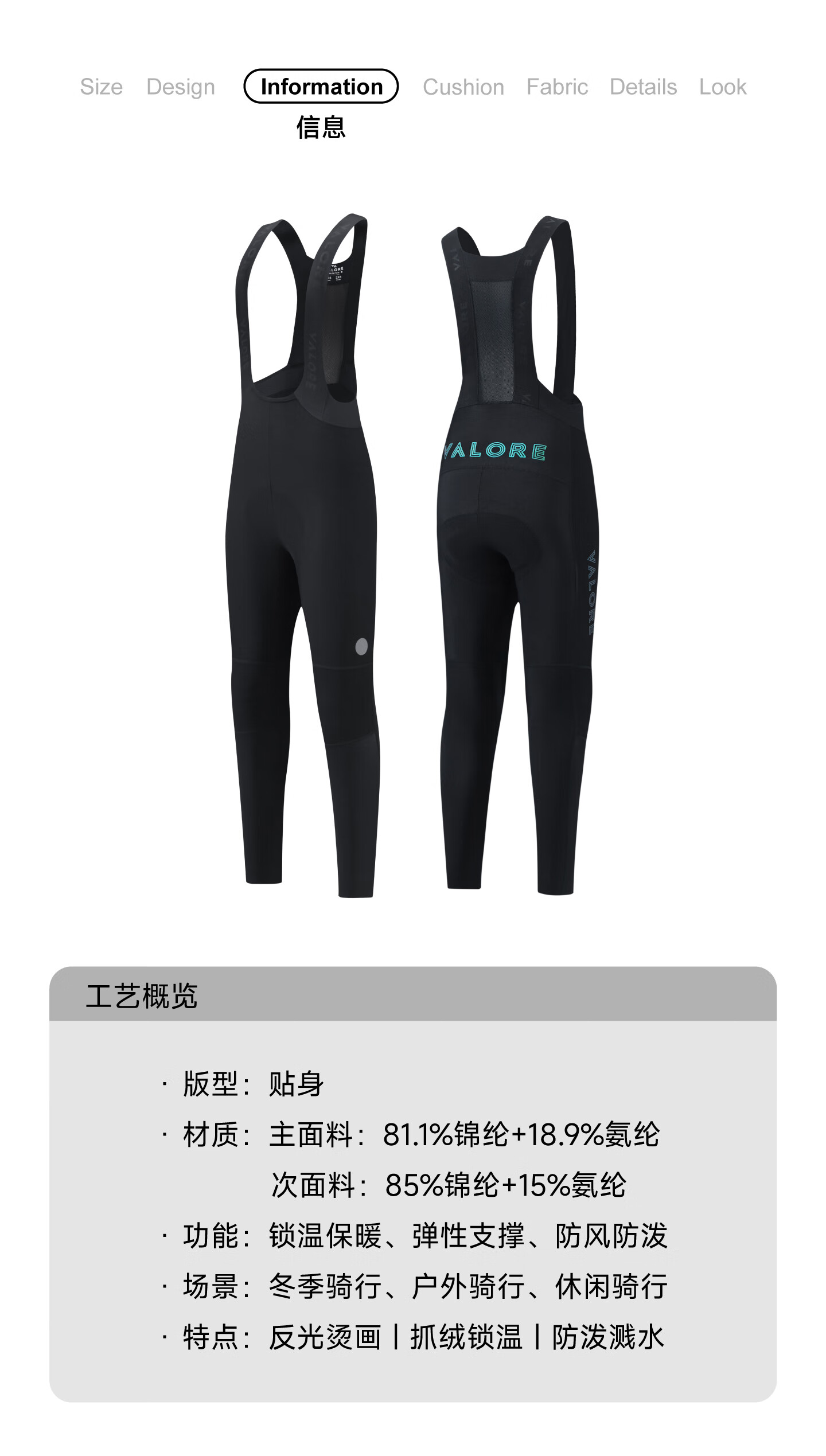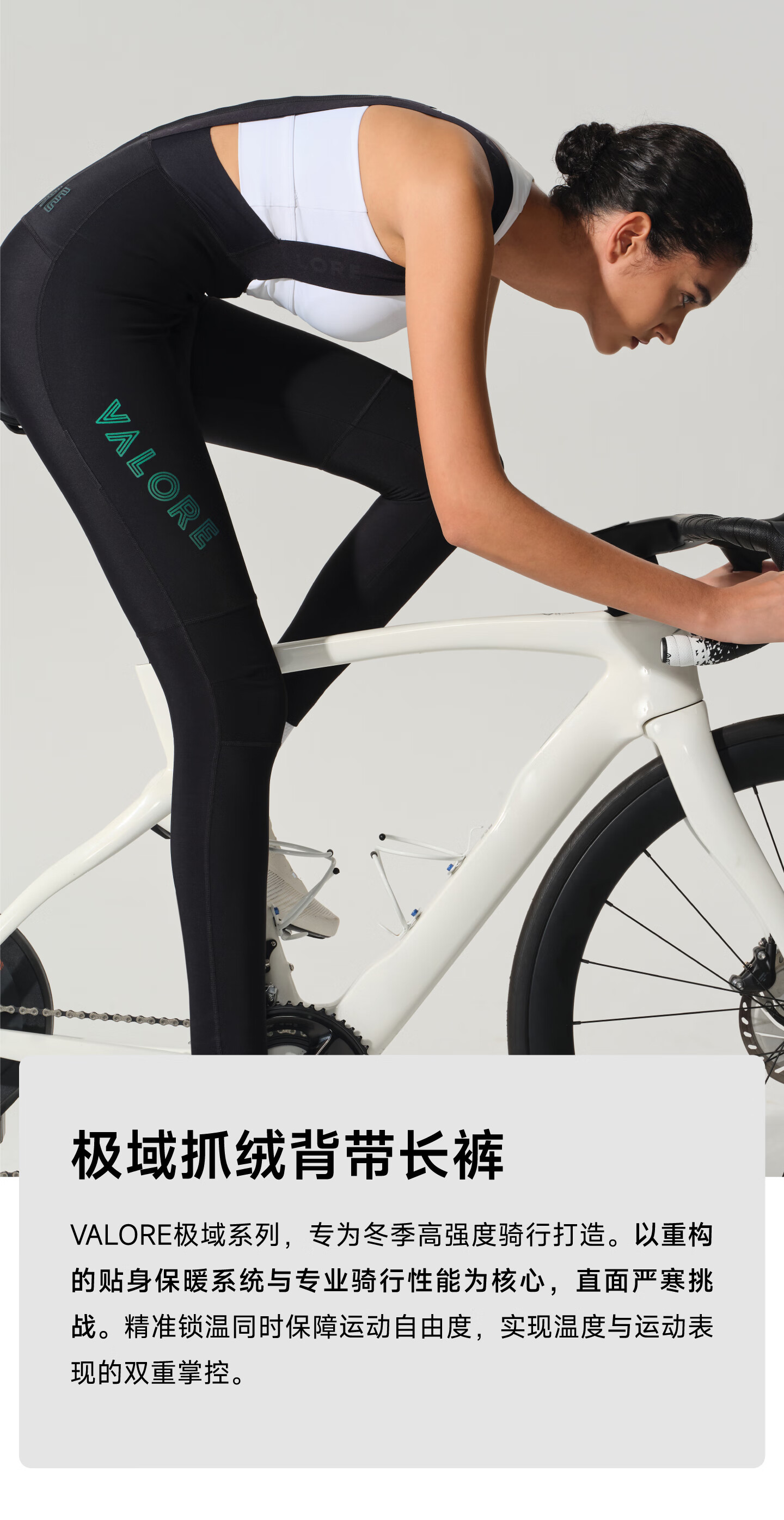VALORE MONTON公路自行车骑行裤双箭头极域女士抓绒背带长裤加厚减震户外冬季 极域黑色女款抓绒背带长裤 S