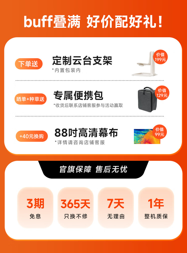 小明 Q3 Pro 云台投影仪 家用便携1080P高清家庭影院游戏投影机(已接入米家 远场语音 杜比音效)