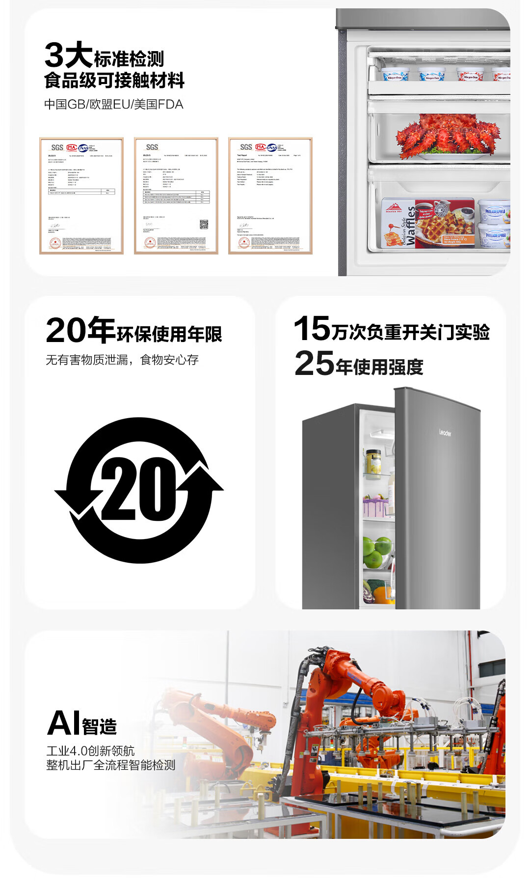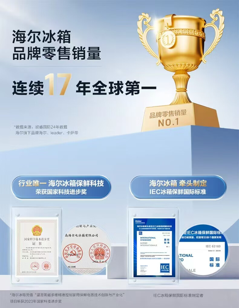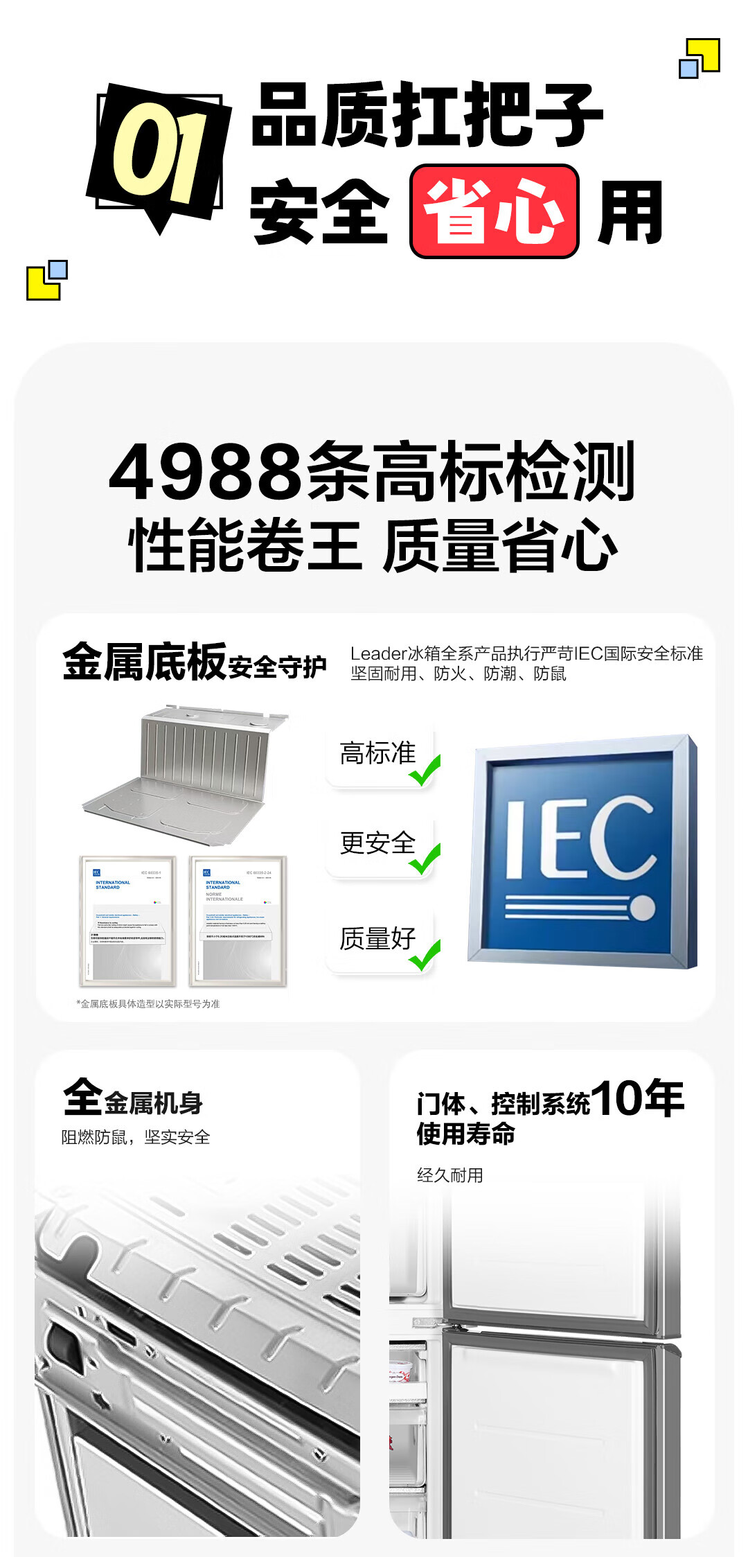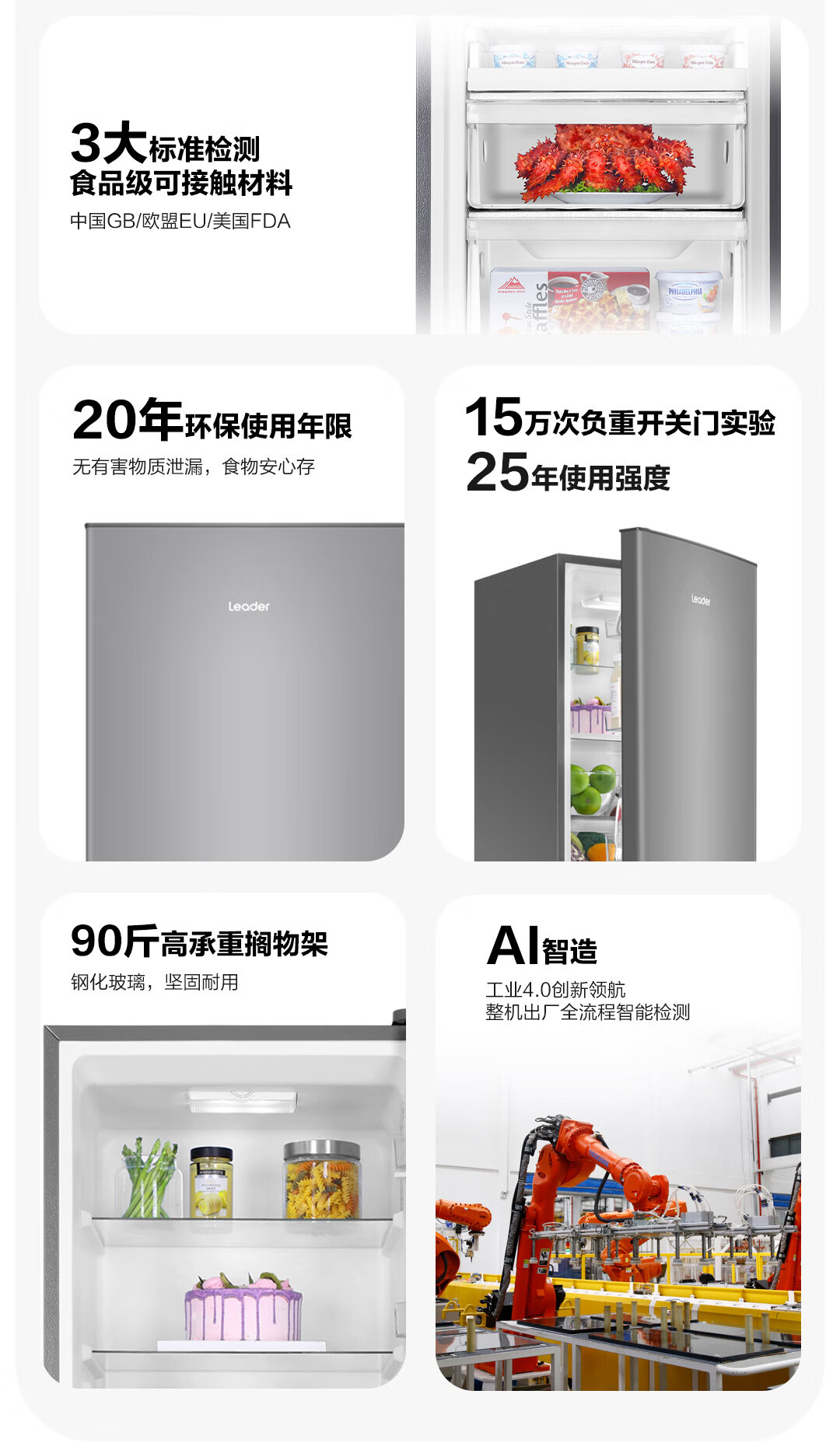 统帅(Leader)海尔出品三门三温三开门家用电冰箱218升 一级双变频风冷无霜黑金净化宿舍租房办公室国家补贴20% 【省电王】2天仅约1度电 冰箱