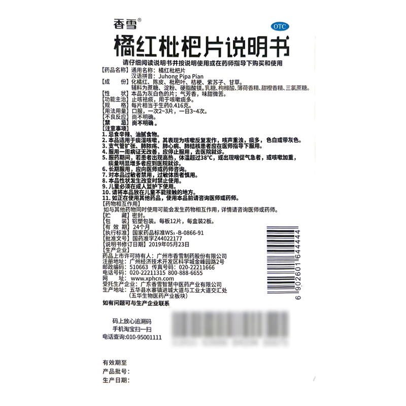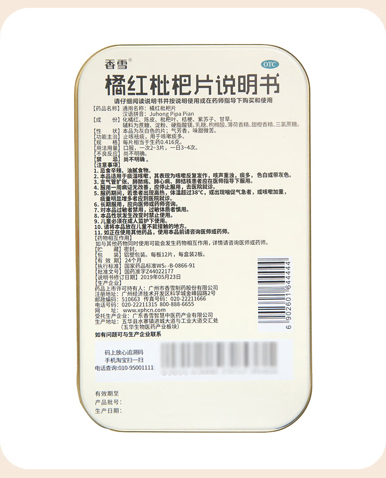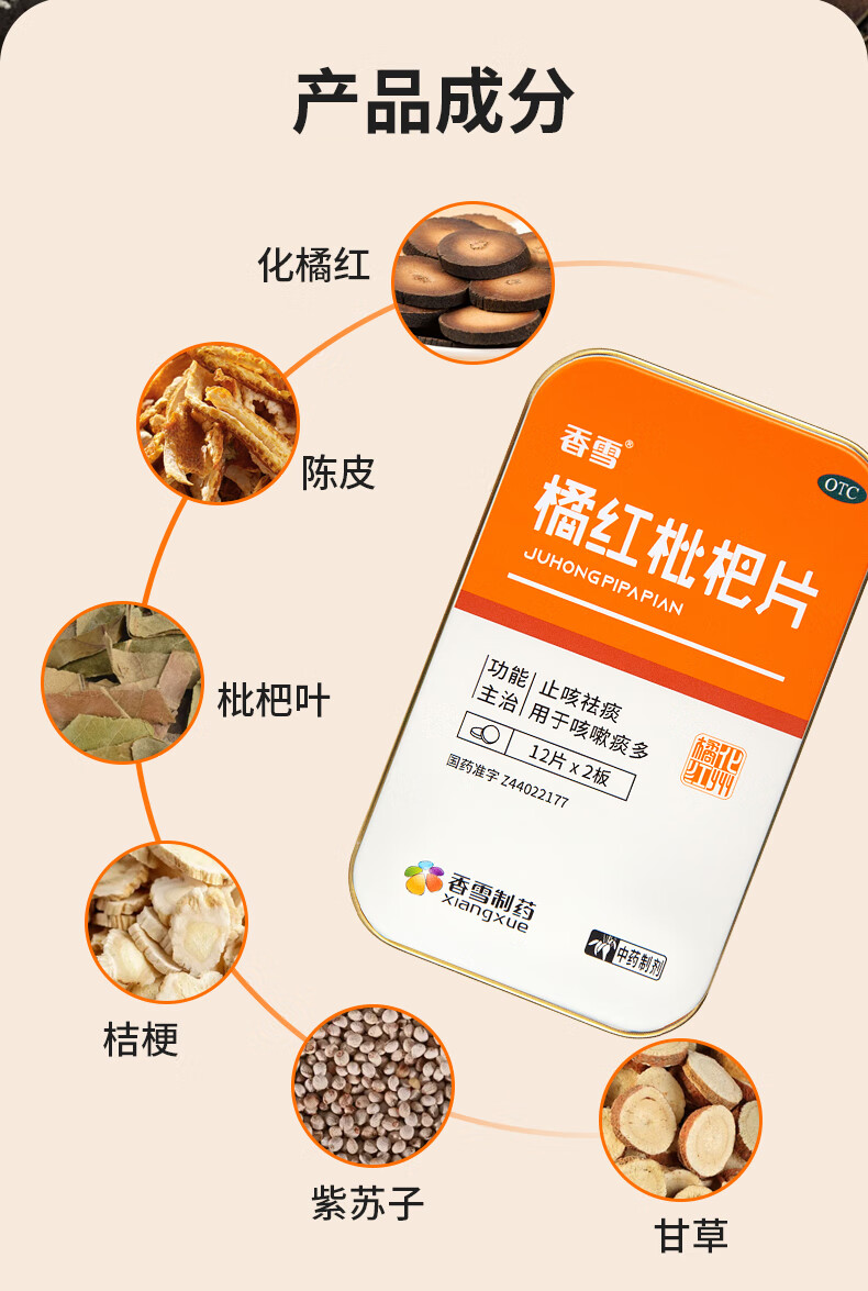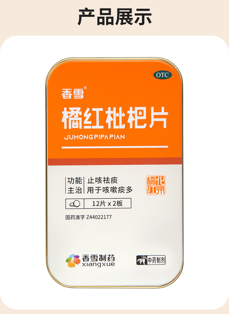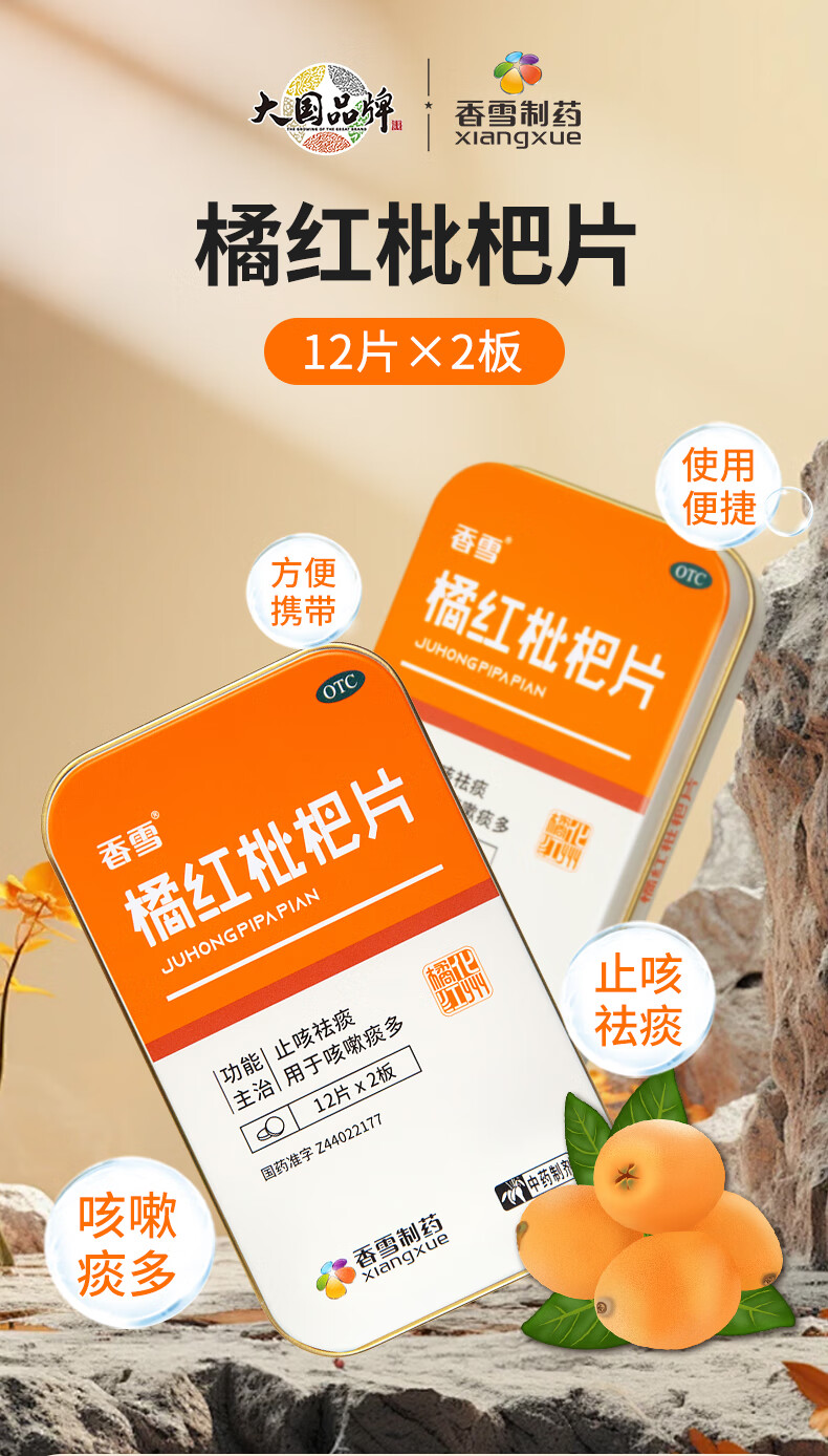 香雪 橘红枇杷片 12片*2板 咳嗽痰多 止咳祛痰 方便携带 久咳 夜咳 痰多