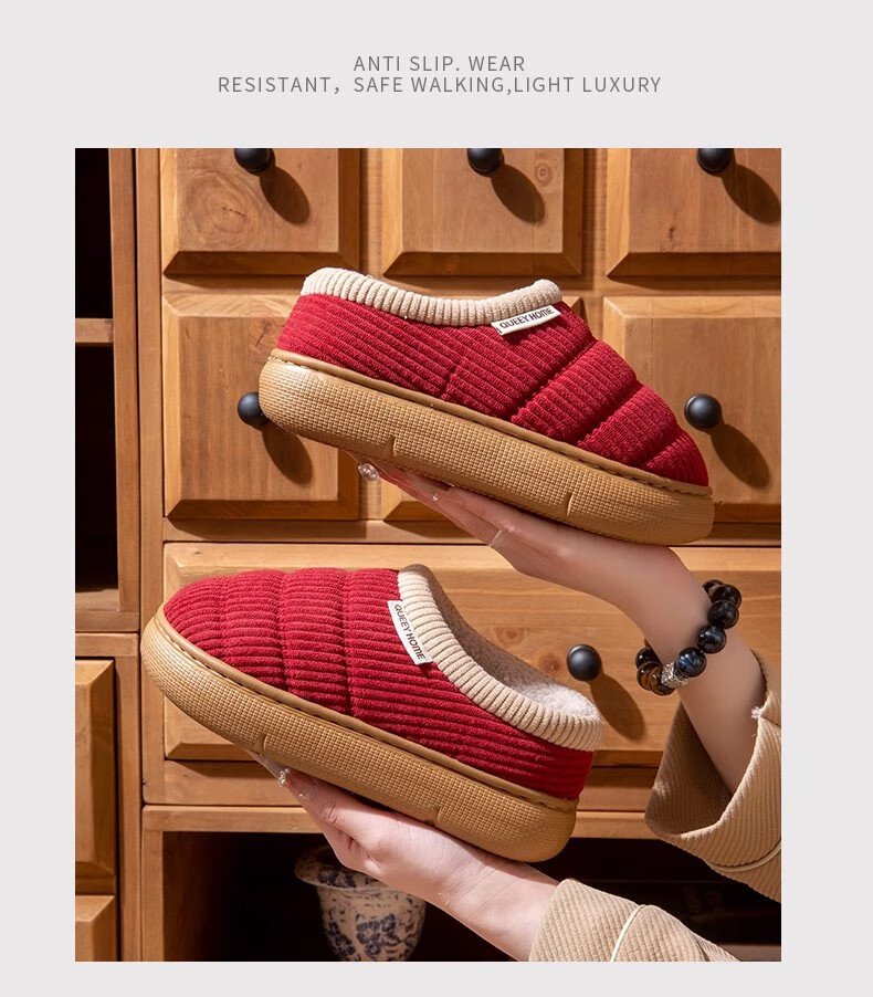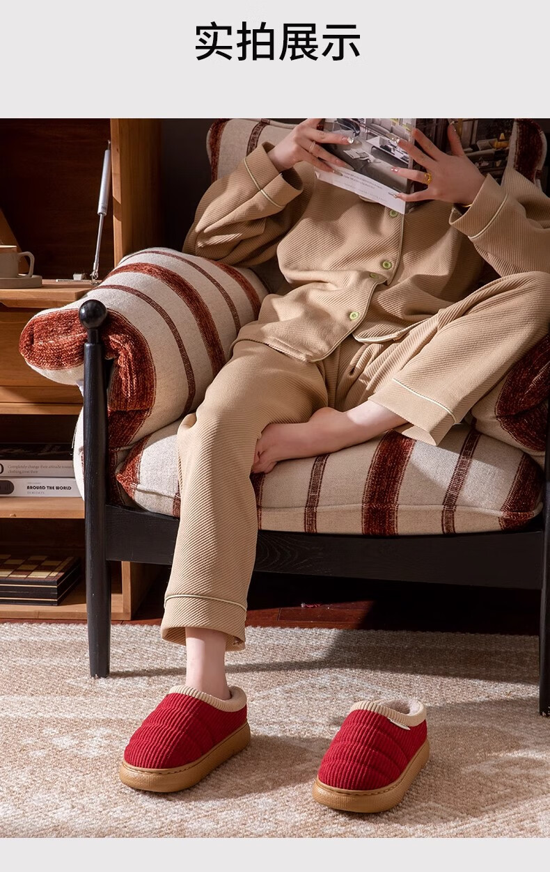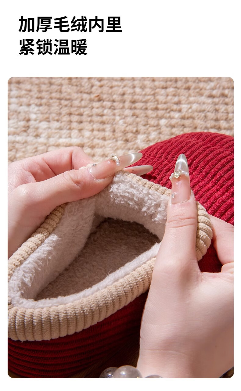 AILUKI日本老年人棉拖鞋女士冬季妈妈防滑防摔室内家居用保暖毛拖鞋 深咖【升级款材质升级】 21.5 38-39【适合37-38】