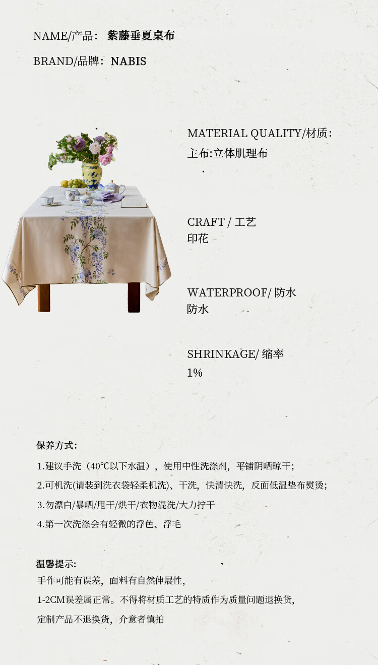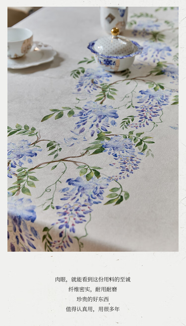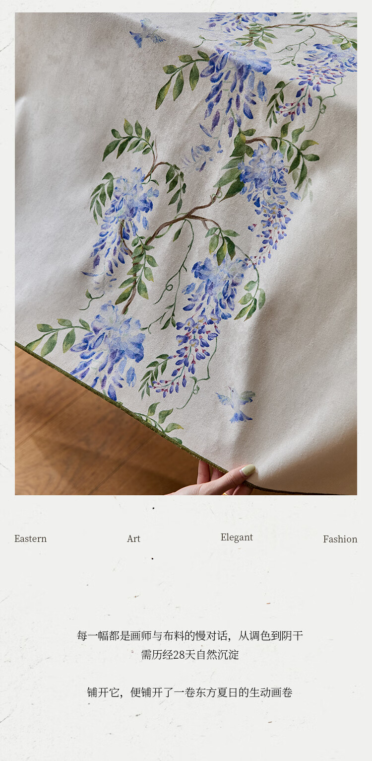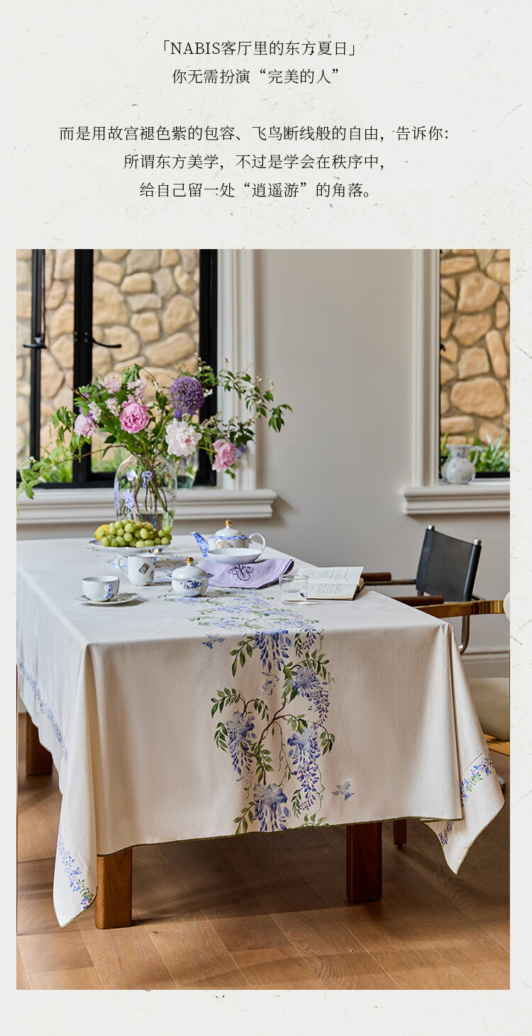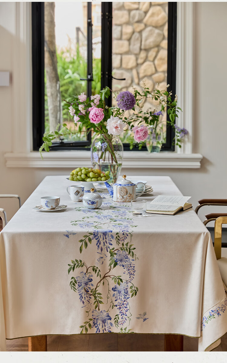 蜡笔派(Nabis)郭俊池联名|东方夏日系列|紫藤防水桌布餐桌盖布方形茶几布 紫藤垂夏-桌布 140*140cm单层密边款 /4人餐桌